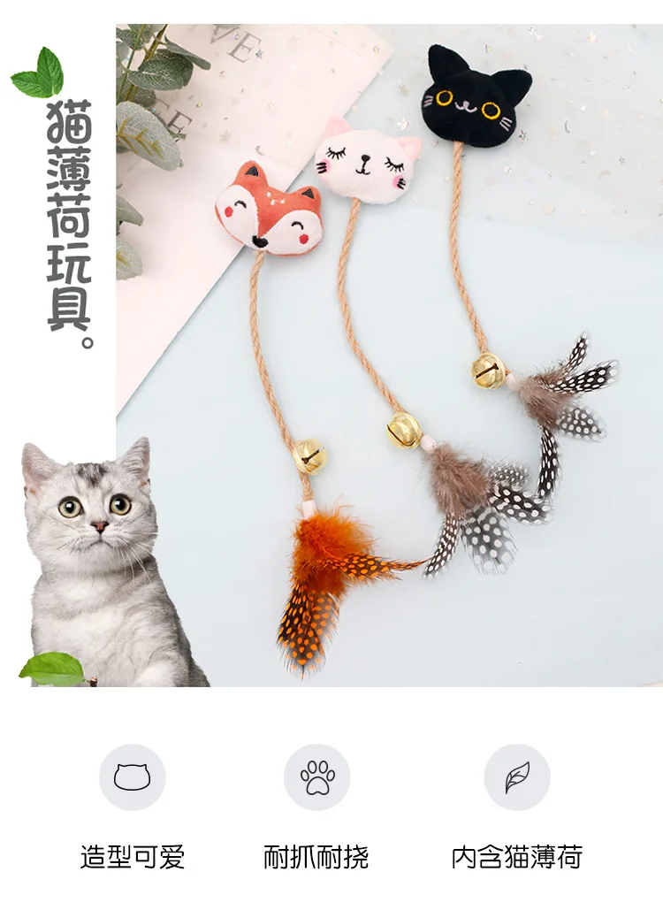 Juguete divertido para gatos, campana de plumas con hierba gatera, muñeca con forma de Animal para gatos, cuerda de cáñamo para mascotas, varilla Molar, suministros para mascotas, juguete para masticar dientes