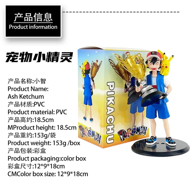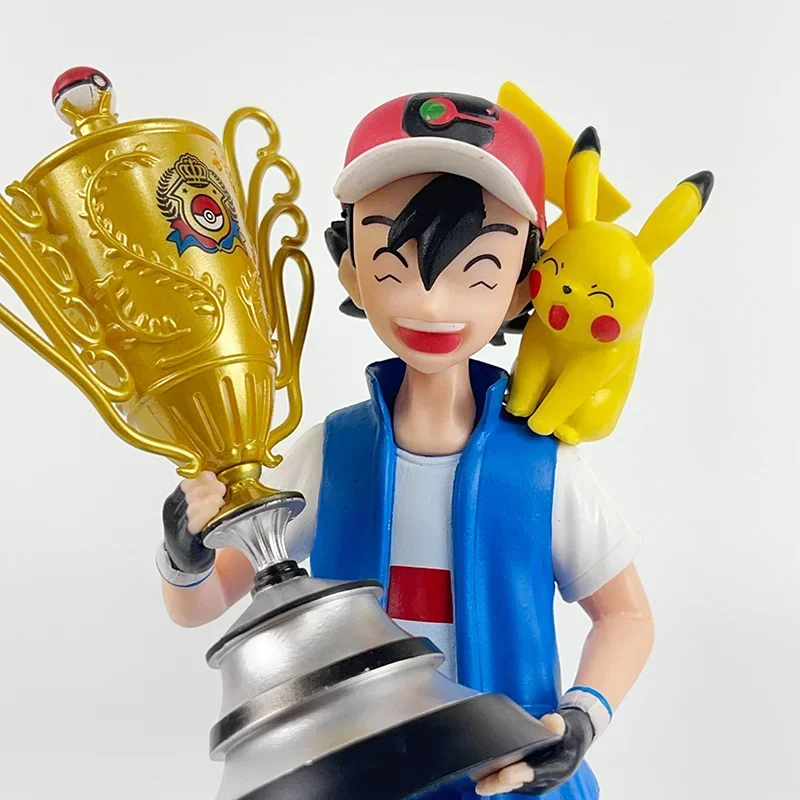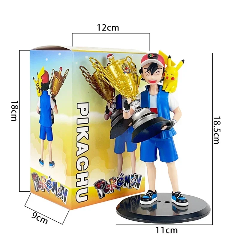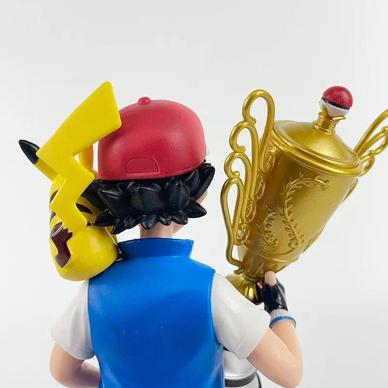 Campeón Ver de Anime Pikachu Go de 19 cm. Ash Ketchum & Pikachu PVC figura de acción estatua de dibujos animados juguetes de modelos coleccionables muñeca regalo para niños