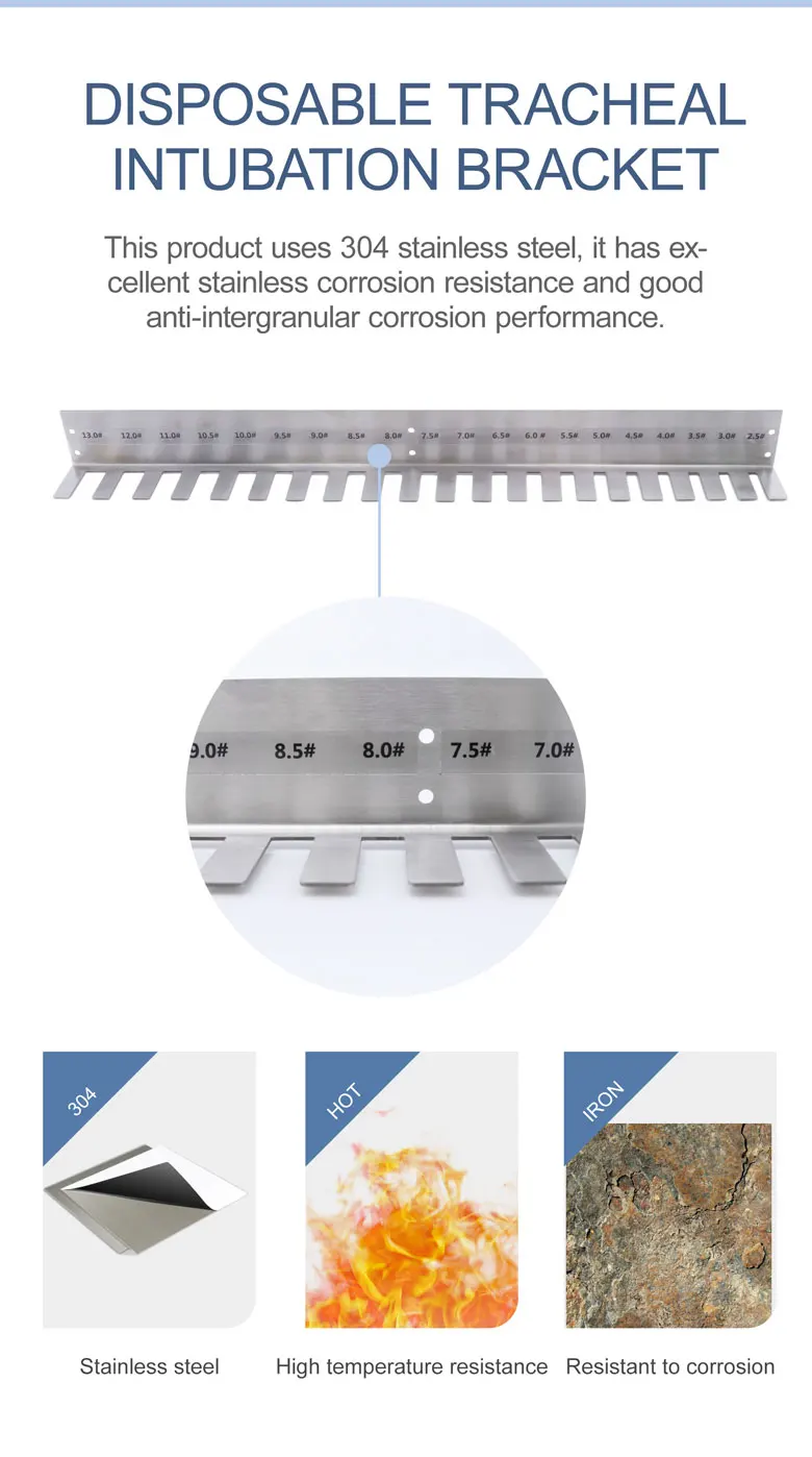Colgador de intubación traqueal desechable Colgador de acero inoxidable 304 Soporte de intubación traqueal desechable