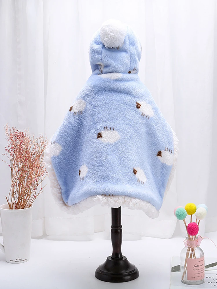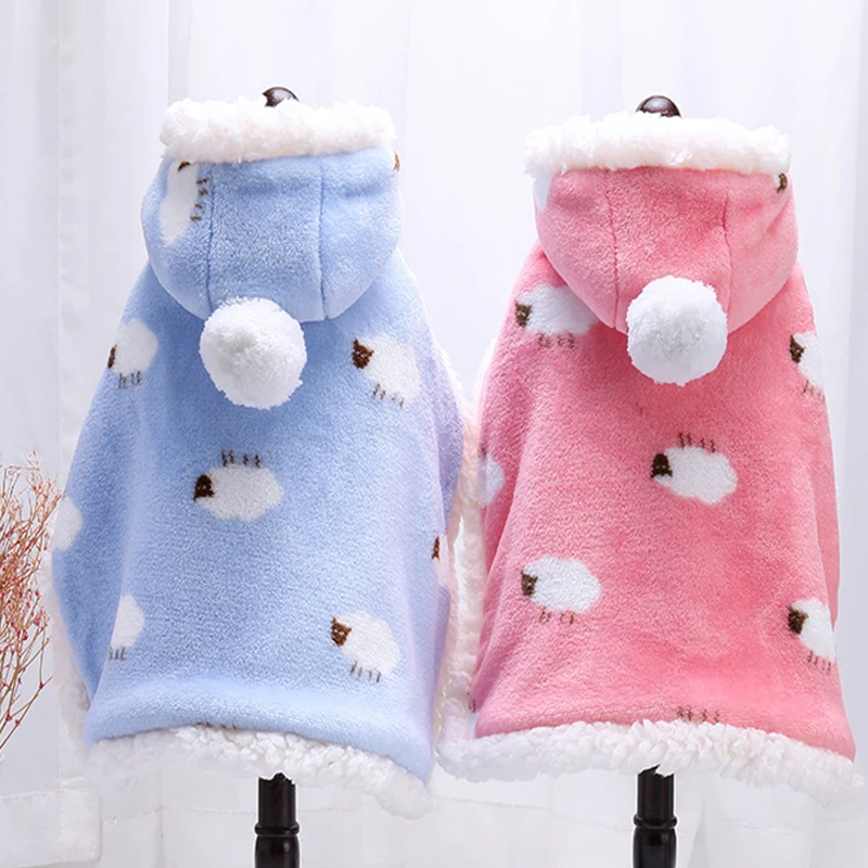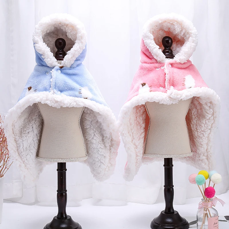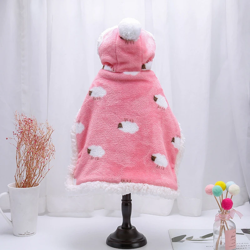 Capa bonita para perro mascota, otoño e invierno, además de algodón grueso, cálida, con capucha, manta, ropa de poliéster para perros