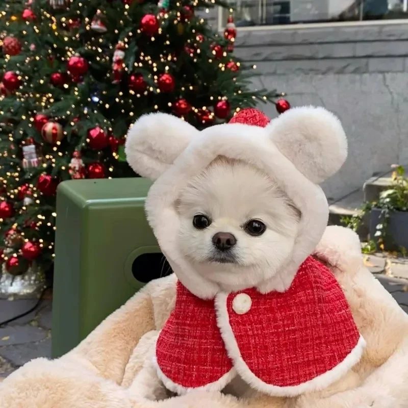 Capa cálida de invierno para mascotas, CAPUCHA DE NAVIDAD con orejas de felpa, accesorios de ropa para perros pequeños y medianos