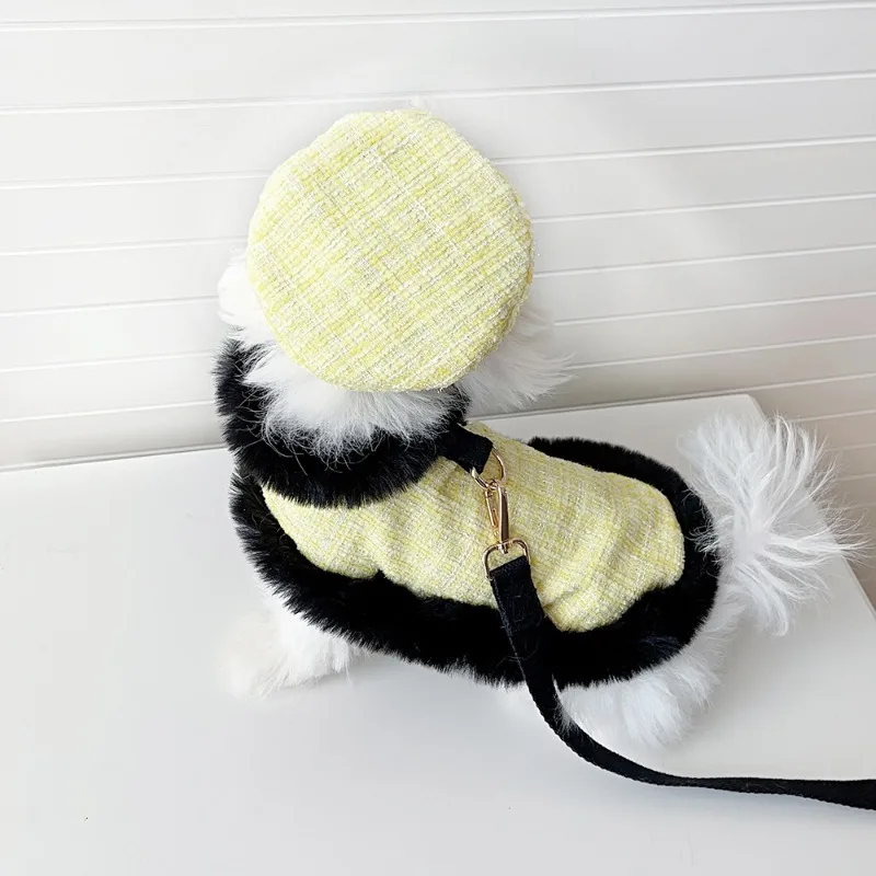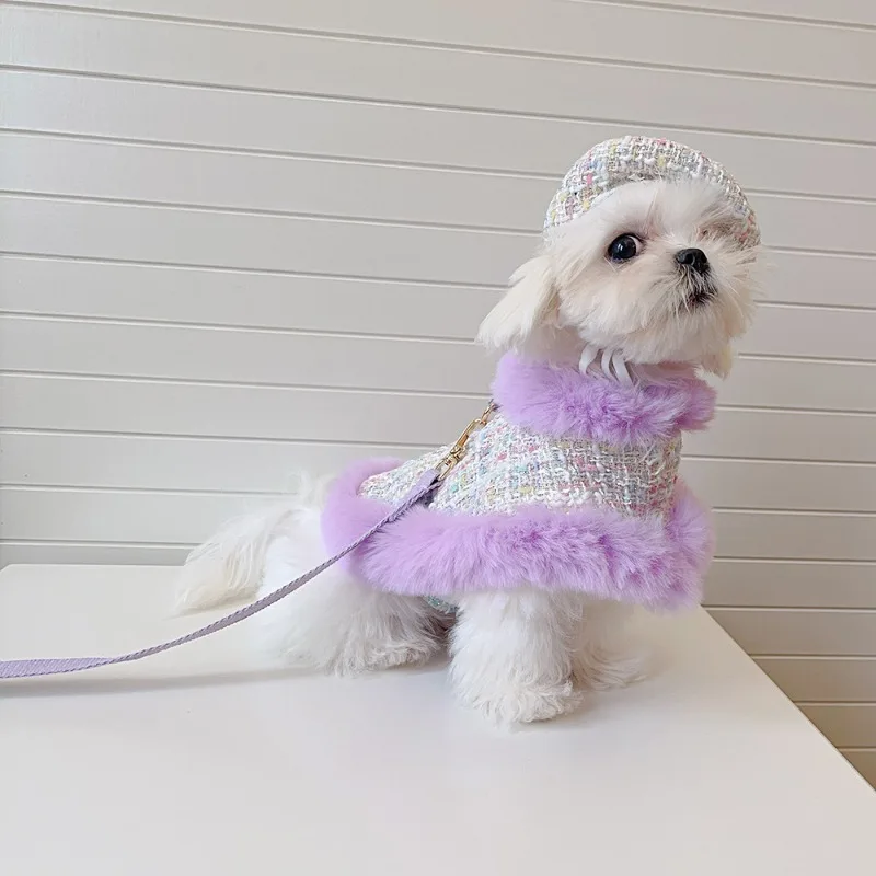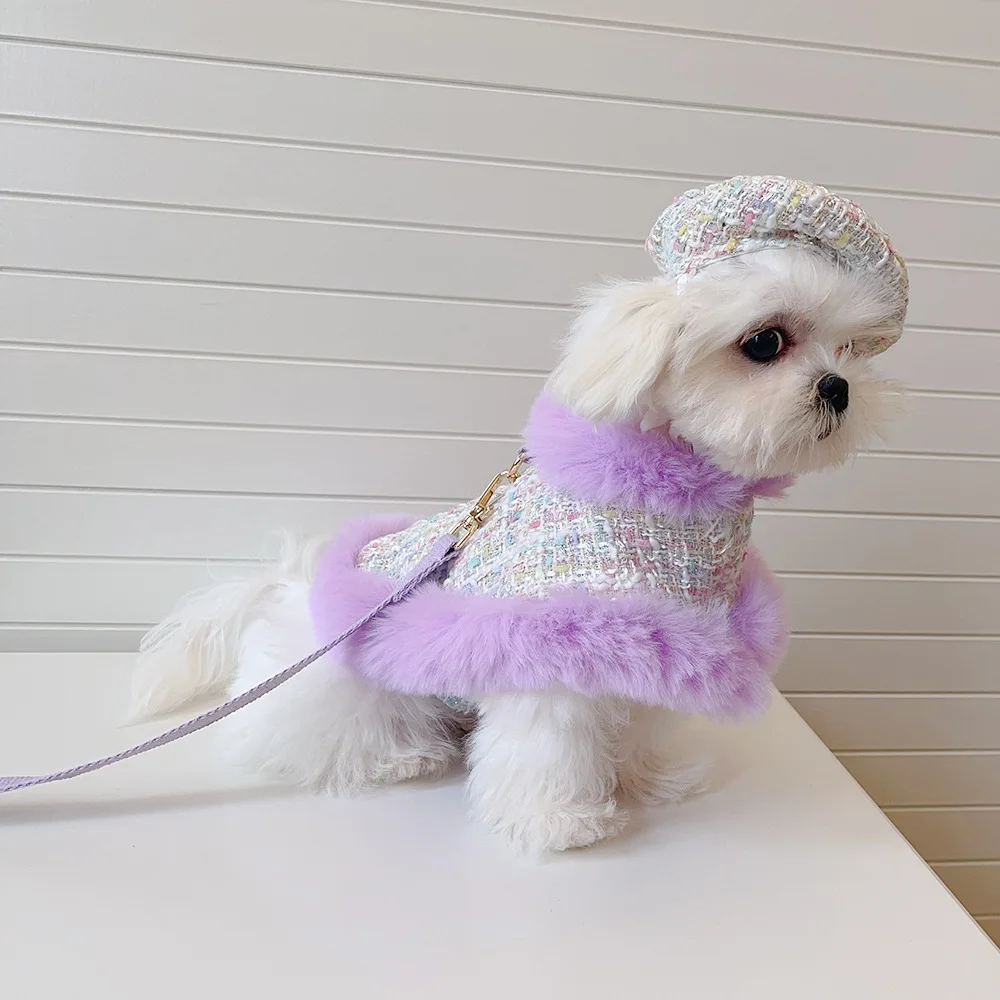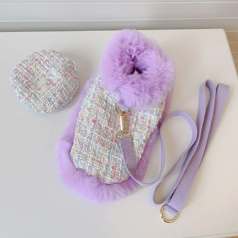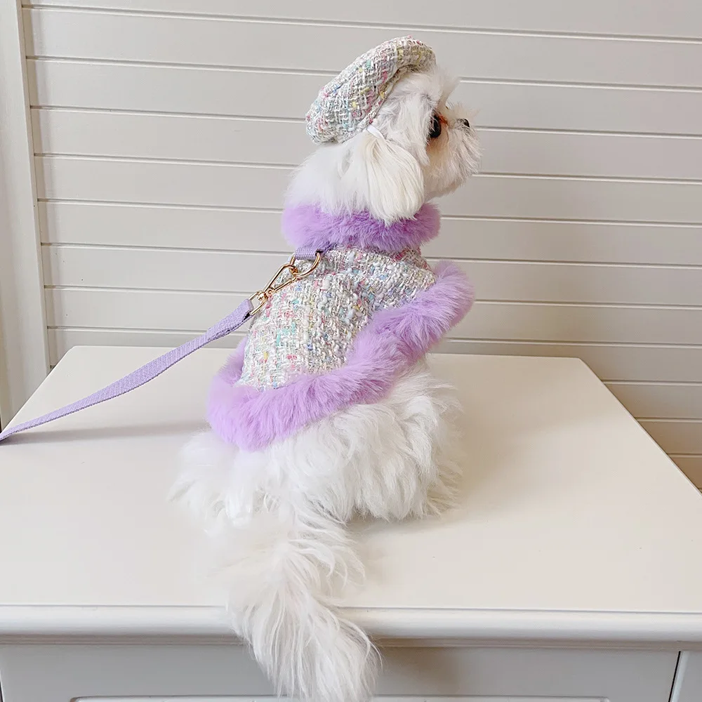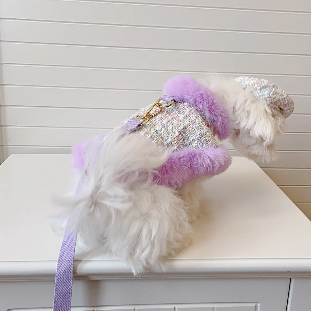 Capa de lana gruesa para mascotas, capa de encaje de felpa, correa para el pecho para gatos, cuerda de tracción, abrigo para perros, ropa para cachorros, ropa para perros pequeños