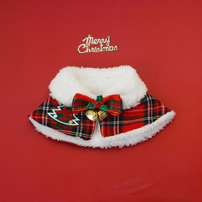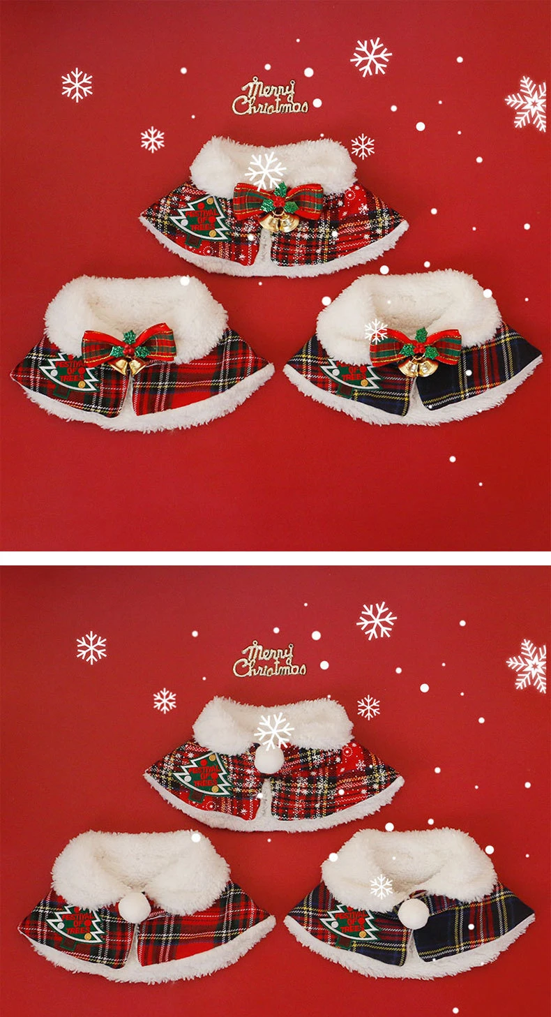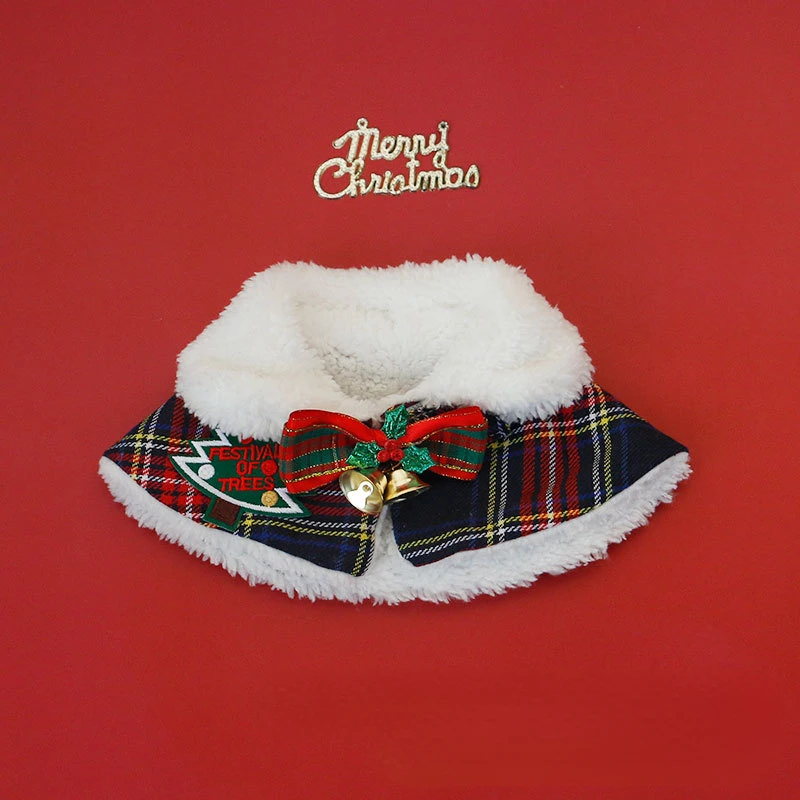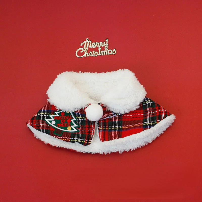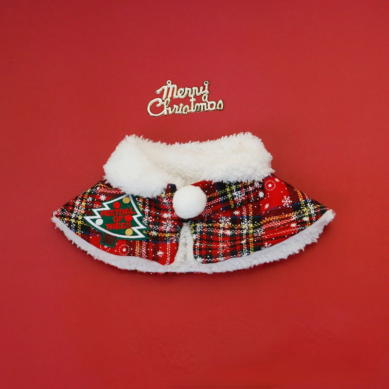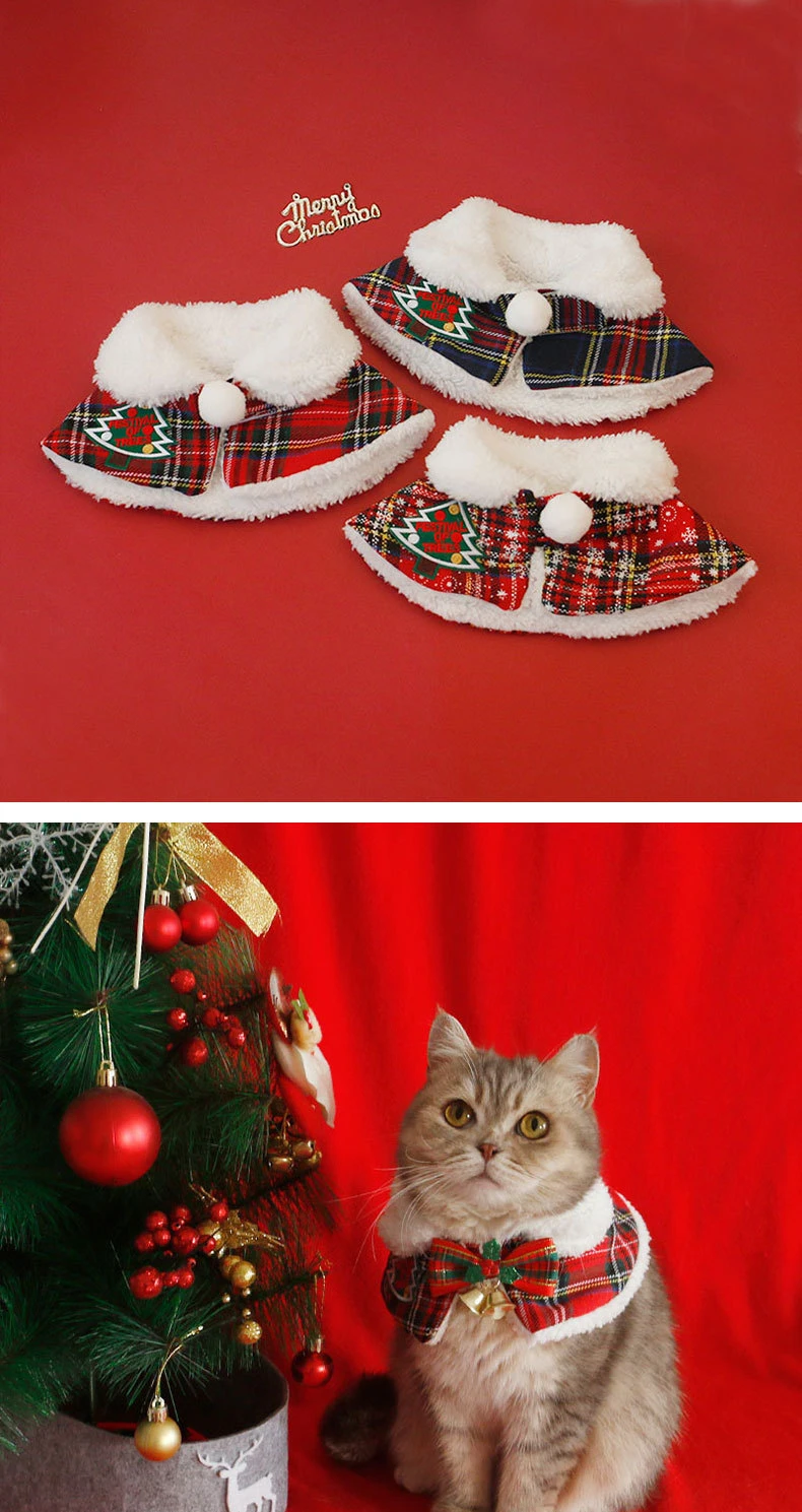 Capa navideña para gato, chal de Año Nuevo para perro, bufanda para mascotas, ropa corta inglesa para otoño e invierno, Collar de peluche cálido, accesorios para perros