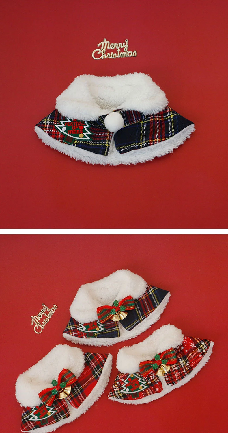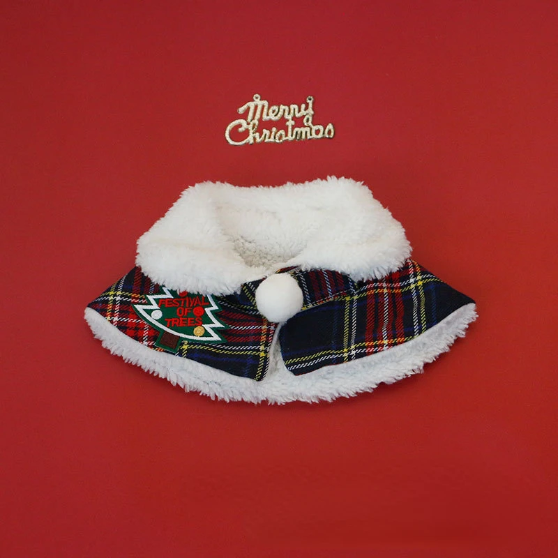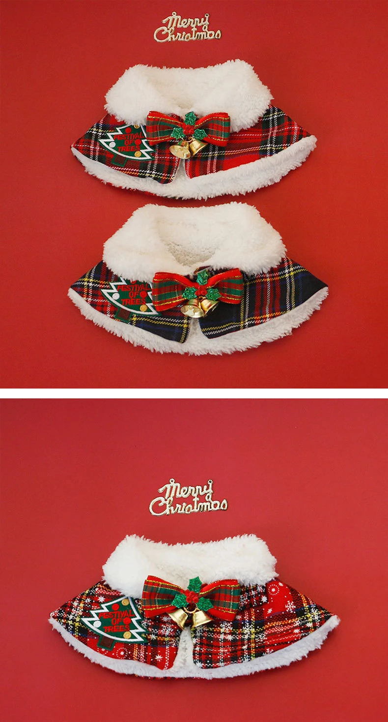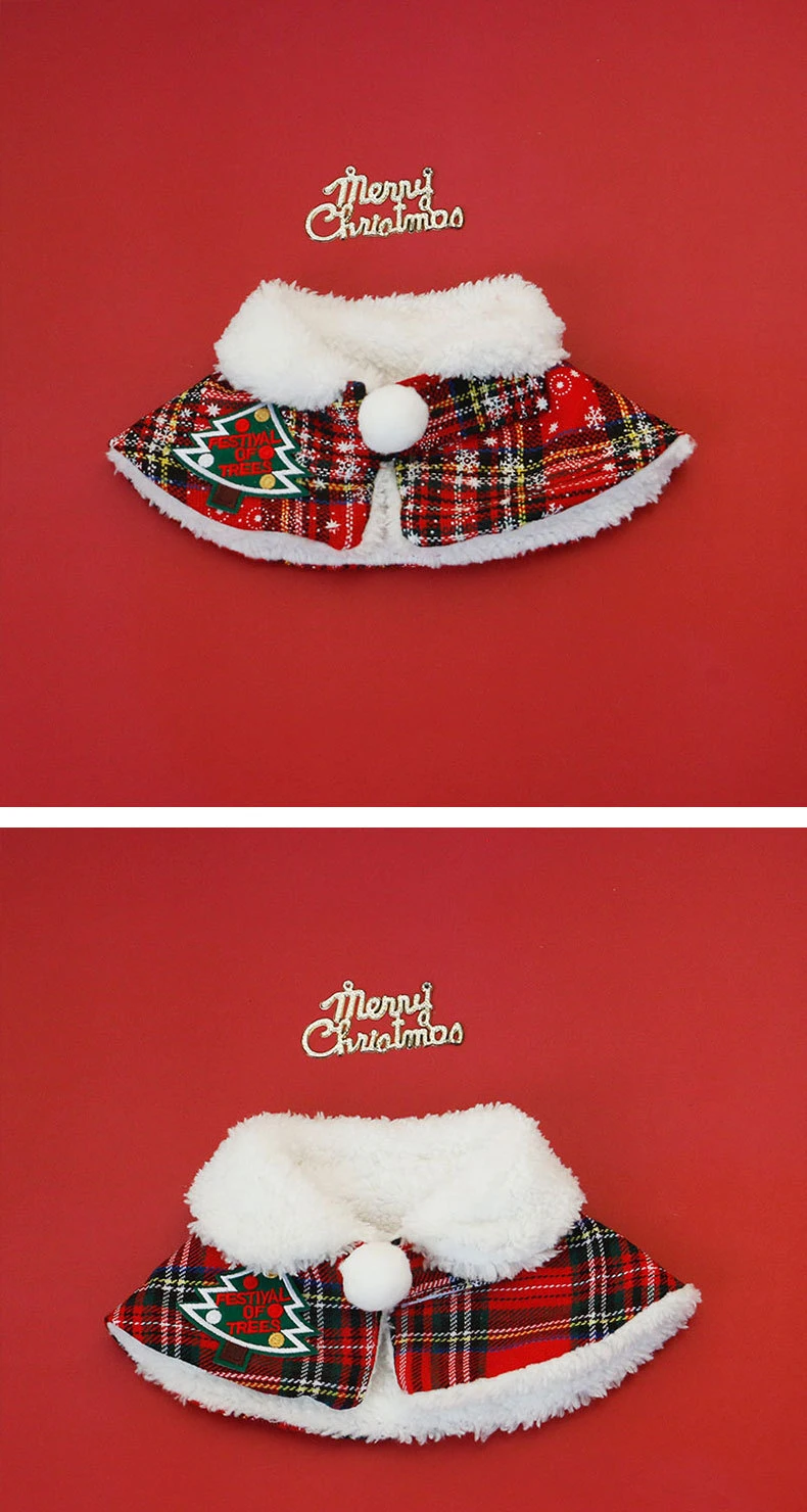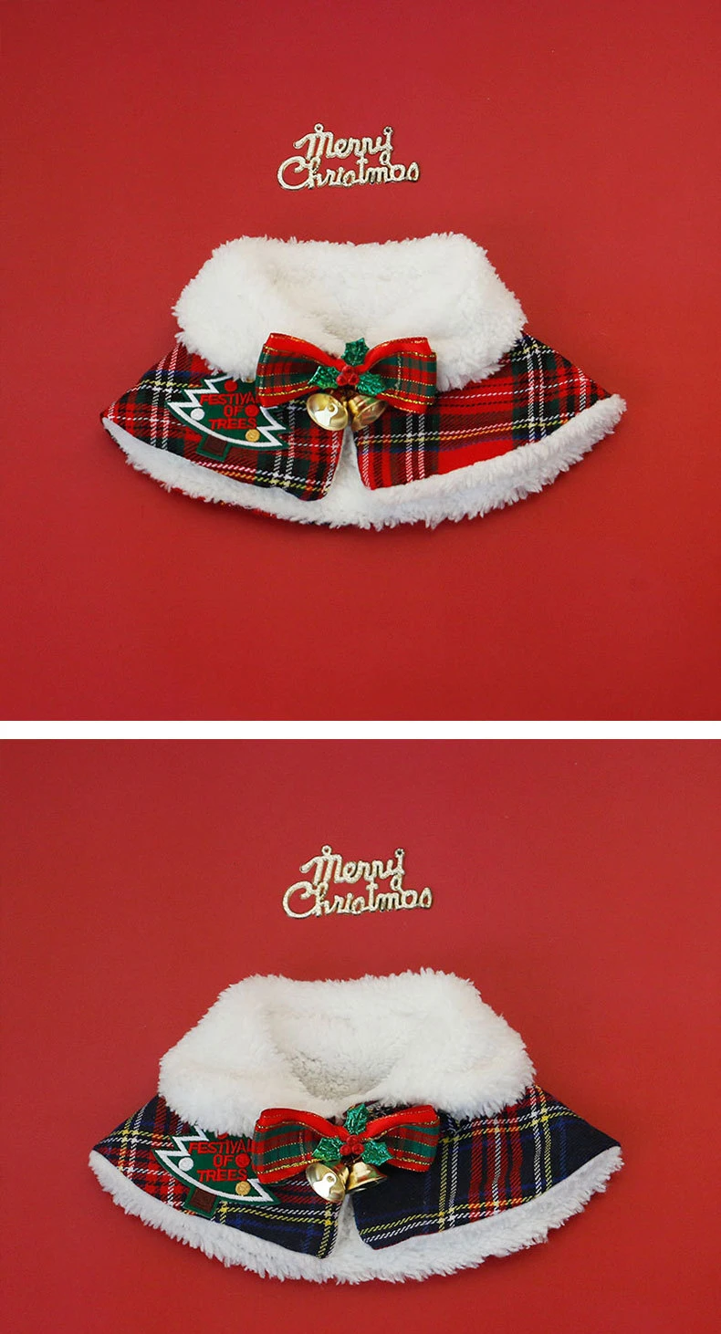 Capa navideña para gato, chal de Año Nuevo para perro, bufanda para mascotas, ropa corta inglesa para otoño e invierno, Collar de peluche cálido, accesorios para perros