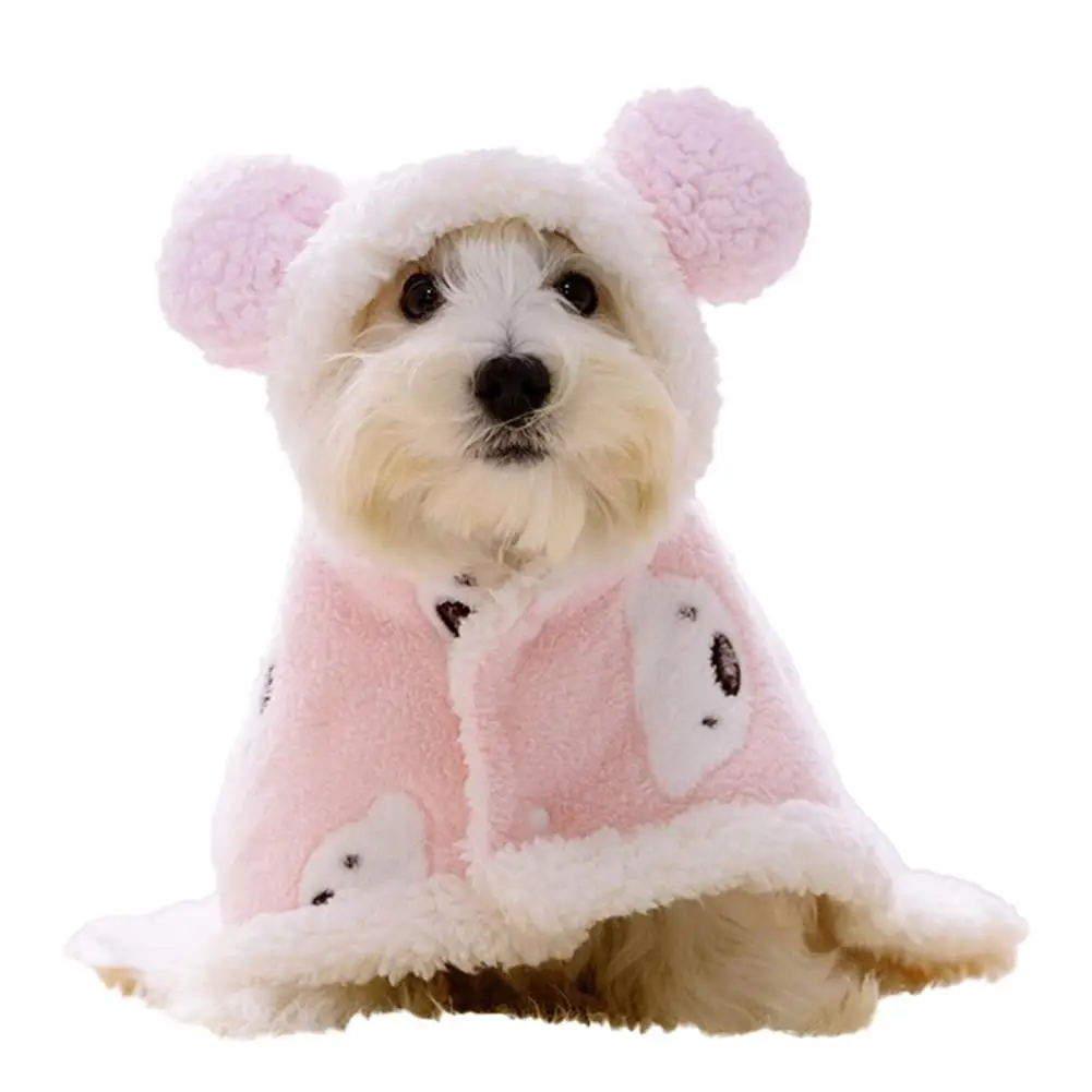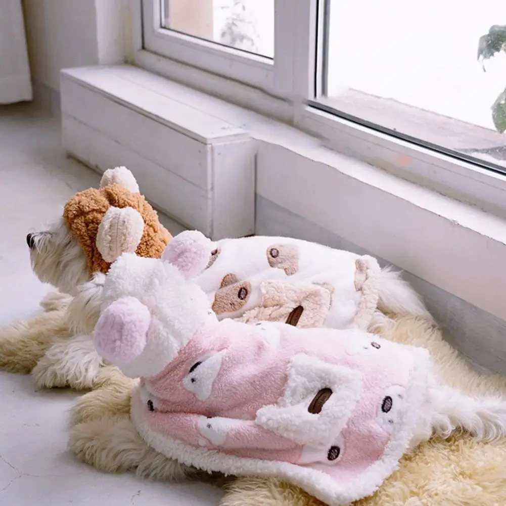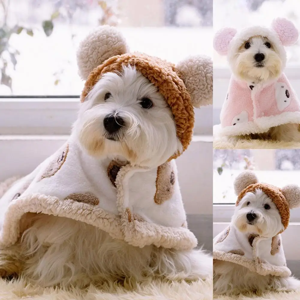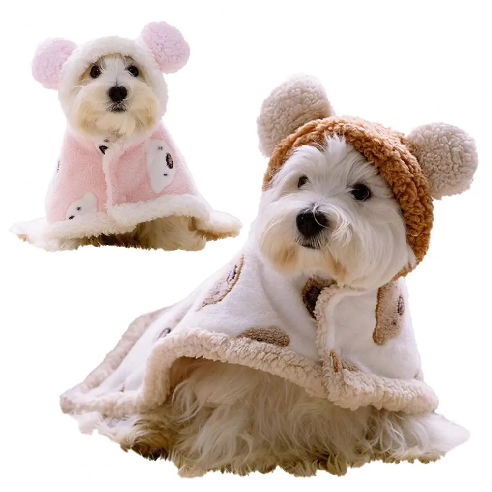 Capa para mascotas con patrón de oso de dibujos animados para mantener el calor, textura suave, capa para perros pequeños