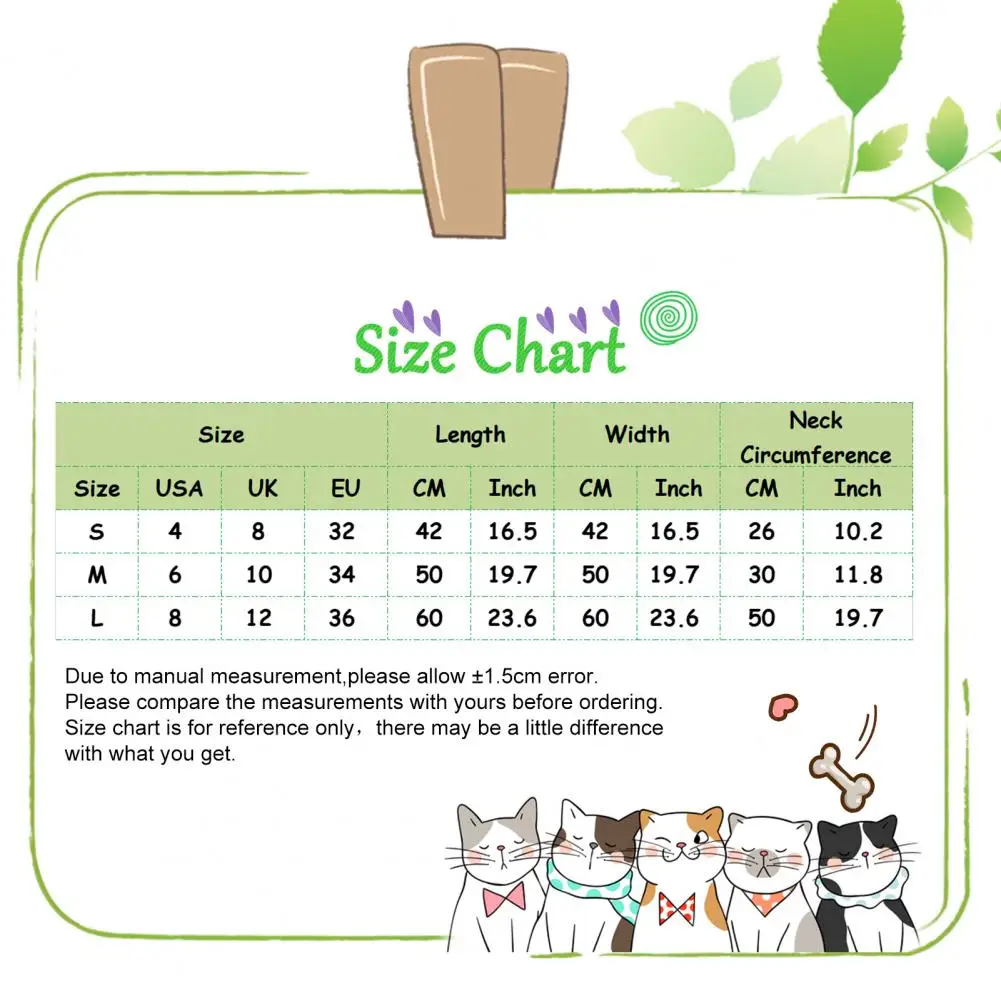 Tamaño: S, longitud: 42cm/16,5 ", ancho: 42cm/16,5", circunferencia del cuello: 26cm/10,2 "(aprox.)