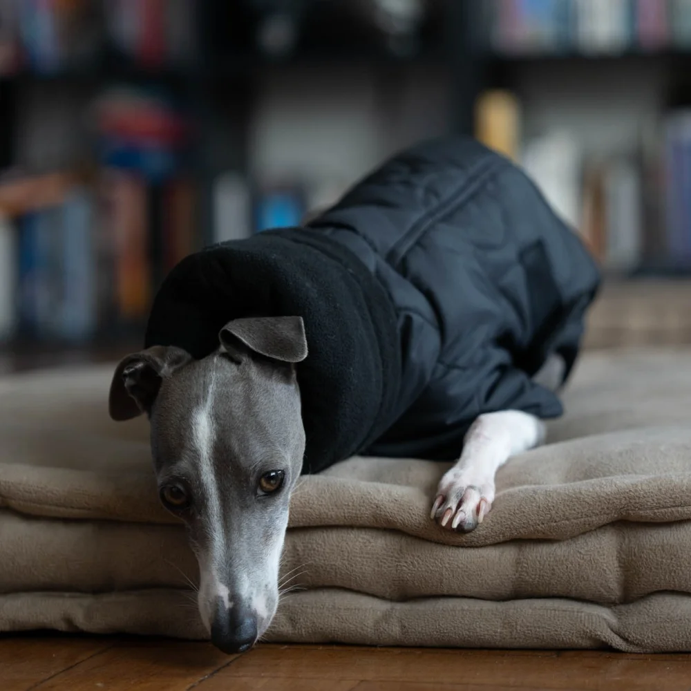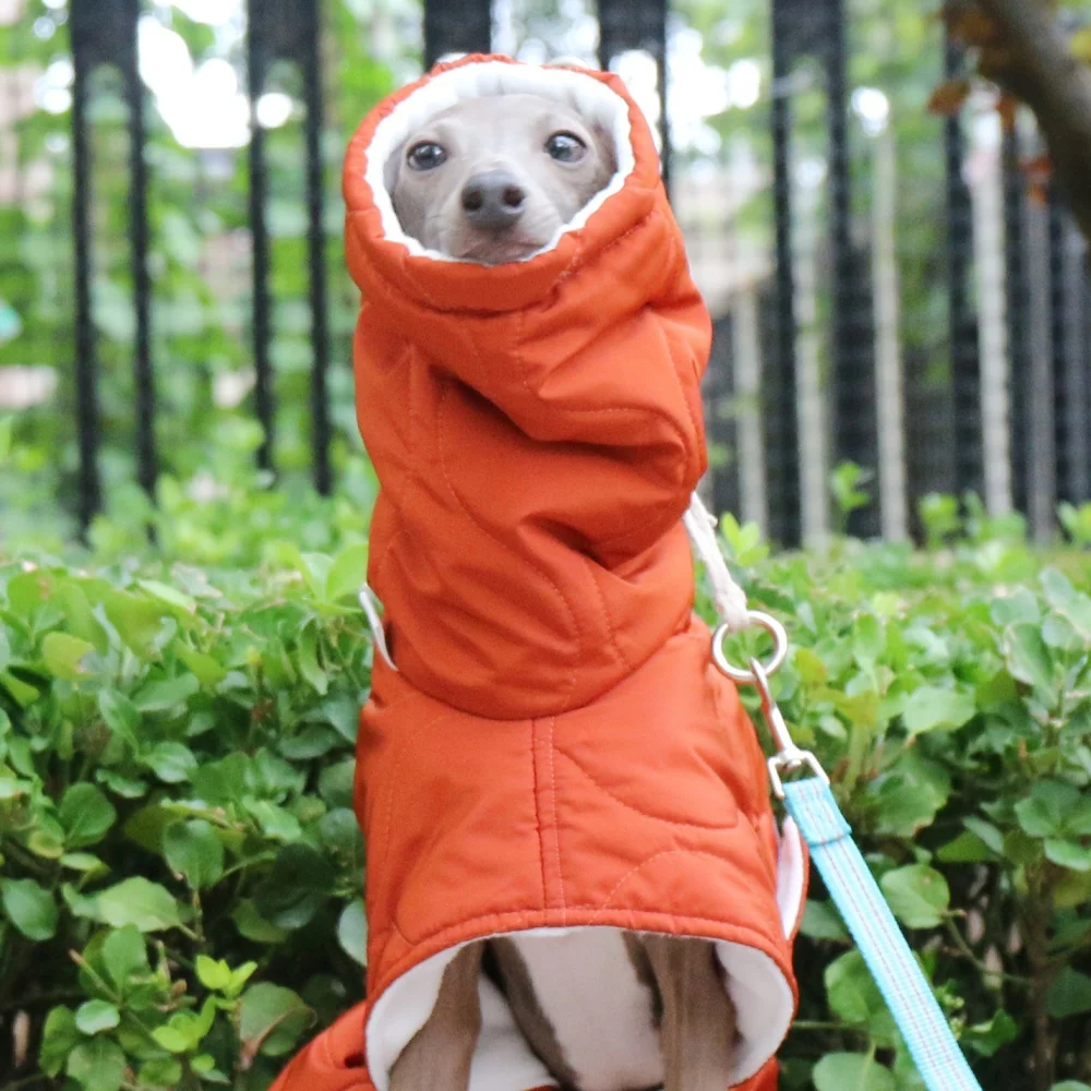 Capa roja de invierno para perros, elegante abrigo de algodón grueso con cintura ajustable para galgo italiano, chaqueta cálida a prueba de viento para Whippet