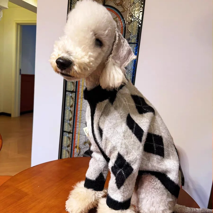 Cárdigan de manga larga para perros medianos, abrigo cálido a cuadros blanco y negro para Whippet de galgo pequeño en ropa de invierno para mascotas