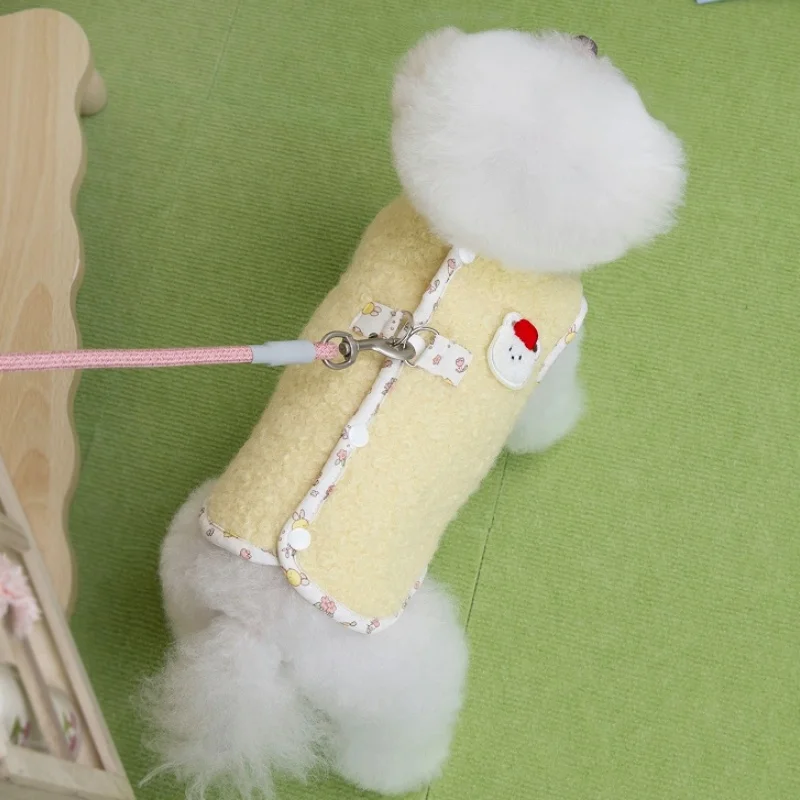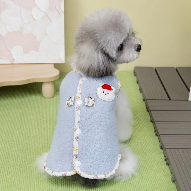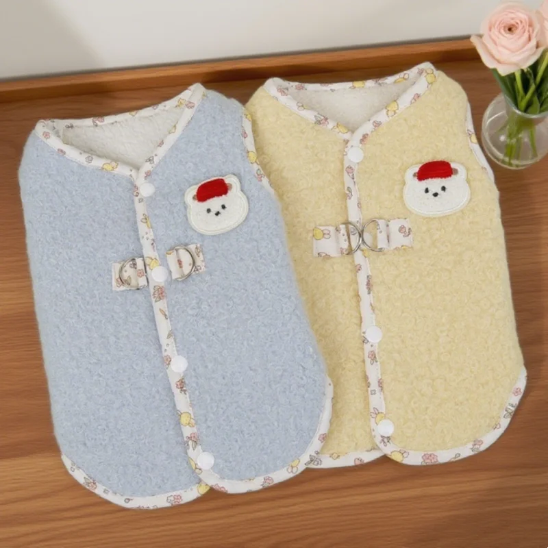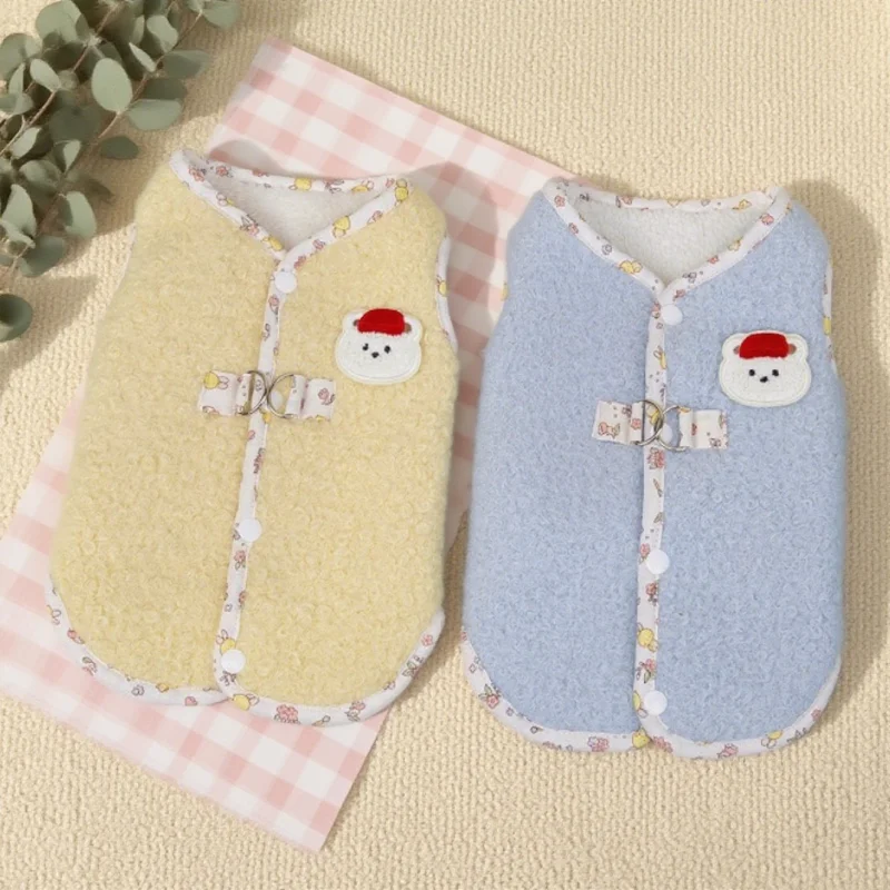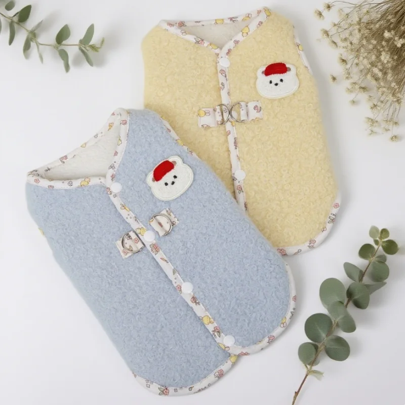Cárdigan de felpa a la moda para perro, ropa cálida y suave para perro, chaqueta para cachorro de otoño, abrigo con estampado de oso, chaleco para gato, chaqueta, trajes para mascotas Chihuahua