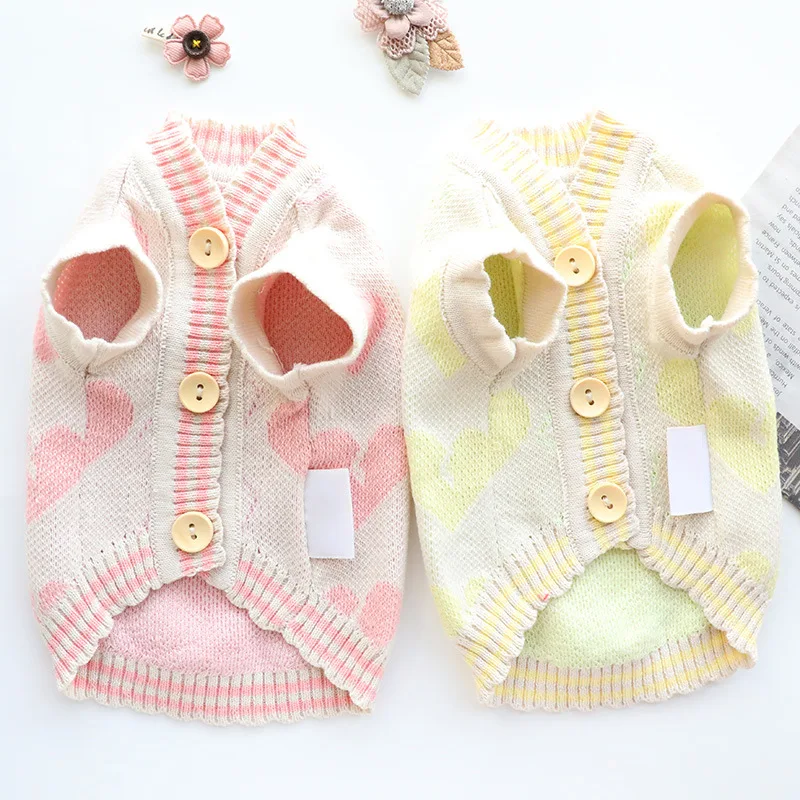 Cárdigan de punto suelto y suave para mascotas pequeñas, ropa para perros, suéter de princesa, gato, rosa, amarillo, amor, otoño