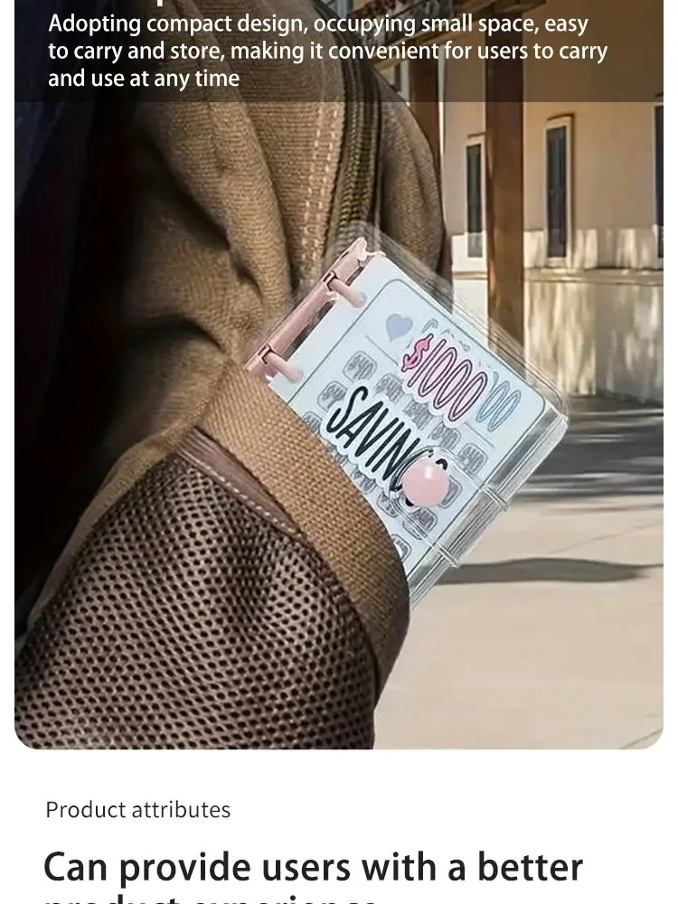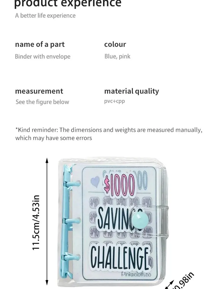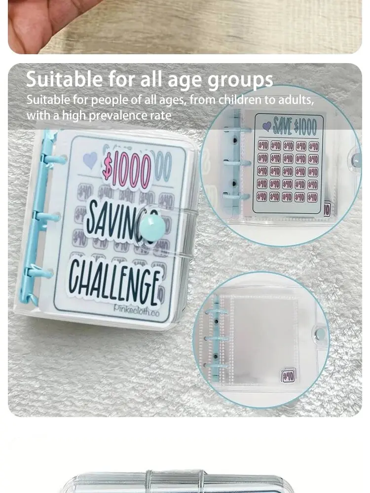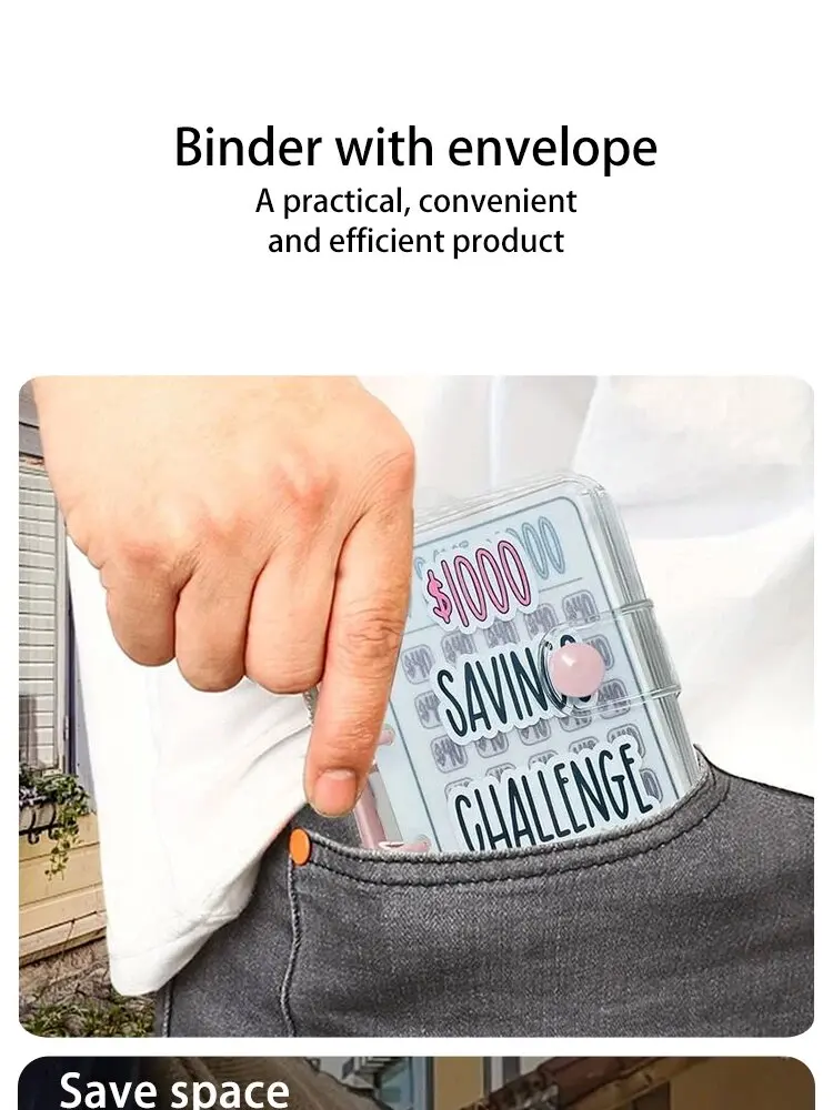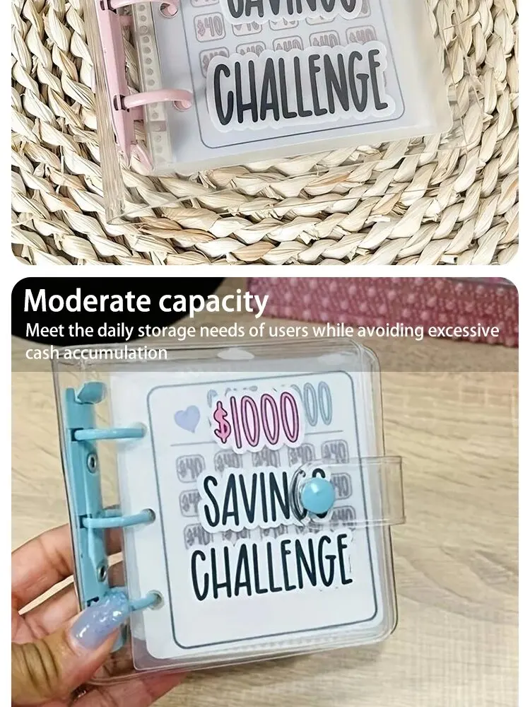 Carpeta de desafío de 1 000 ahorros creativa con sobre PVC brillante duradero, desafío de ahorro de dinero de regalo de Navidad