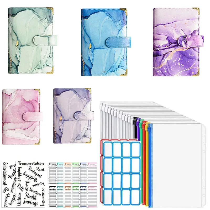 Carpeta de presupuesto de cuero PU A6, conjunto de sistema de sobres de efectivo para cuaderno, de carpeta para ahorro de dinero con bolsillos, organizador de facturas, 2023