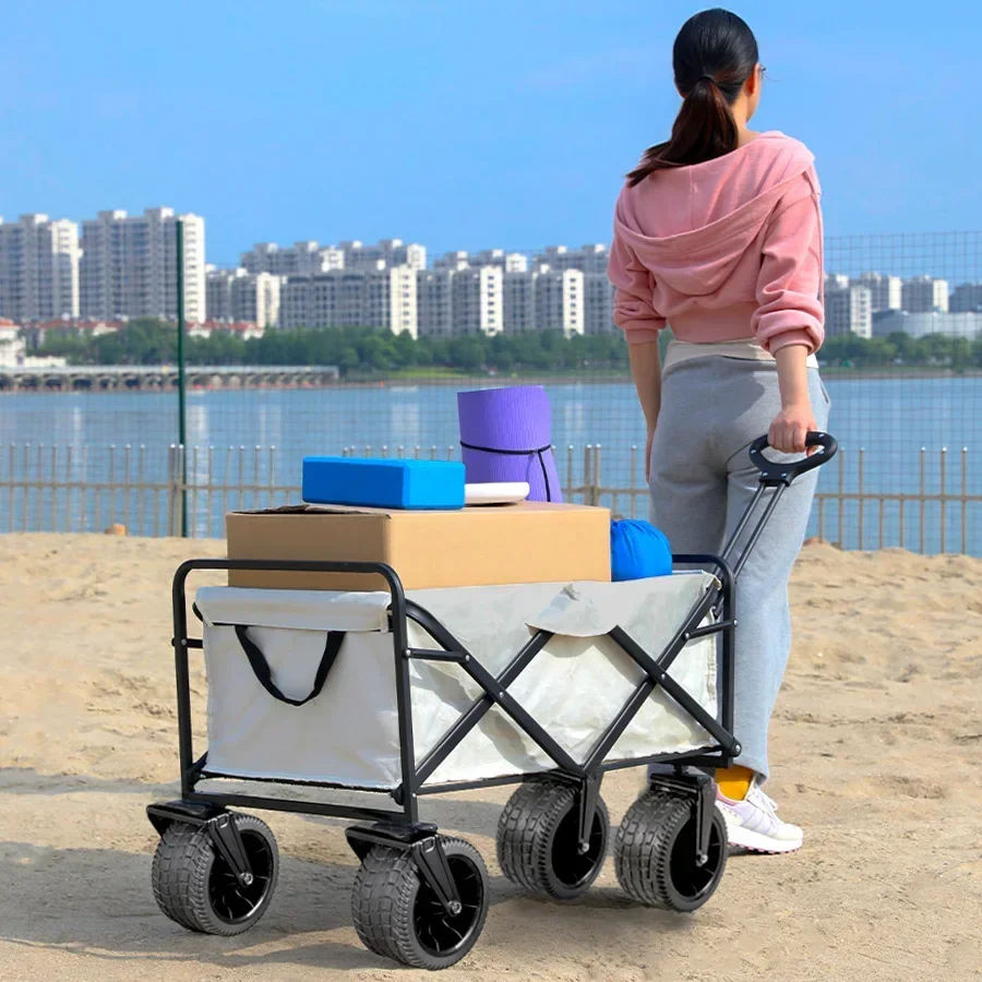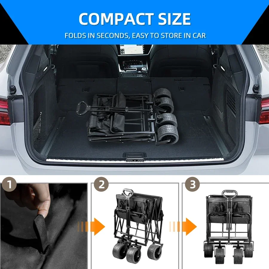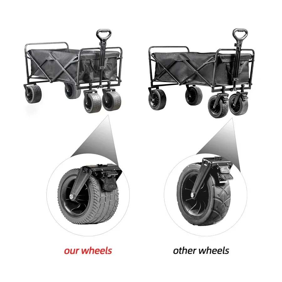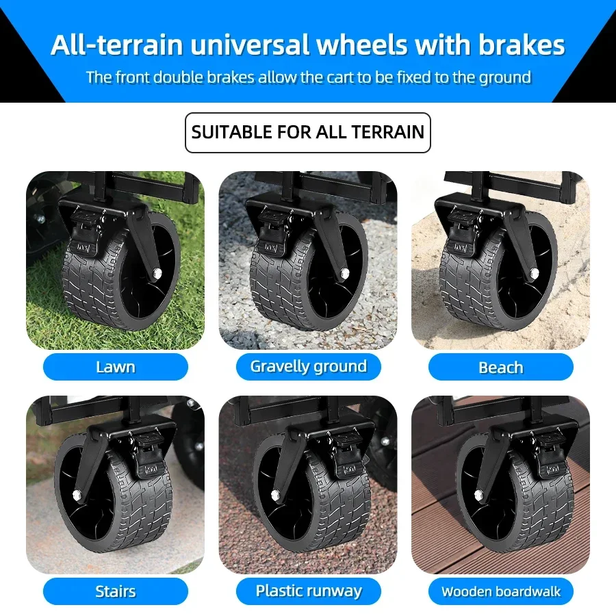 Carro de playa con ruedas de tanque grande para ARENA, carrito plegable de gran capacidad para jardín, Picnic al aire libre, carrito de compras plegable de 500 librasCarro plegable de gran capacidad de 500 lbsCarro de playa plegable portátil de alta resistencia con ruedas grandes para carrito de camping de arena