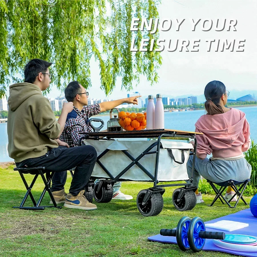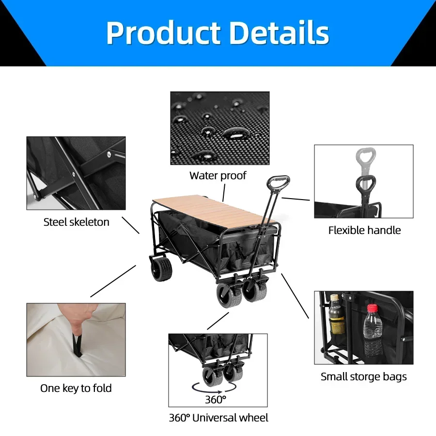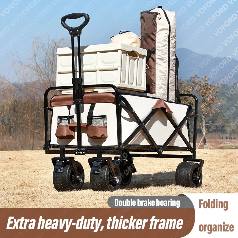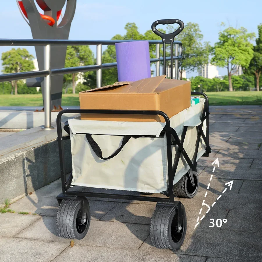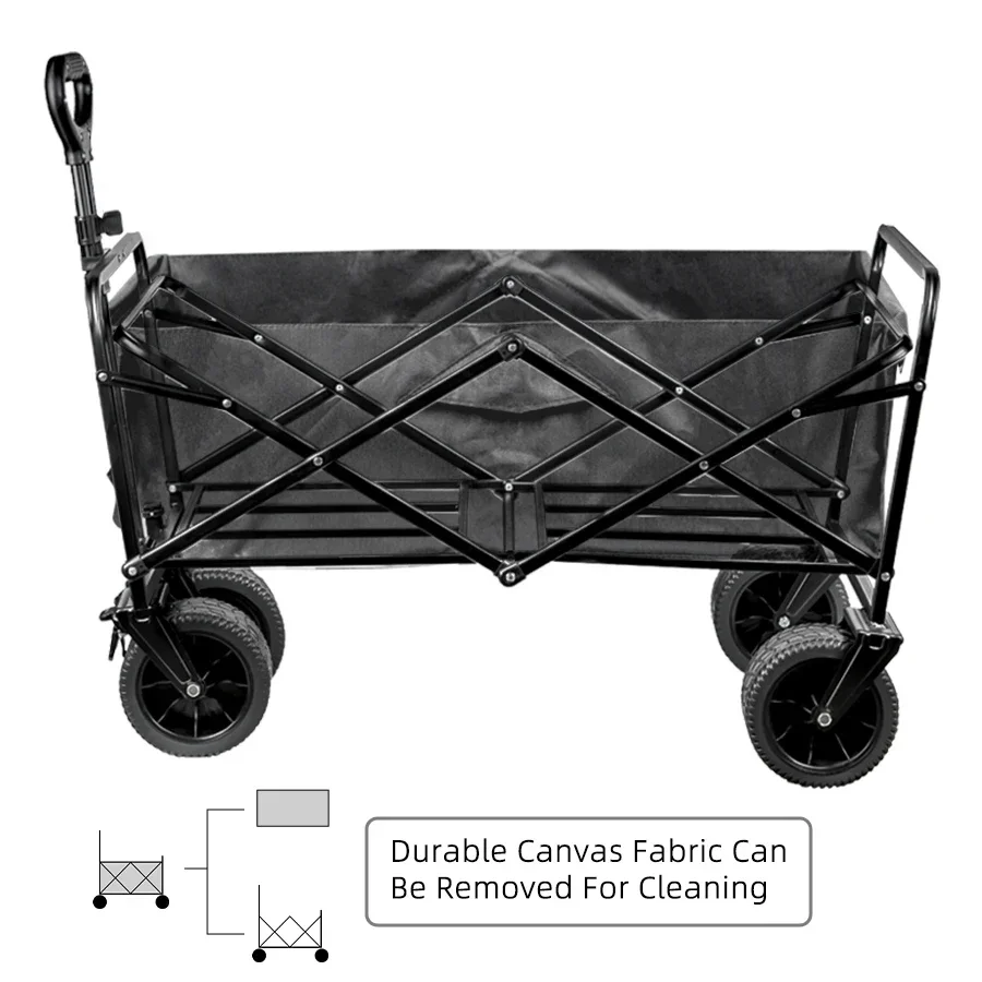 Carro de playa con ruedas de tanque grande para ARENA, carrito plegable de gran capacidad para jardín, Picnic al aire libre, carrito de compras plegable de 500 librasCarro plegable de gran capacidad de 500 lbsCarro de playa plegable portátil de alta resistencia con ruedas grandes para carrito de camping de arena