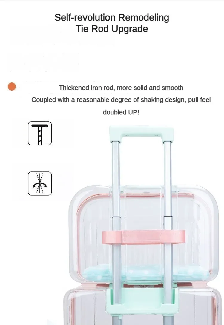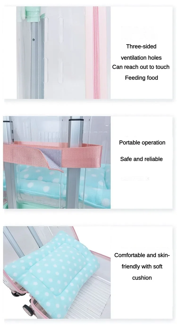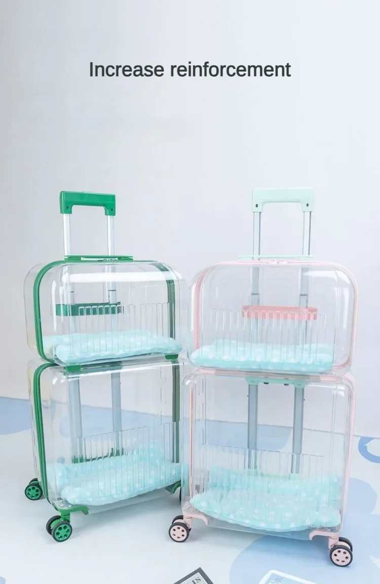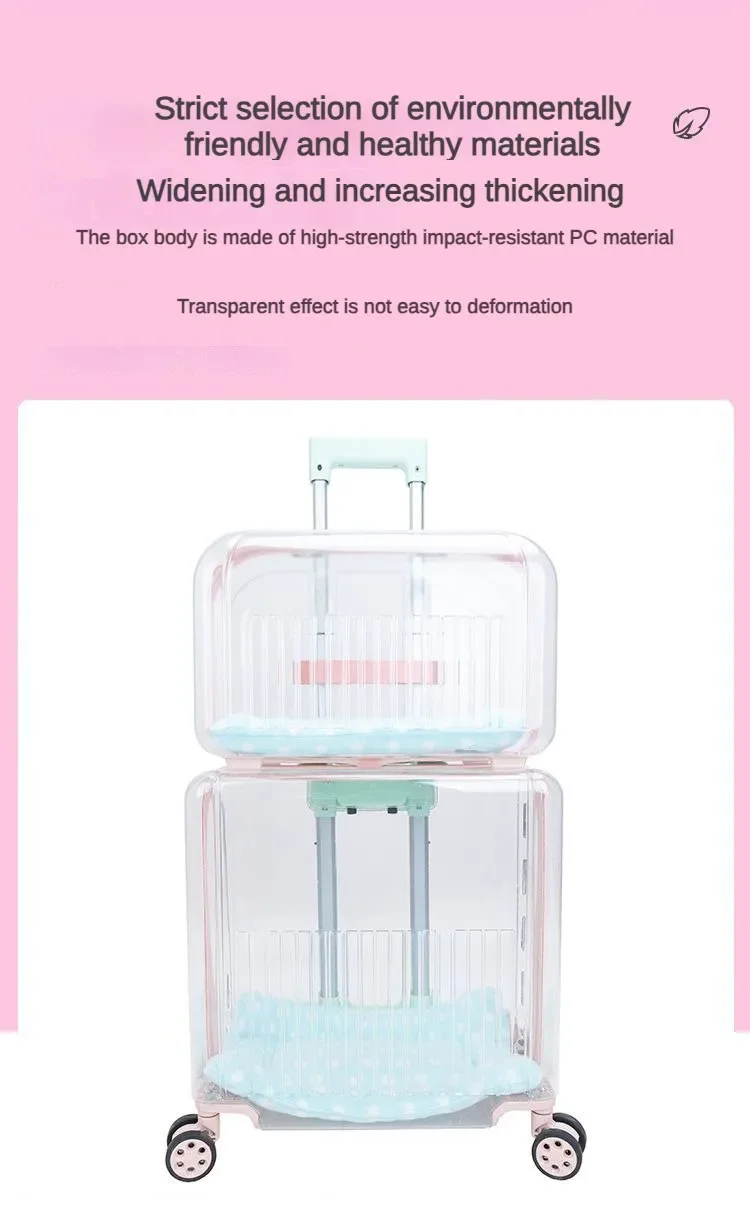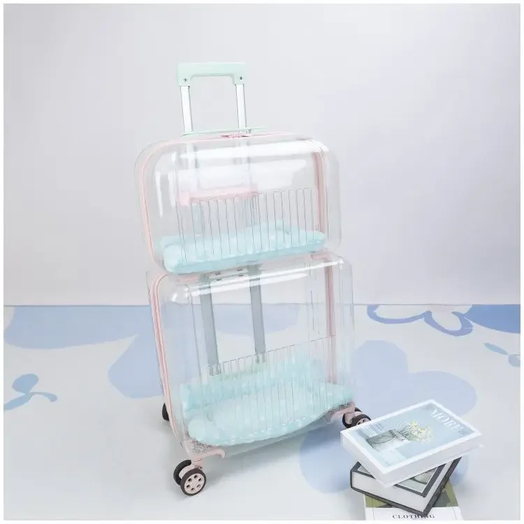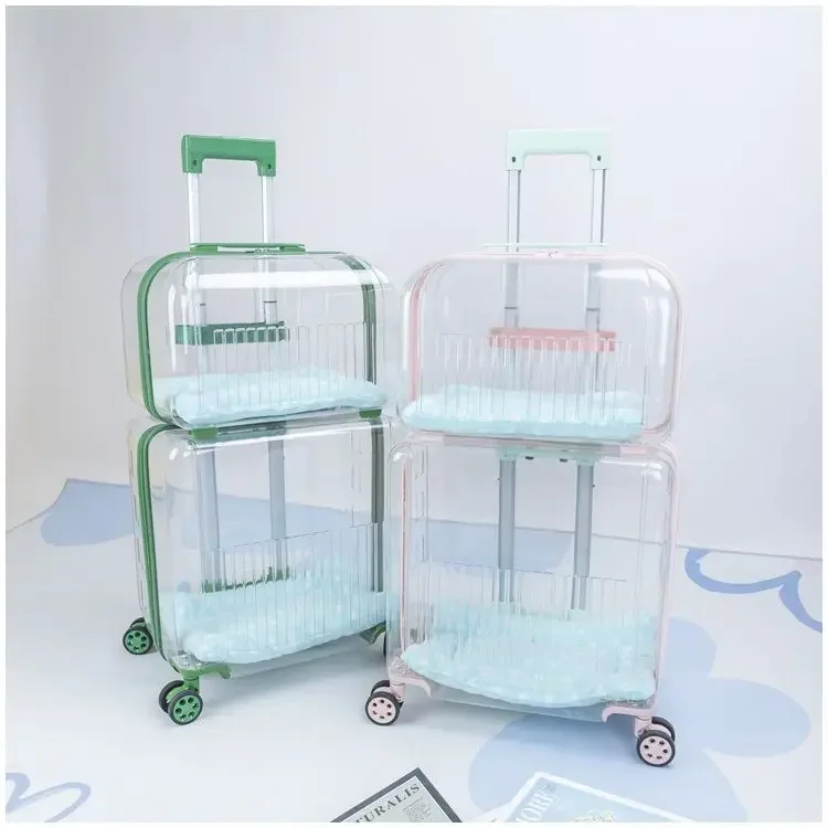 Nombre del producto: Maleta con ruedas para gatos, bolsas de transporte portátiles para gatos, productos de viaje transparentes de gran capacidad, suministros para mascotas, accesorios