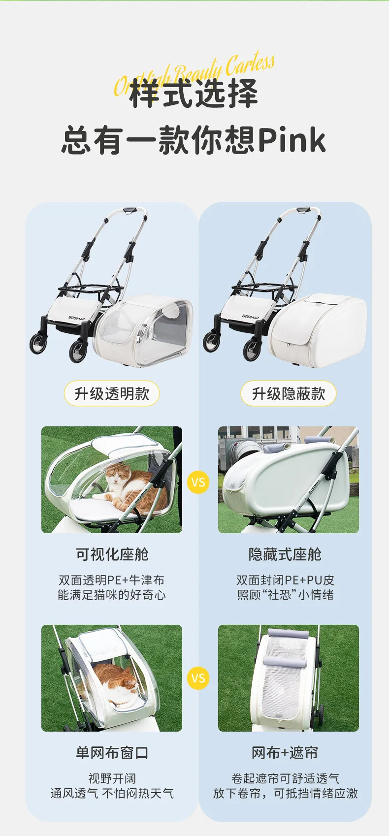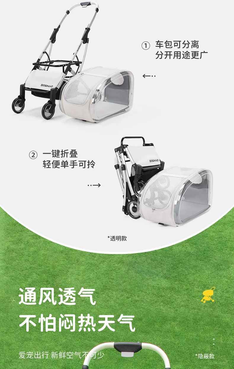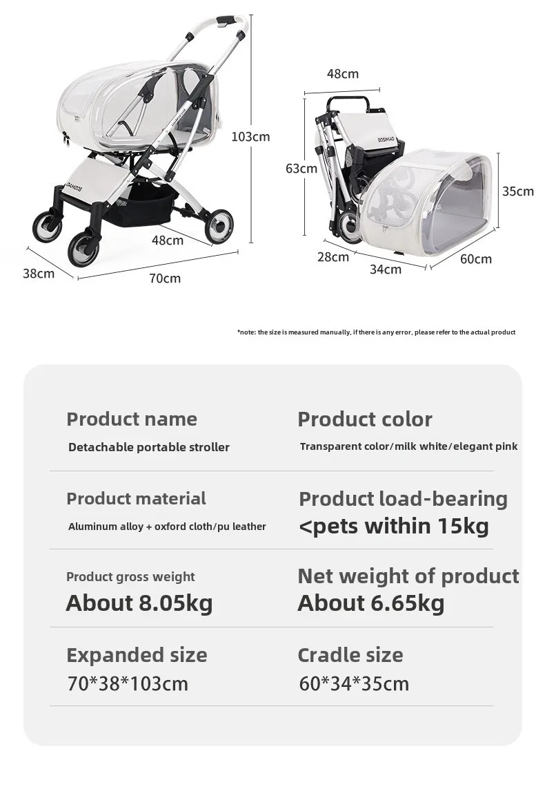 Carrito transparente para transporte de perros y gatos, carrito transparente para mascotas, carrito para perros pequeños y medianos, ligero y Separable