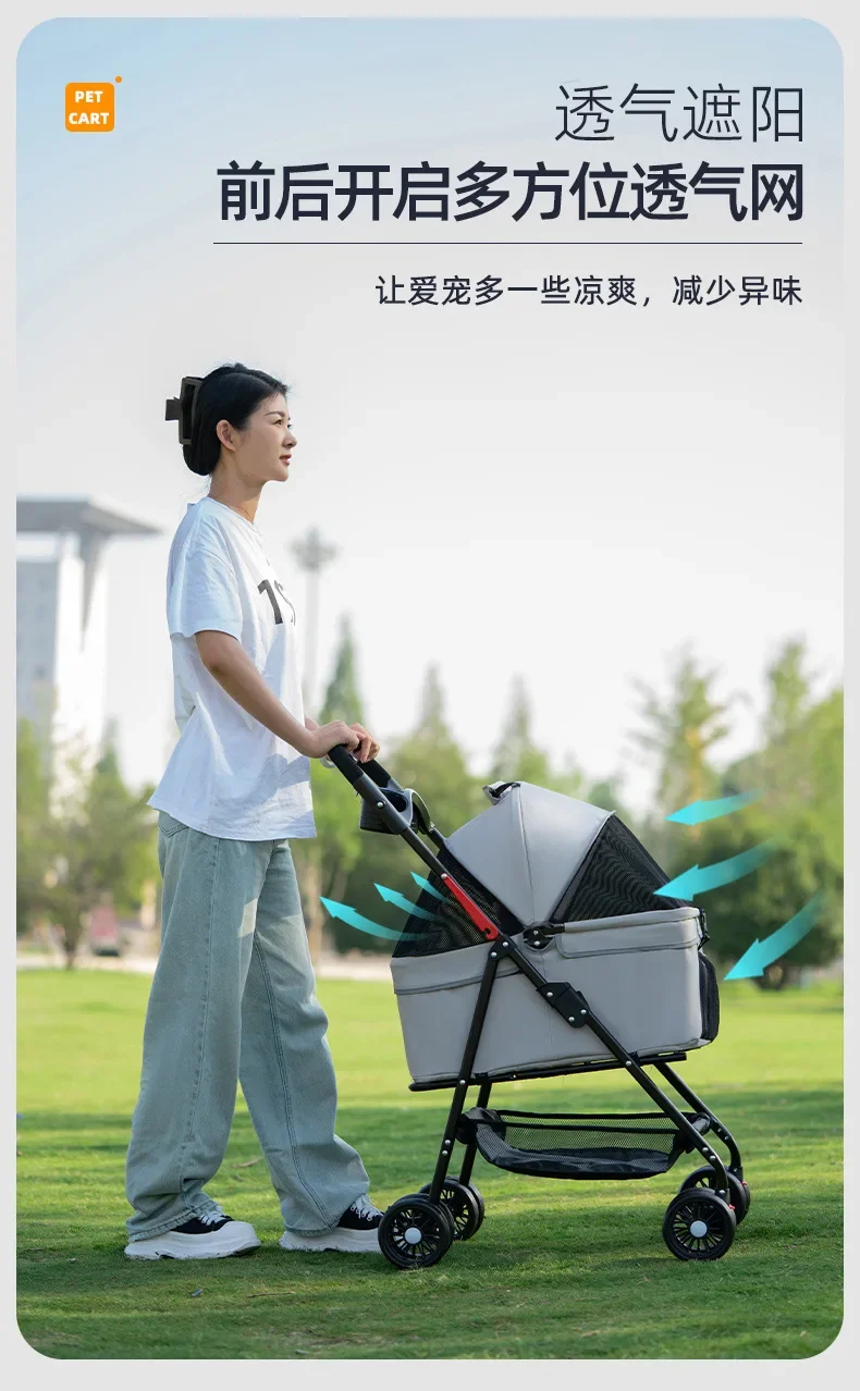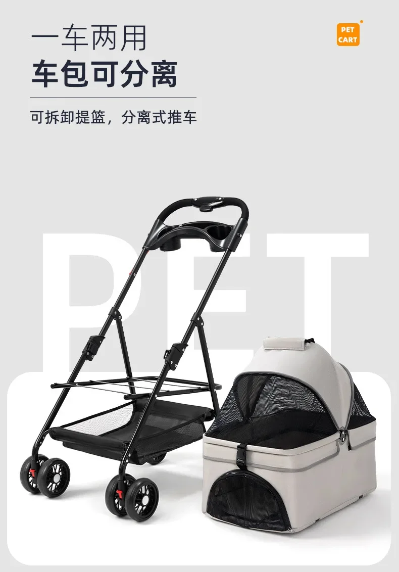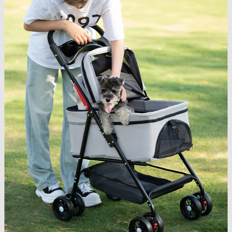 Carro para mascotas, cochecito de bebé de peluche para perros y gatos, carrito pequeño para mascotas, ligero y plegable para viajes al aire libre, suministros para perros y gatos