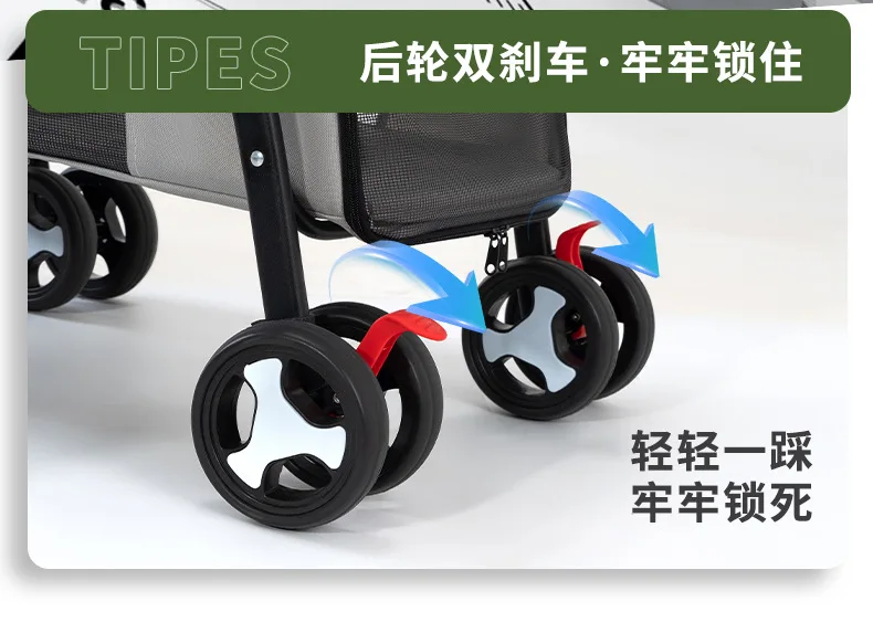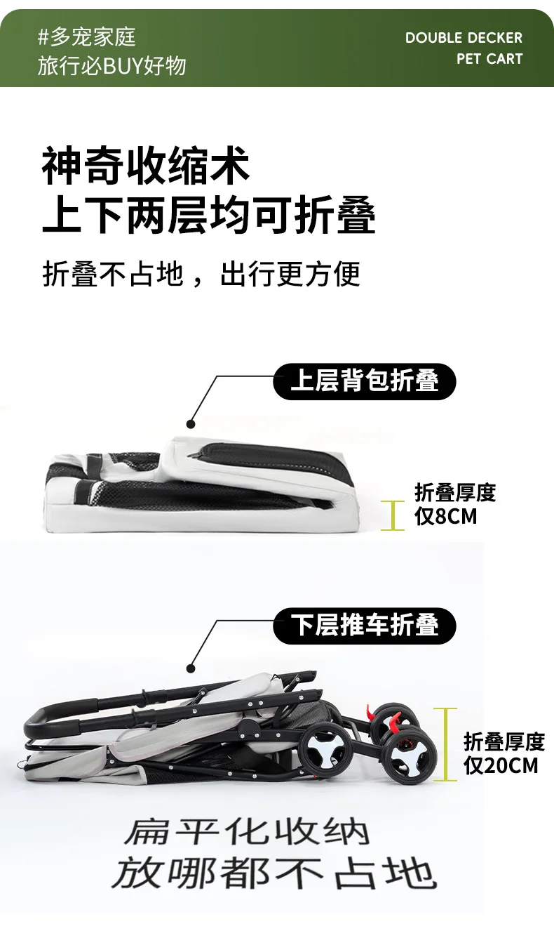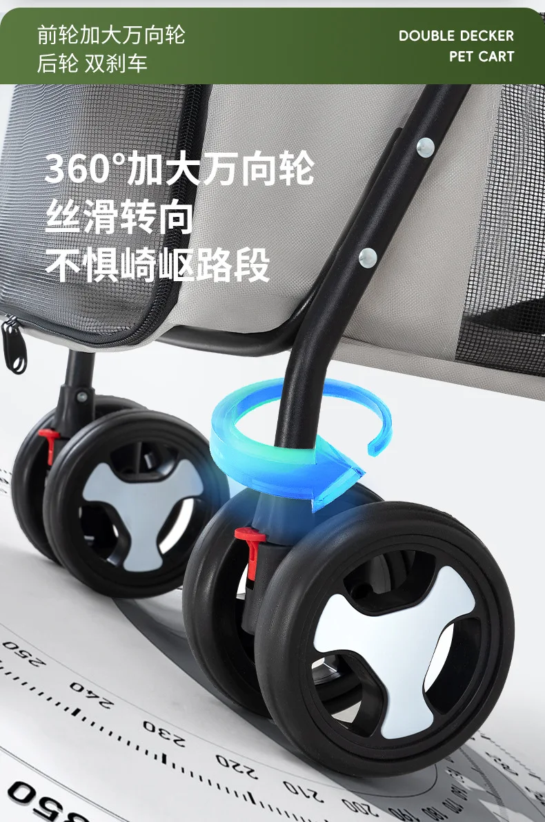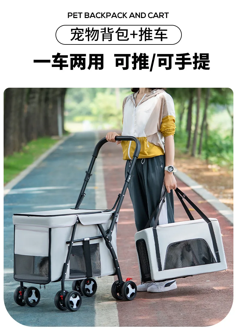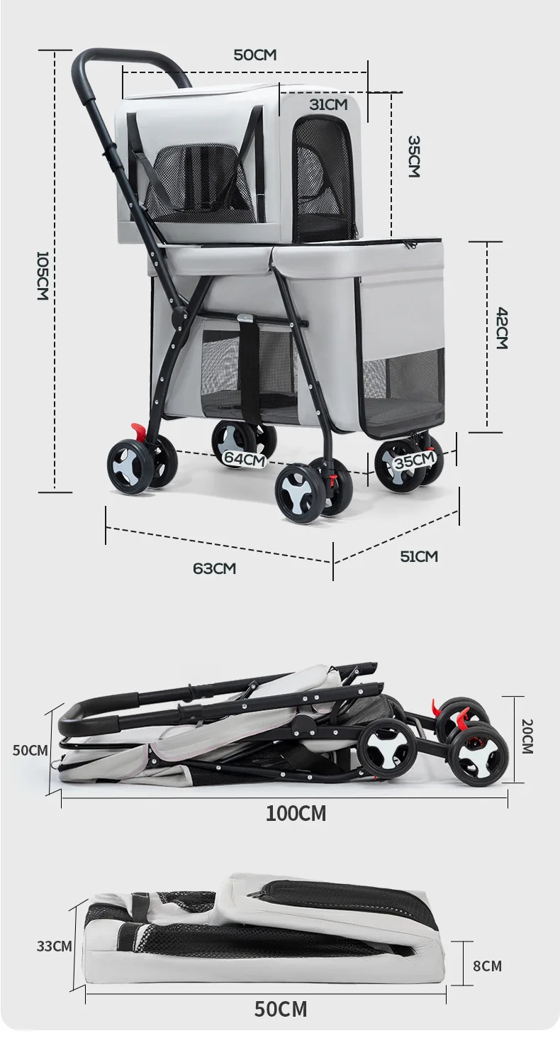 Carro para mascotas de doble capa, carrito para perros y gatos, cochecitos de viaje al aire libre plegables y ligeros