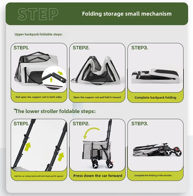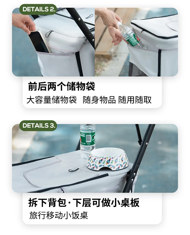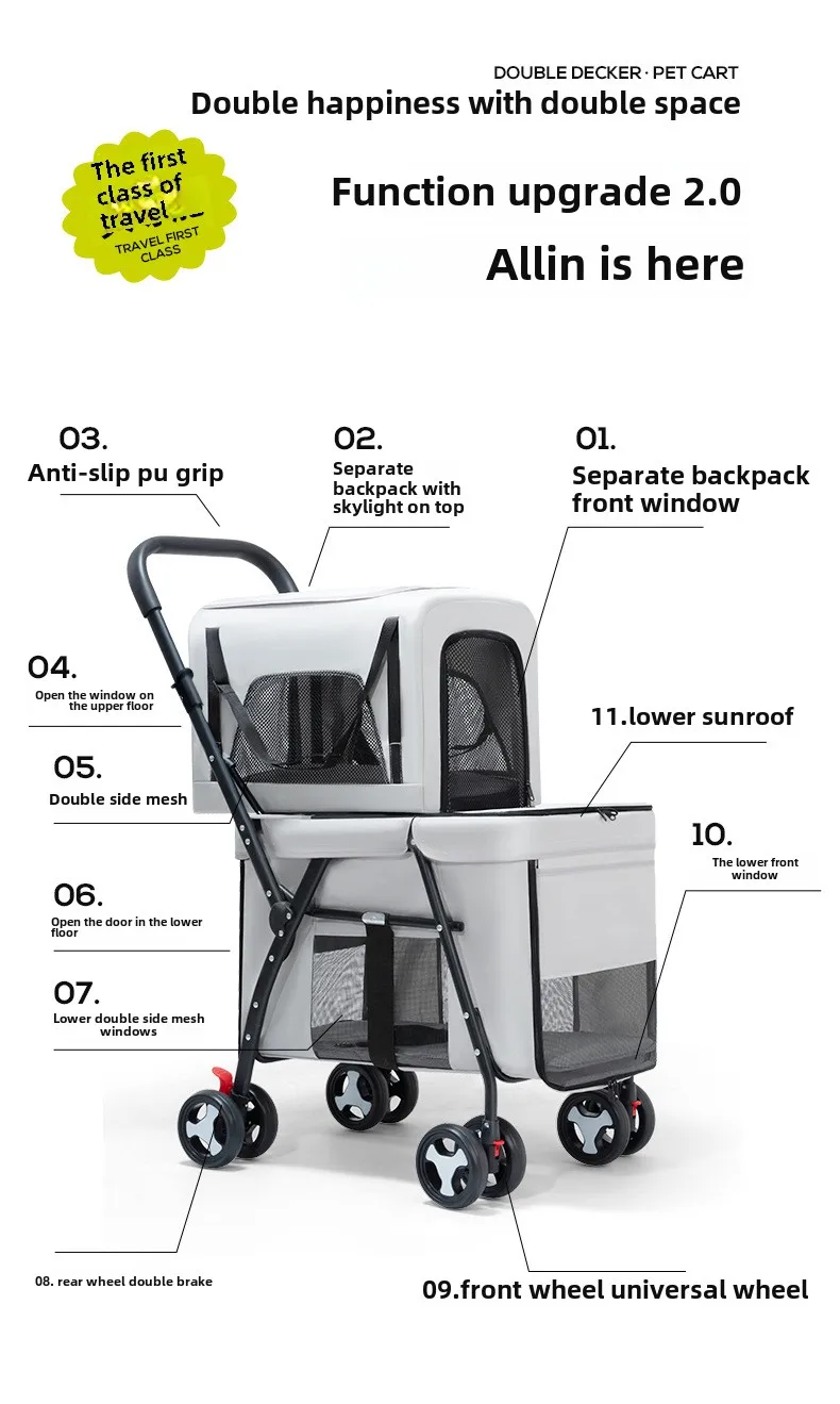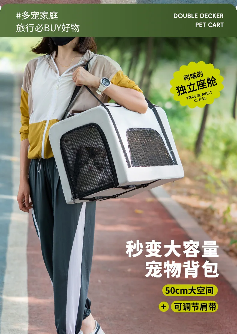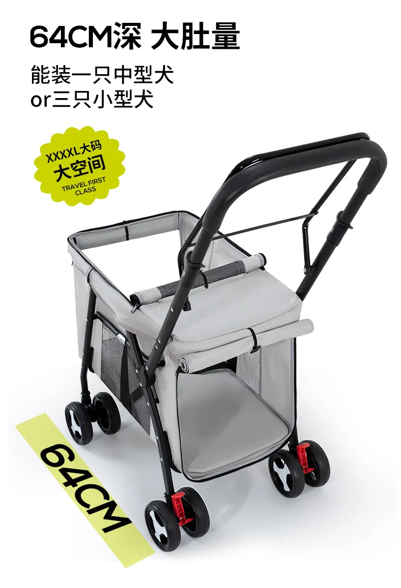 Carro para mascotas de doble capa, carrito para perros y gatos, cochecitos de viaje al aire libre plegables y ligeros