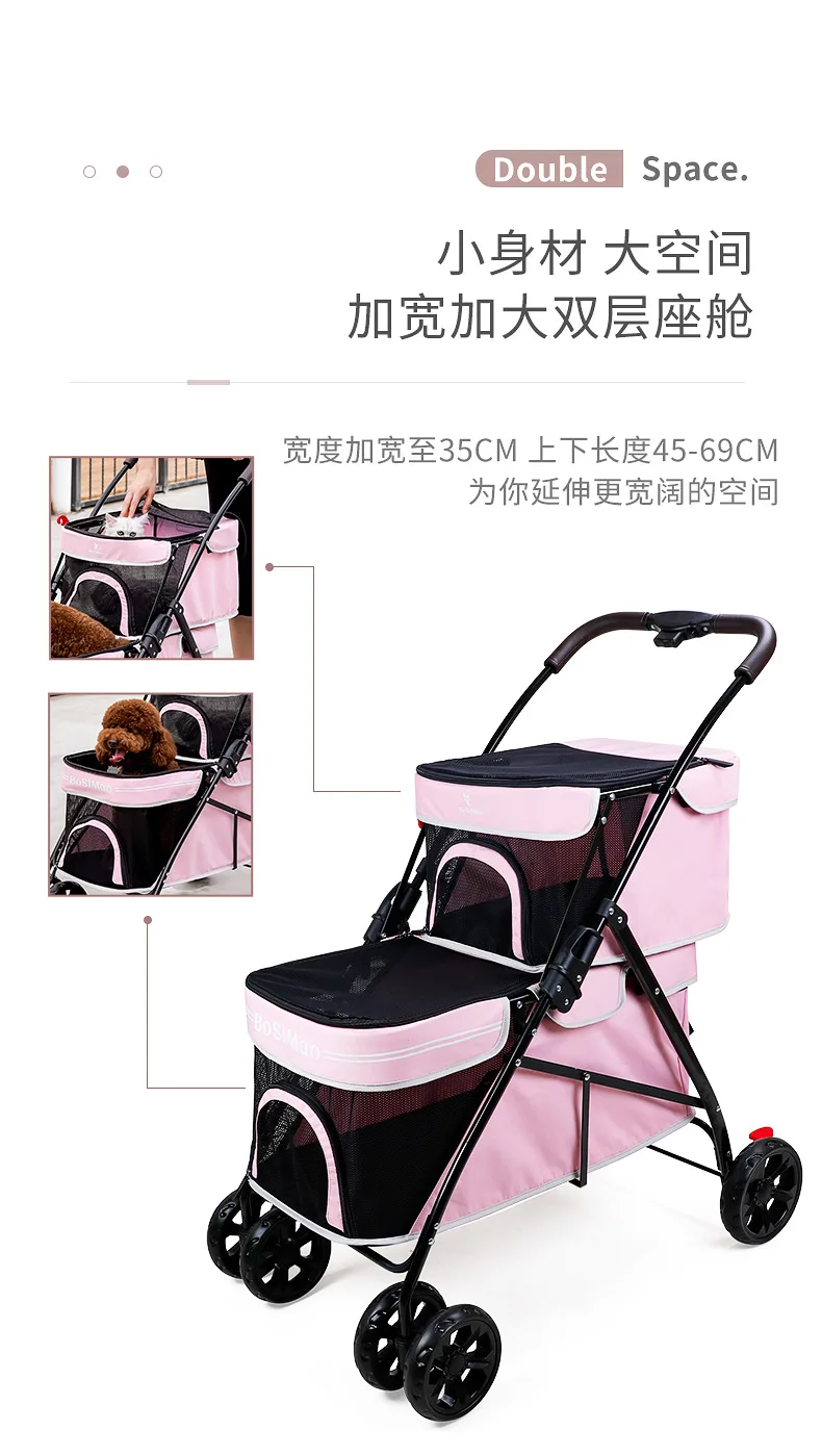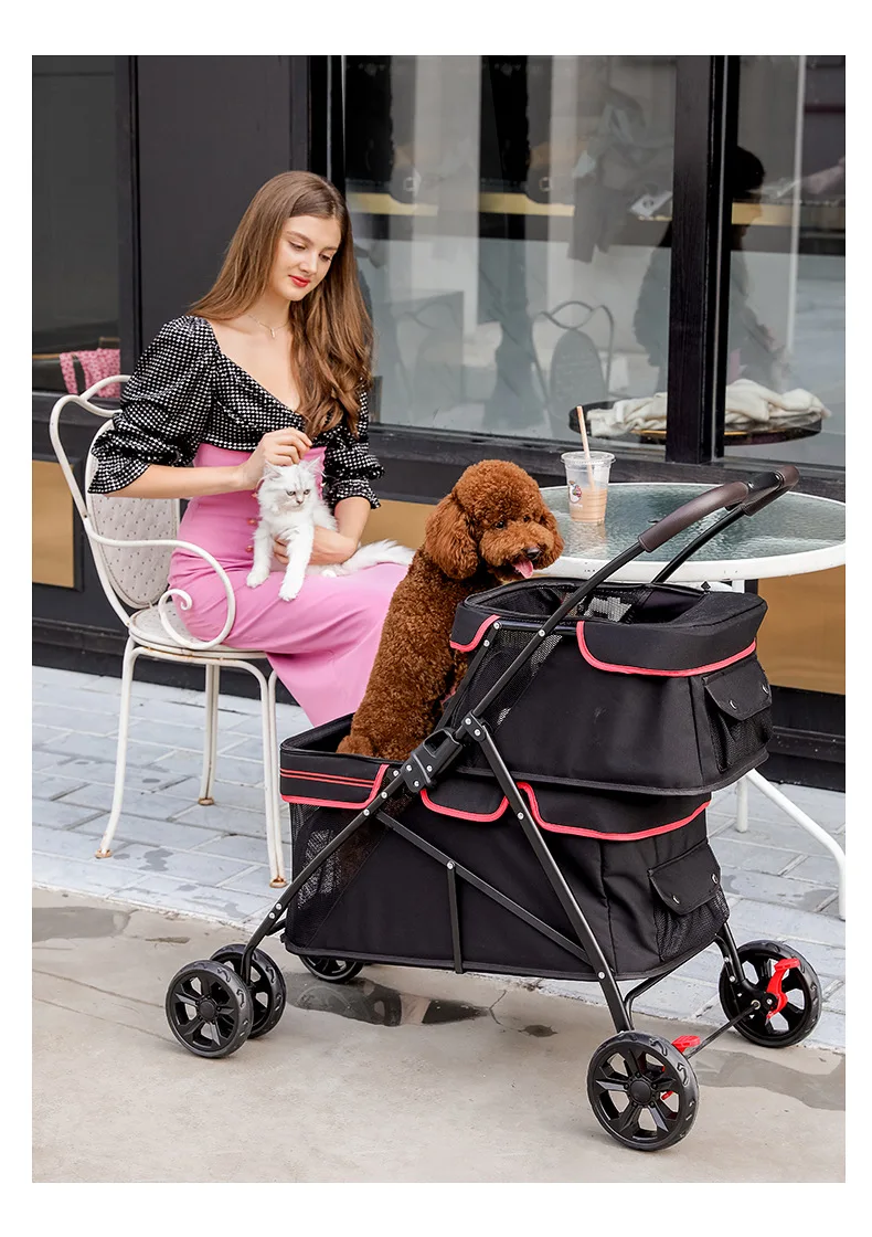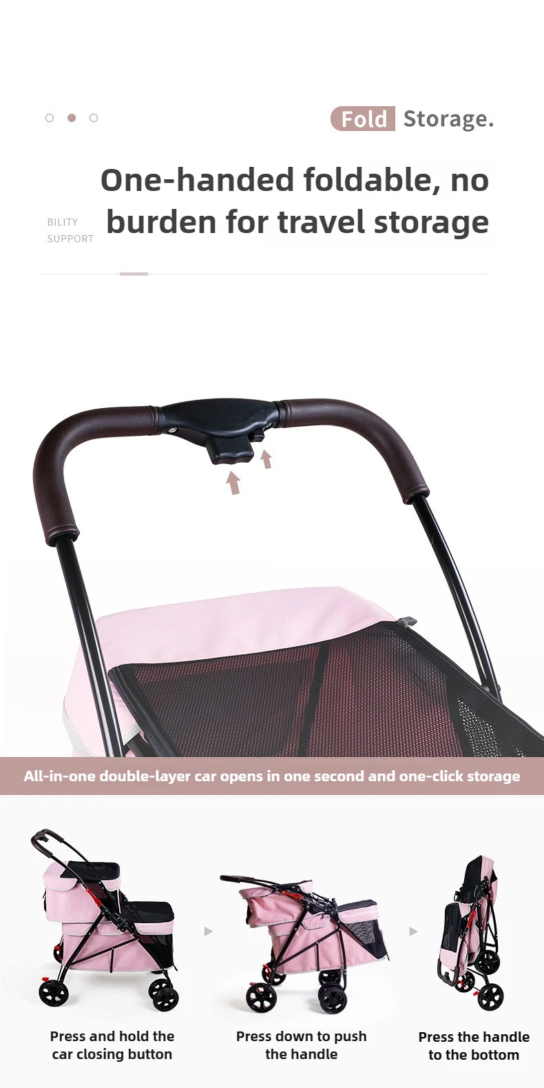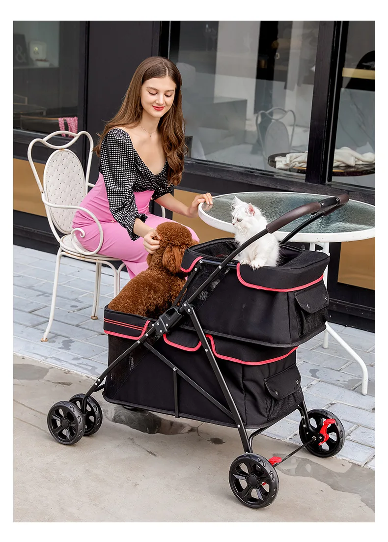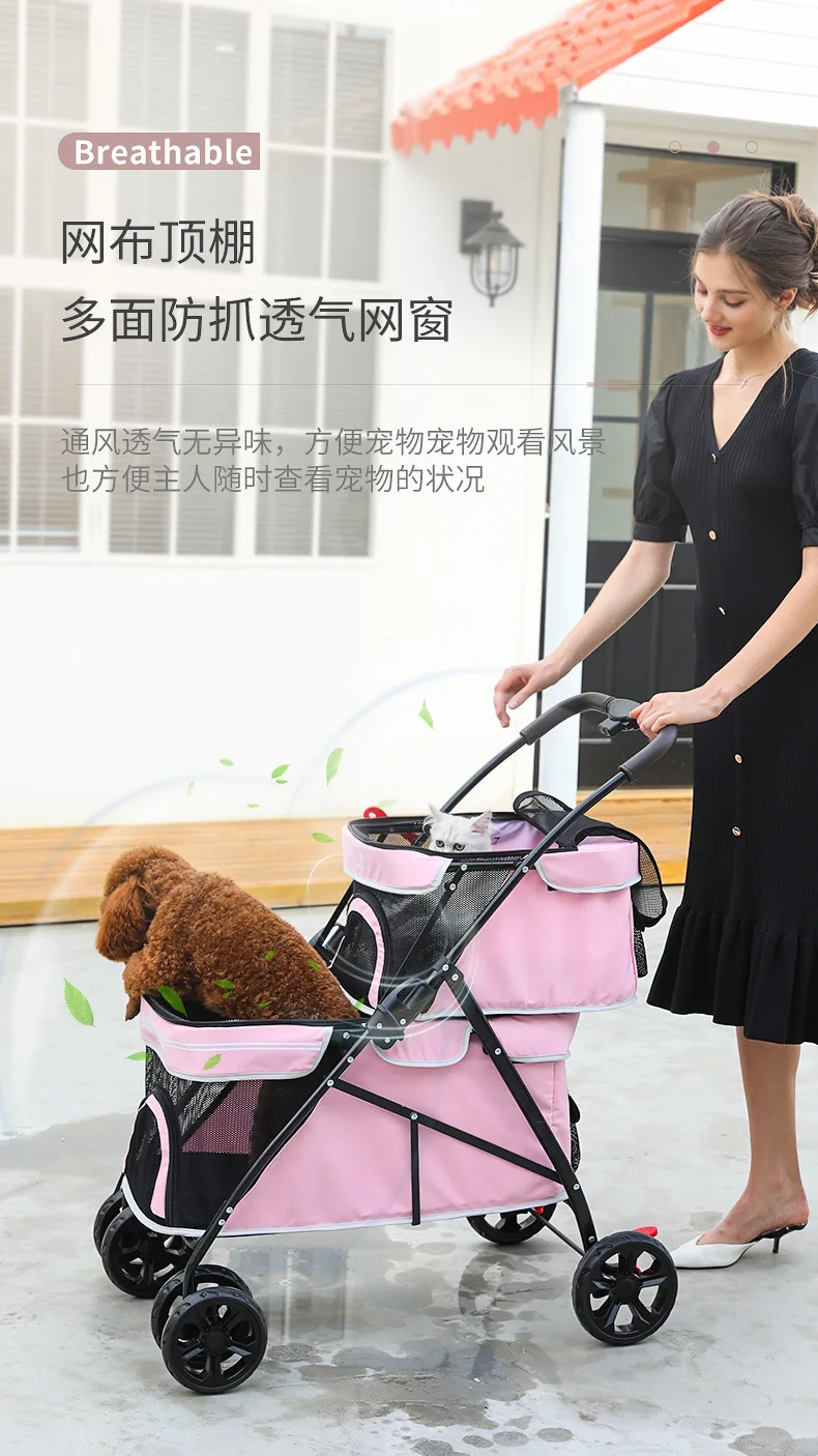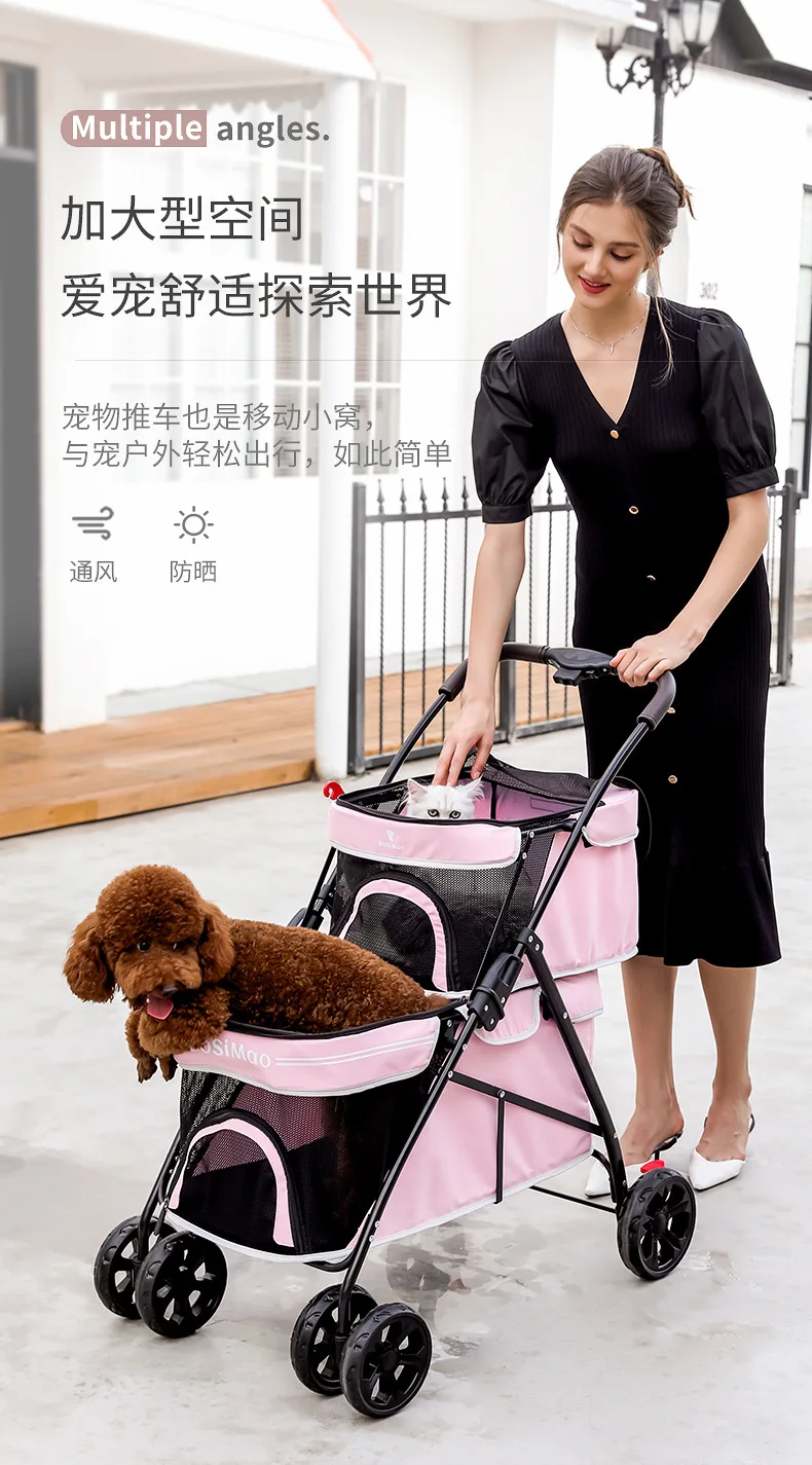 Carro para mascotas de doble capa, ultraligero y plegable, gran espacio, cochecitos de viaje para perros y gatos, suministros para perros