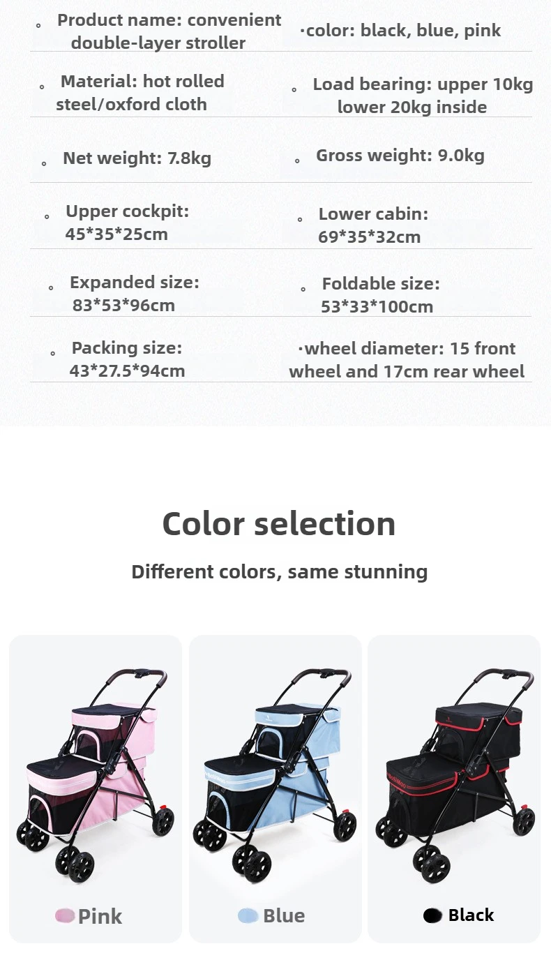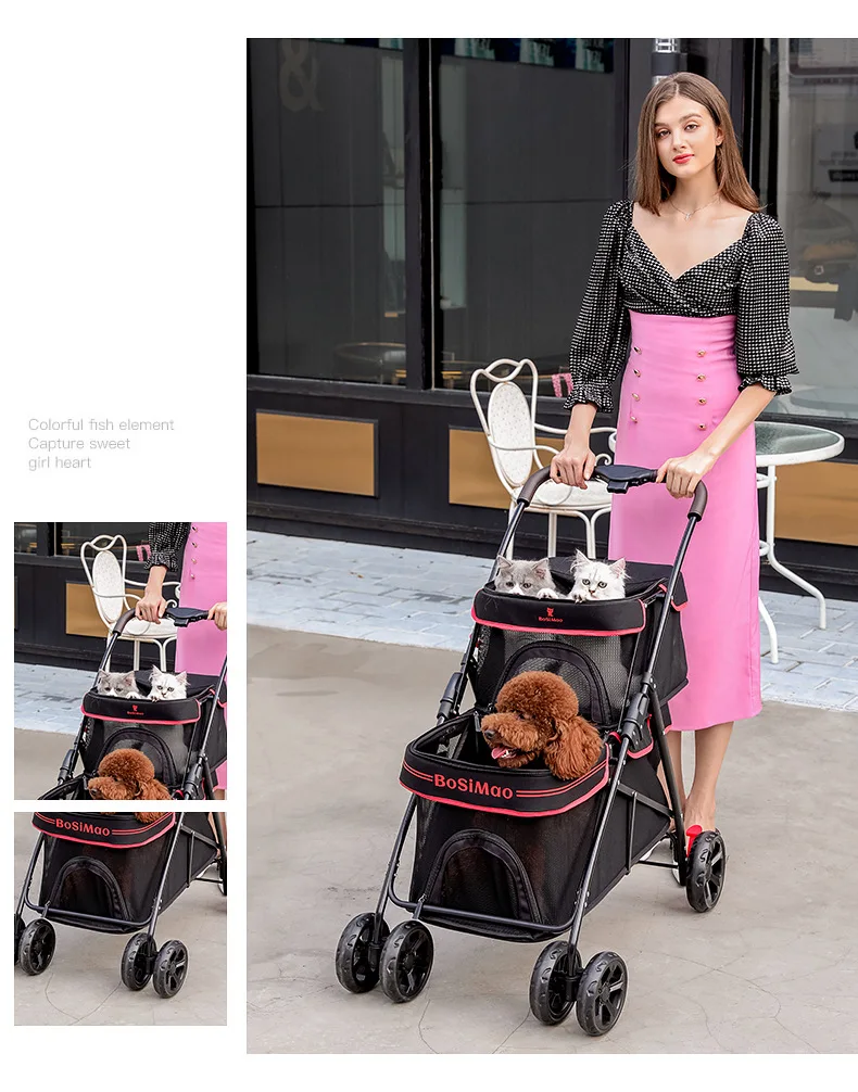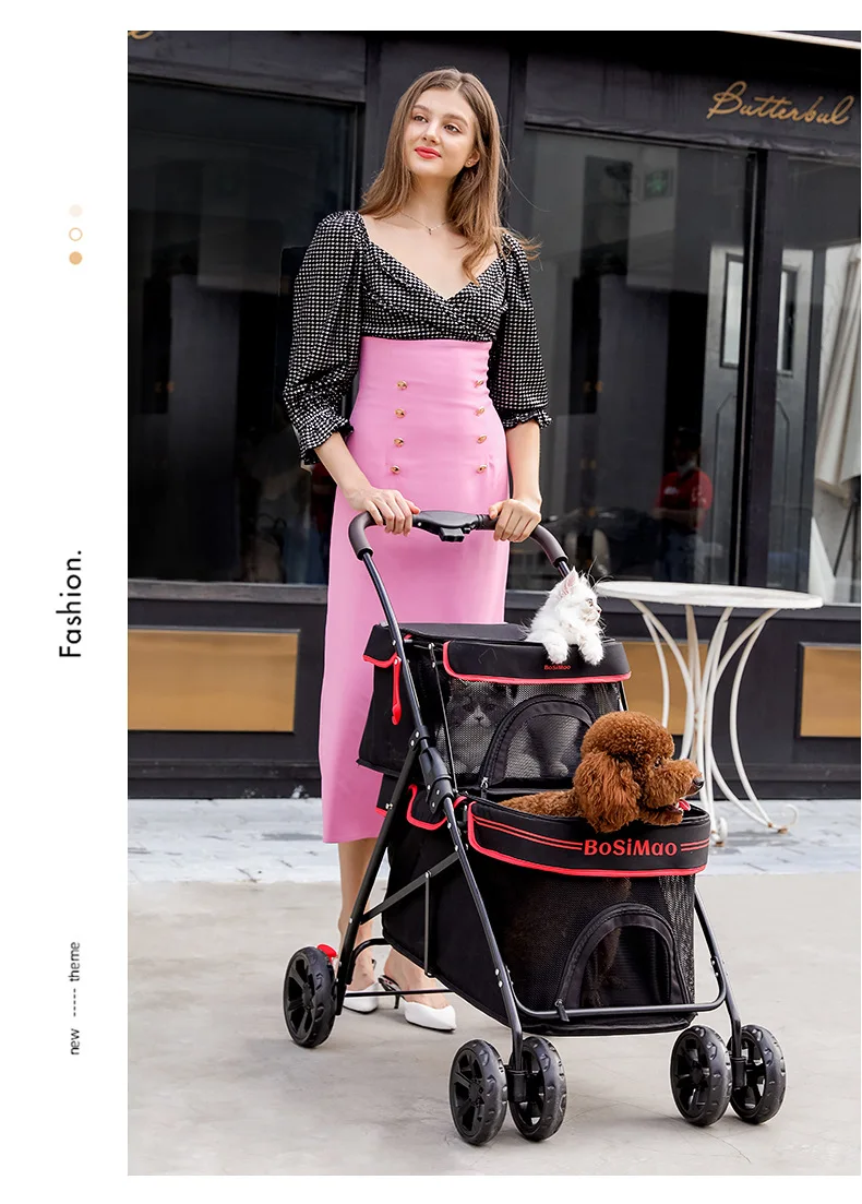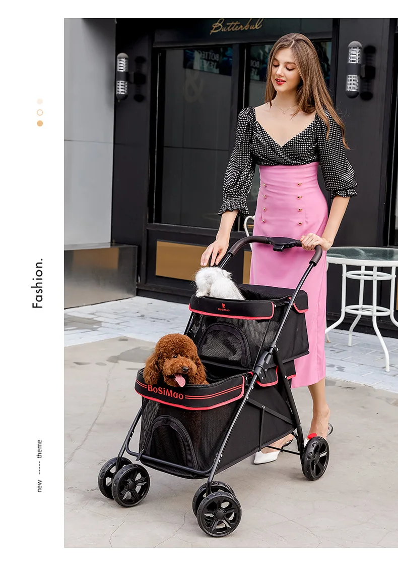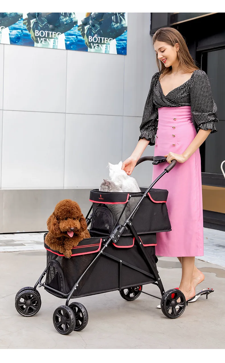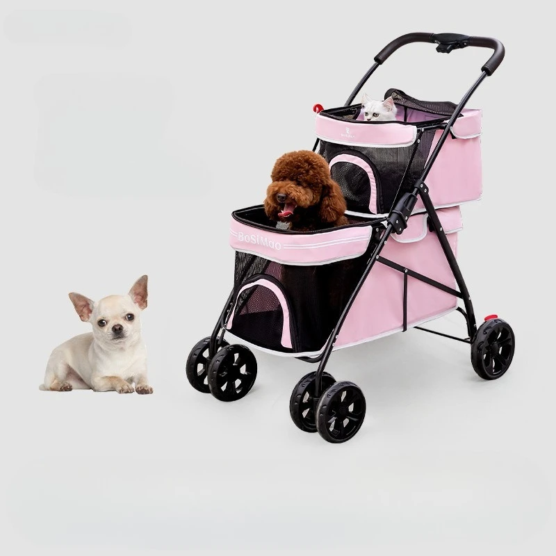 Carro para mascotas de doble capa, ultraligero y plegable, gran espacio, cochecitos de viaje para perros y gatos, suministros para perros