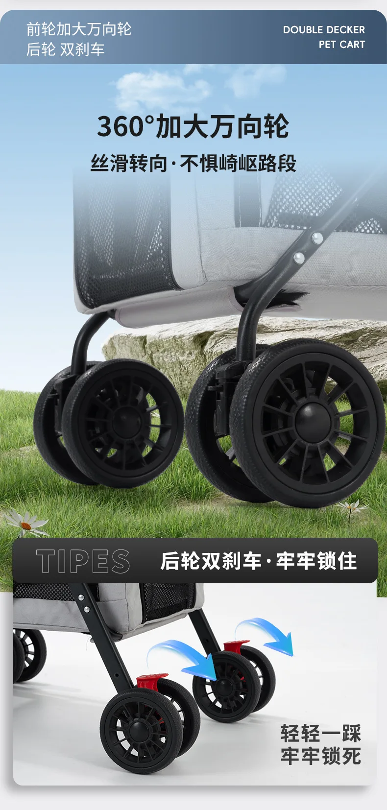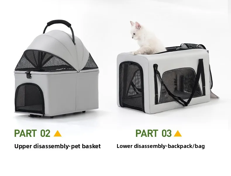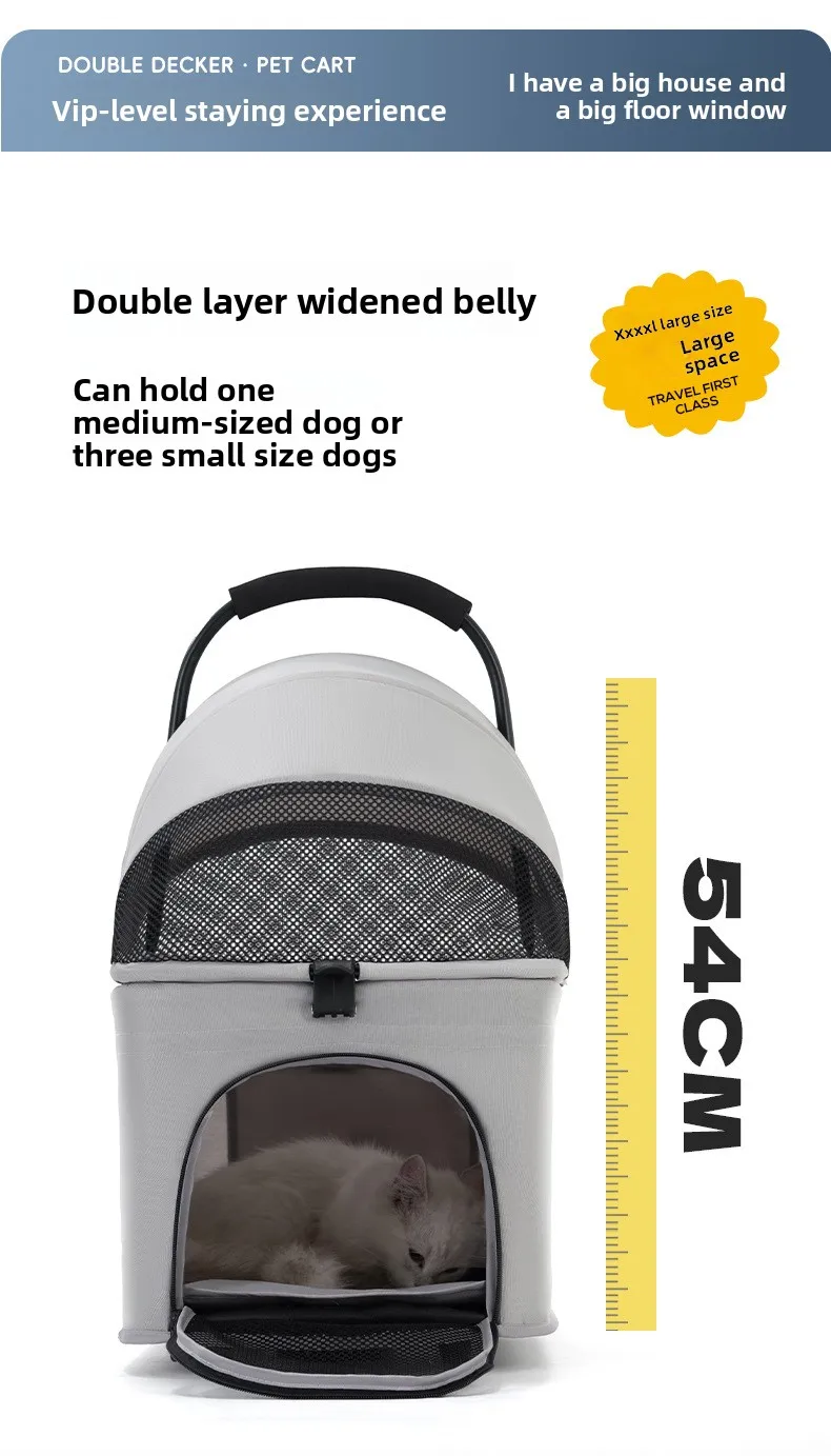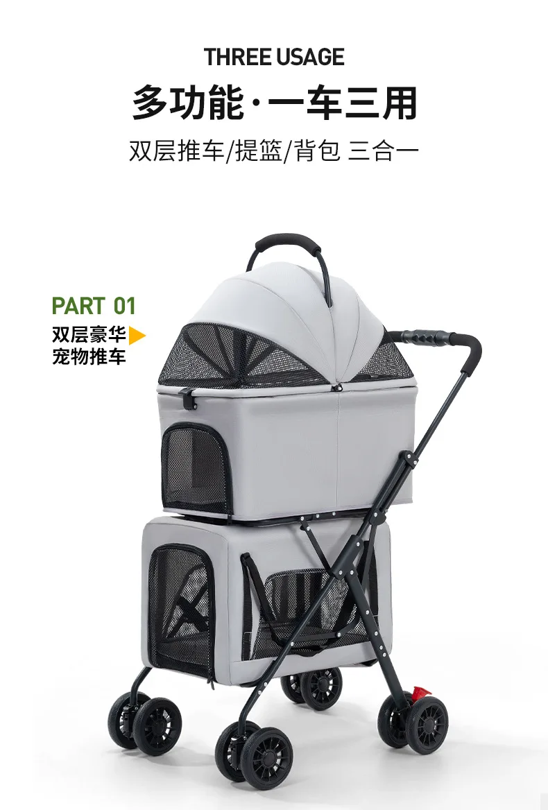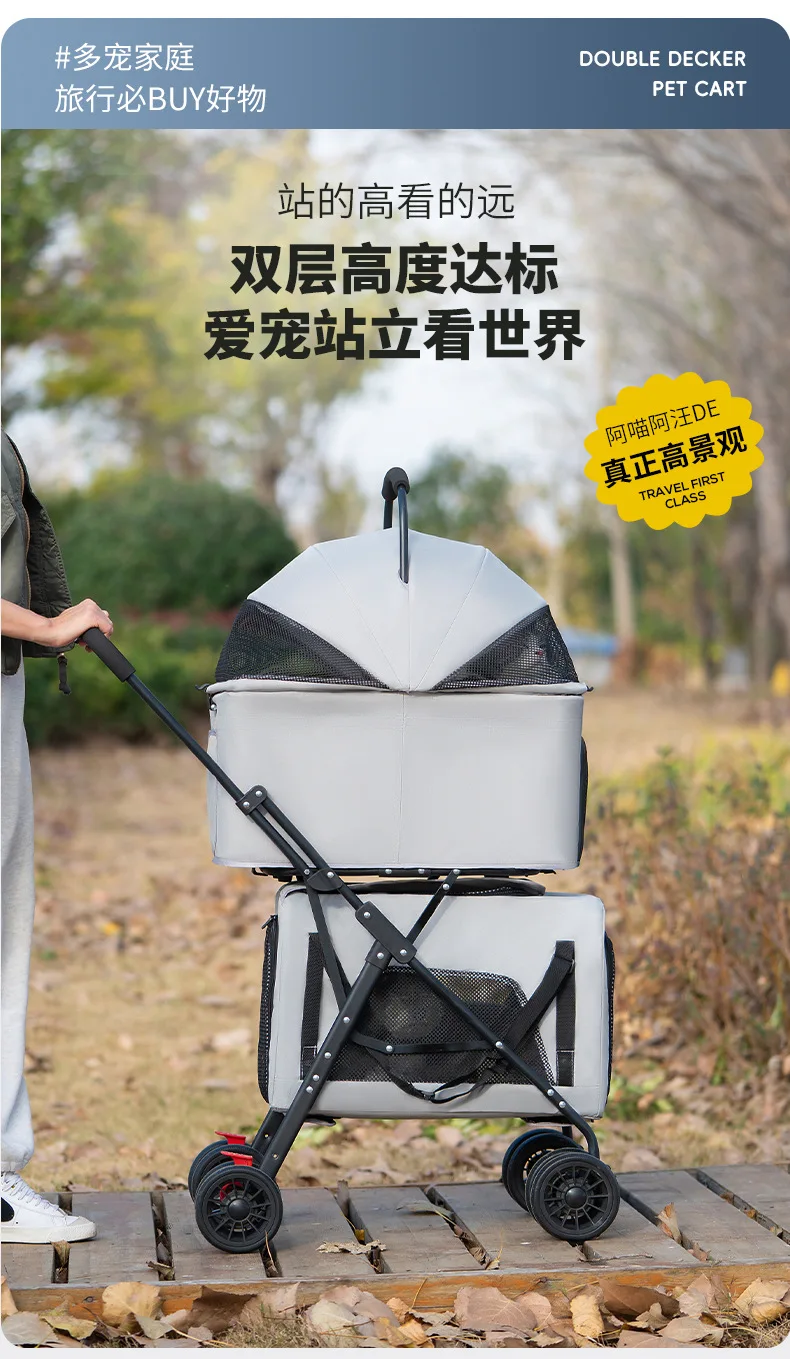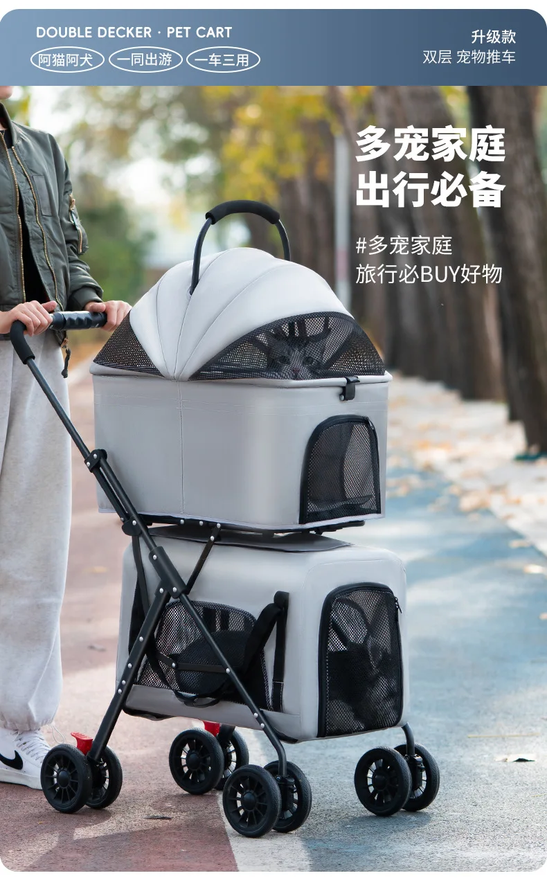 Carro para mascotas pequeño y mediano de doble capa, carrito separado para perros y gatos, cochecitos para mascotas de capas superiores e inferiores ligeros para exteriores