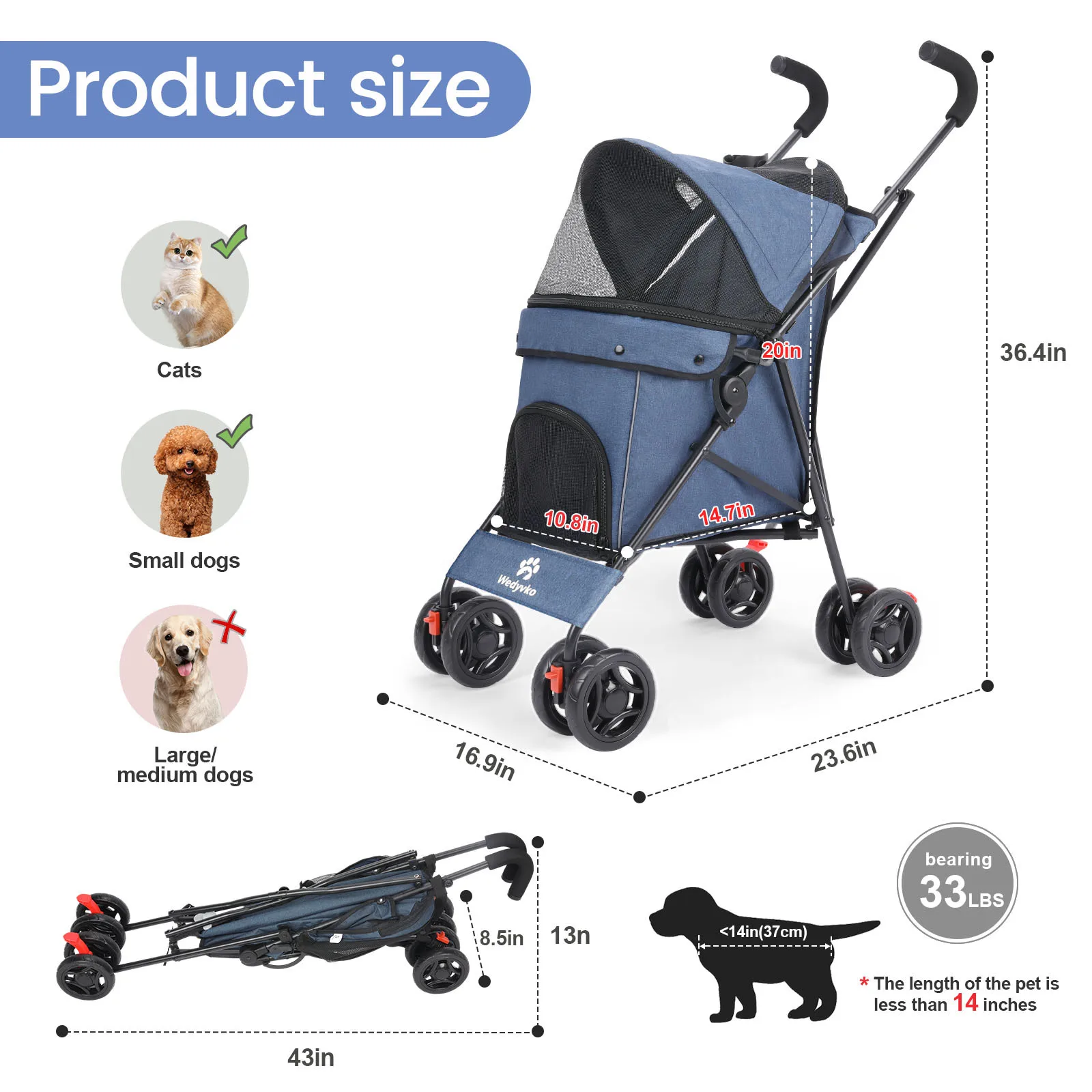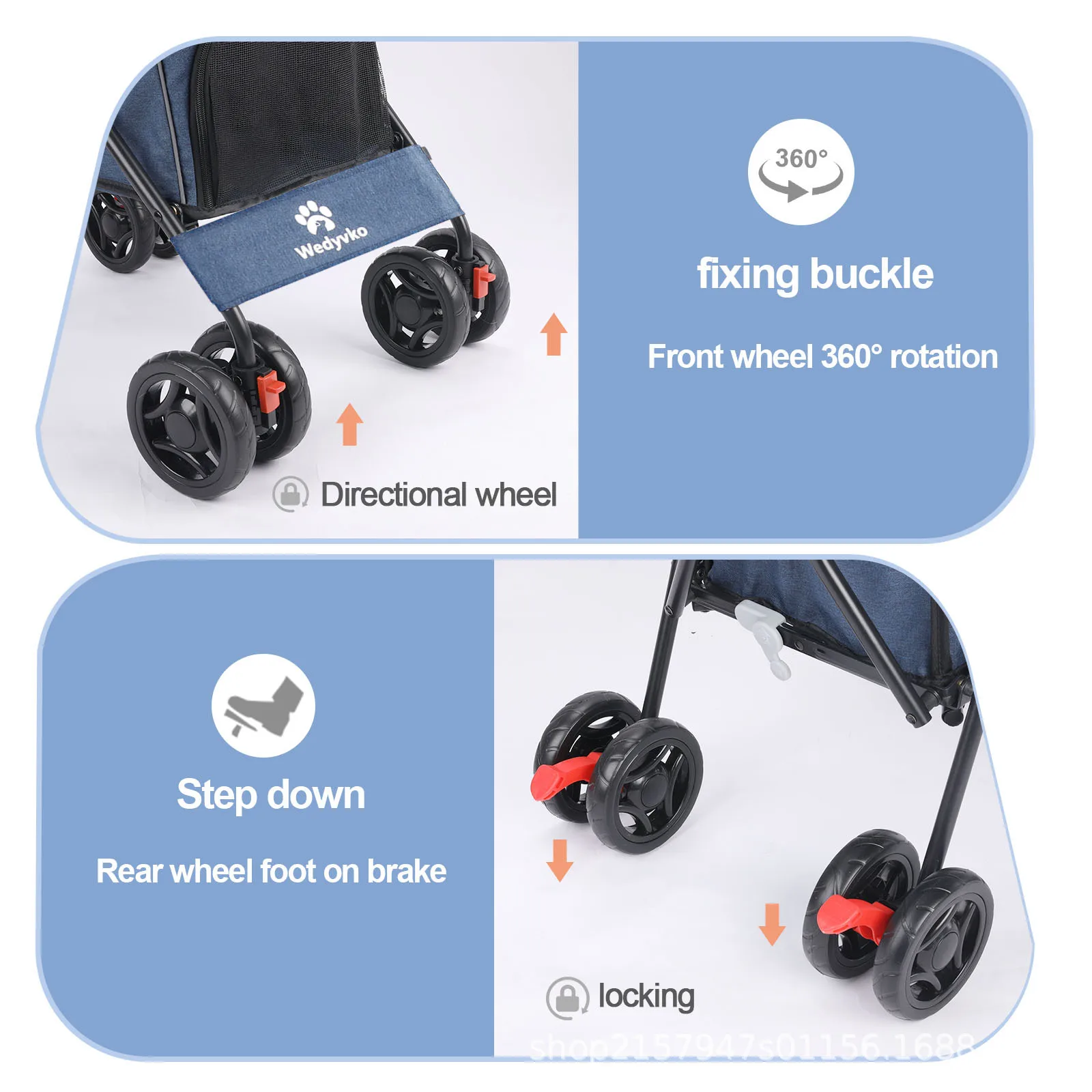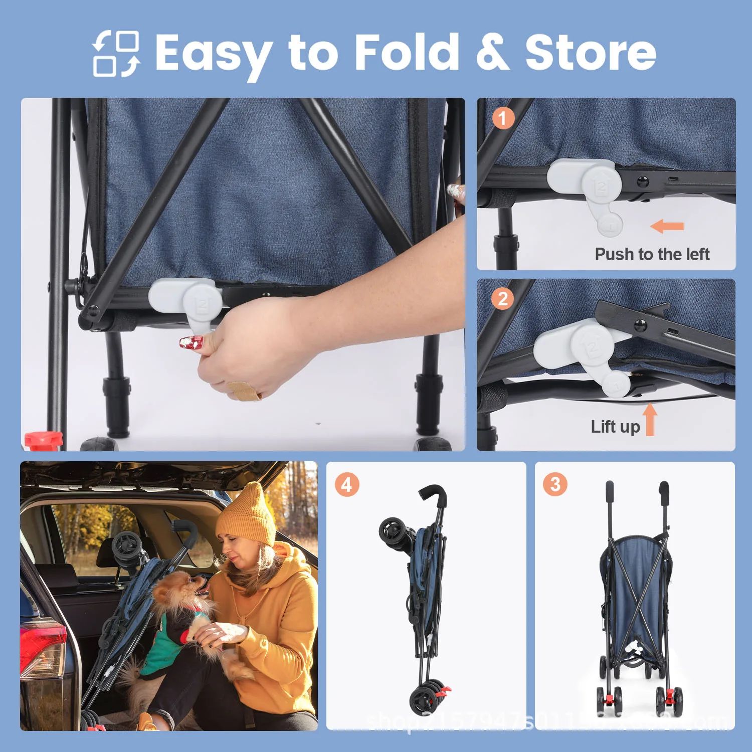 Carro para mascotas, perro, gato, peluche, salir, carrito de viaje plegable multifunción portátil pequeño y mediano