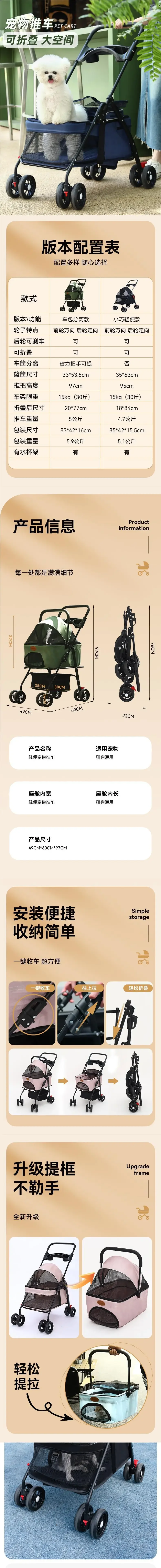 Carro para mascotas para salir, carrito pequeño, cochecito para perros plegable pequeño y ligero, transportador para mascotas