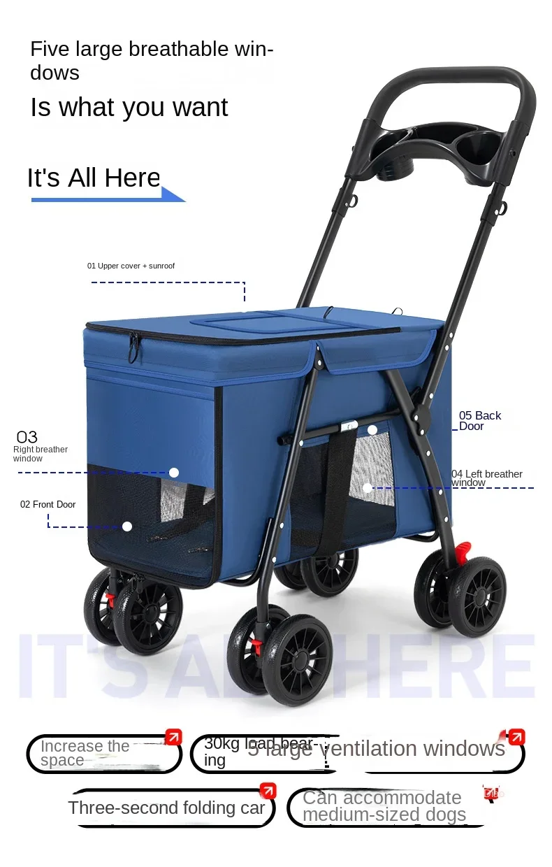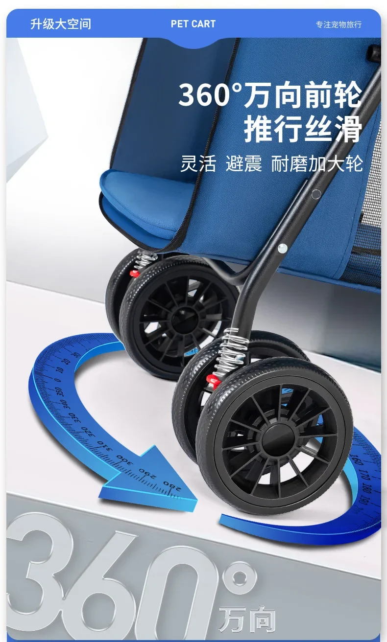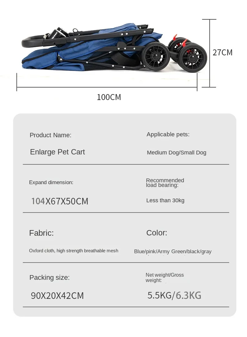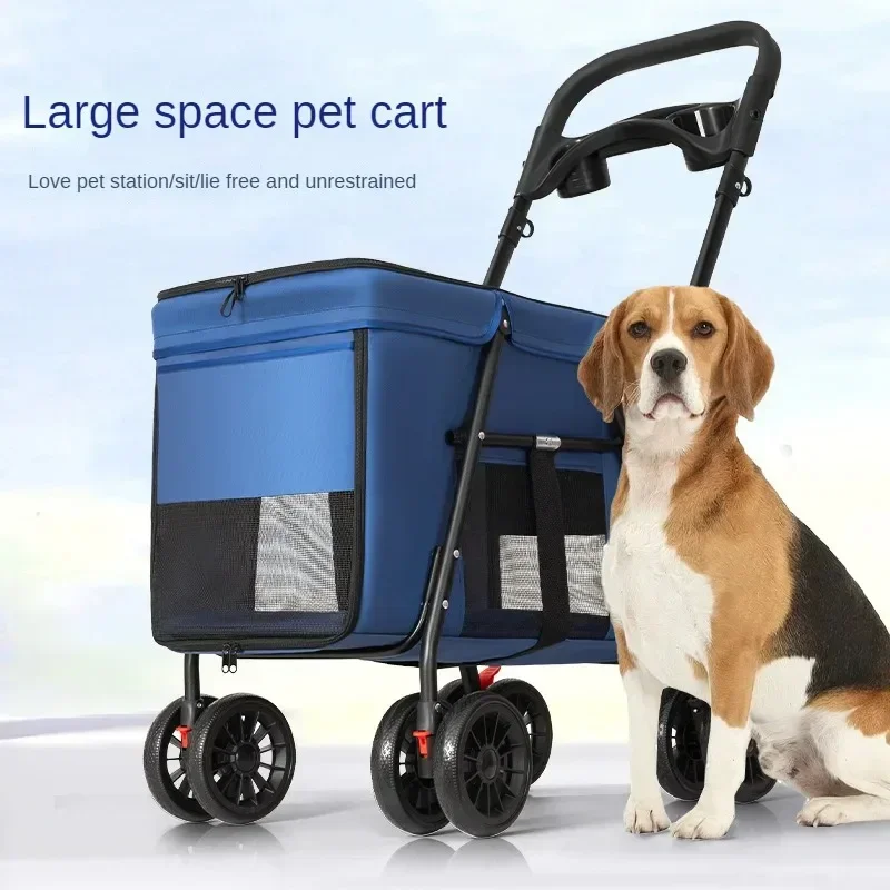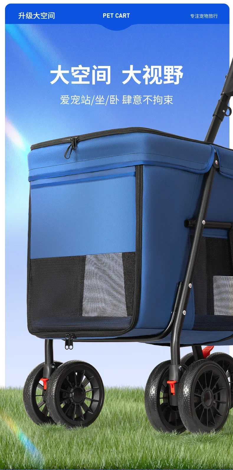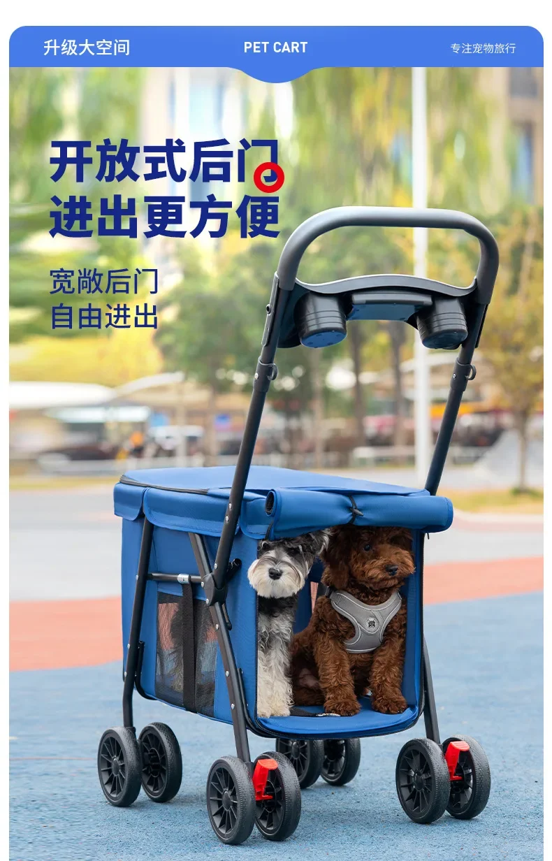 Carro para mascotas de tamaño mediano a grande, cochecito de bebé de peluche para perros y gatos para uso al aire libre, carrito pequeño para mascotas, ligero y plegable