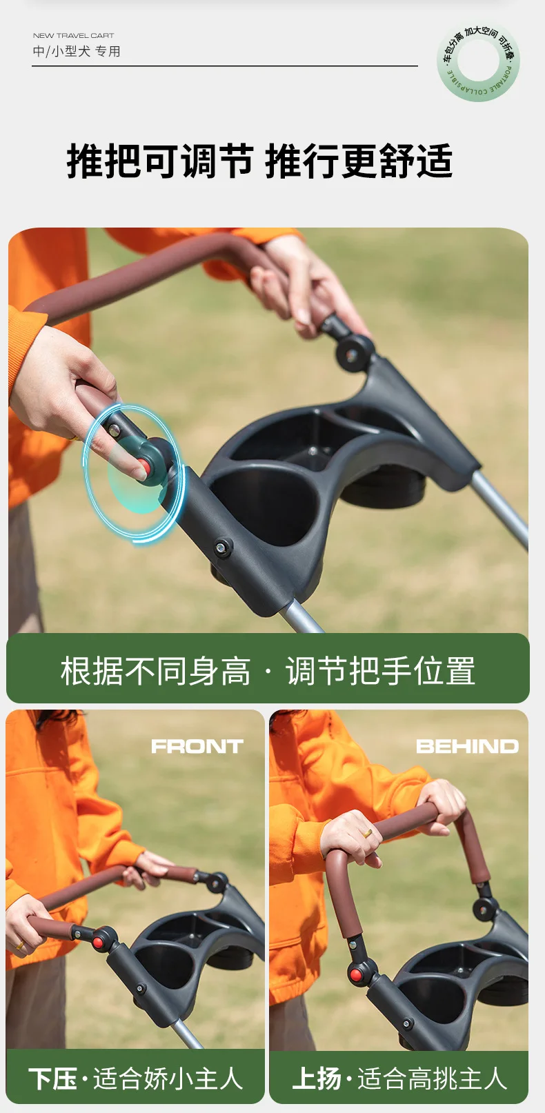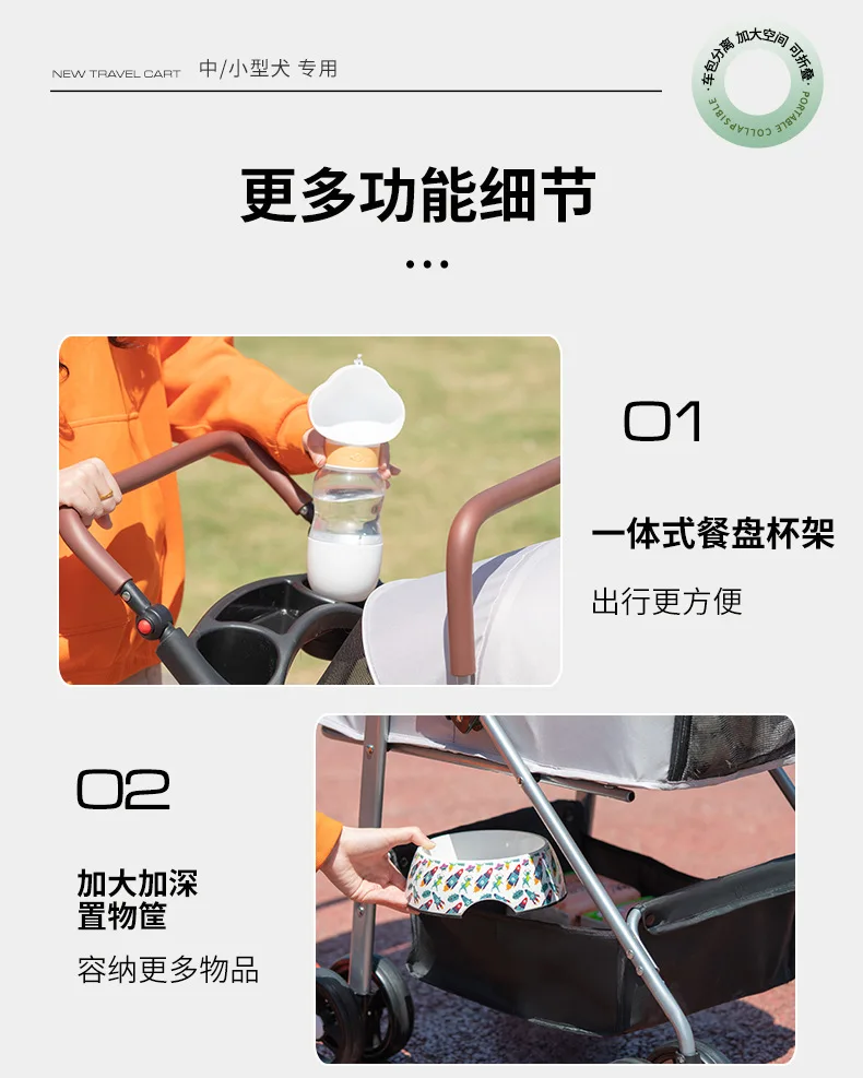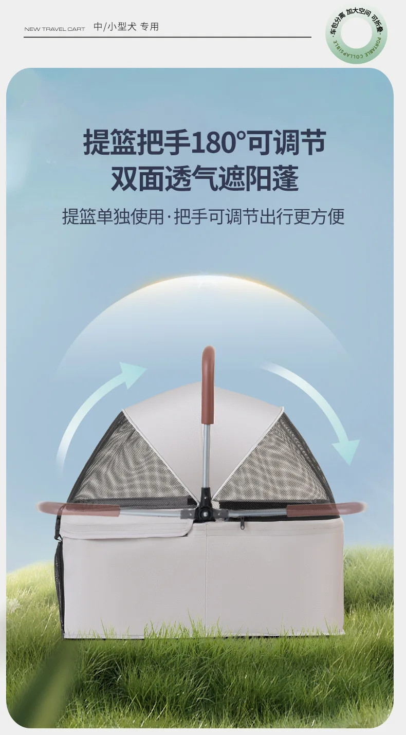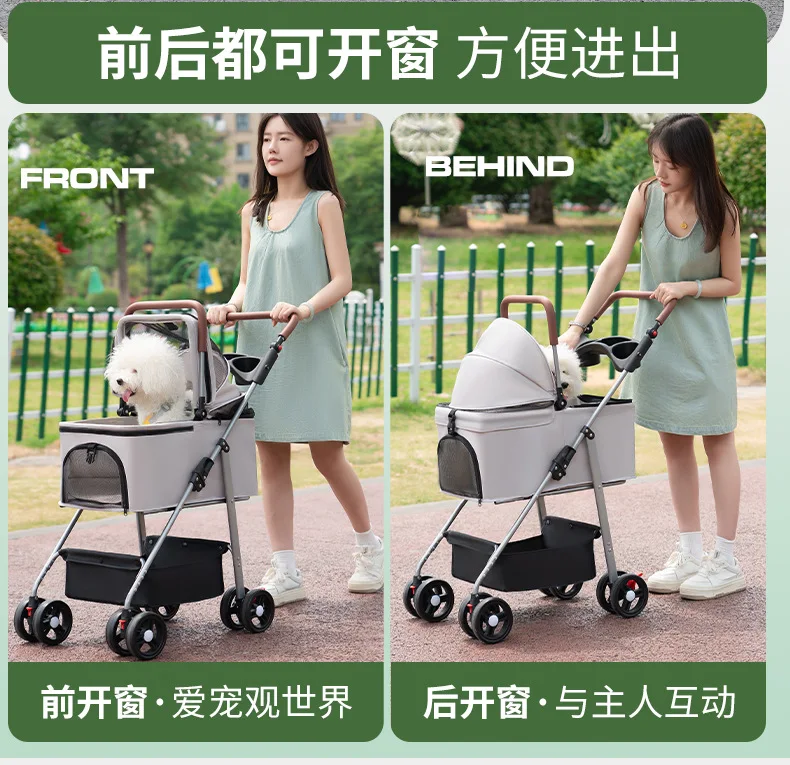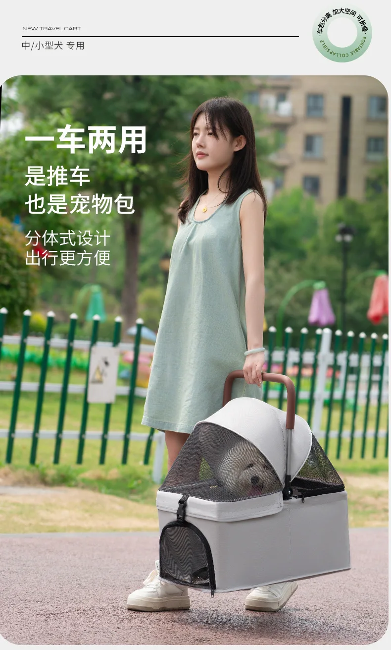 Carro para perros con separación, carrito para mascotas pequeño plegable y ligero para gatos, carrito para salir