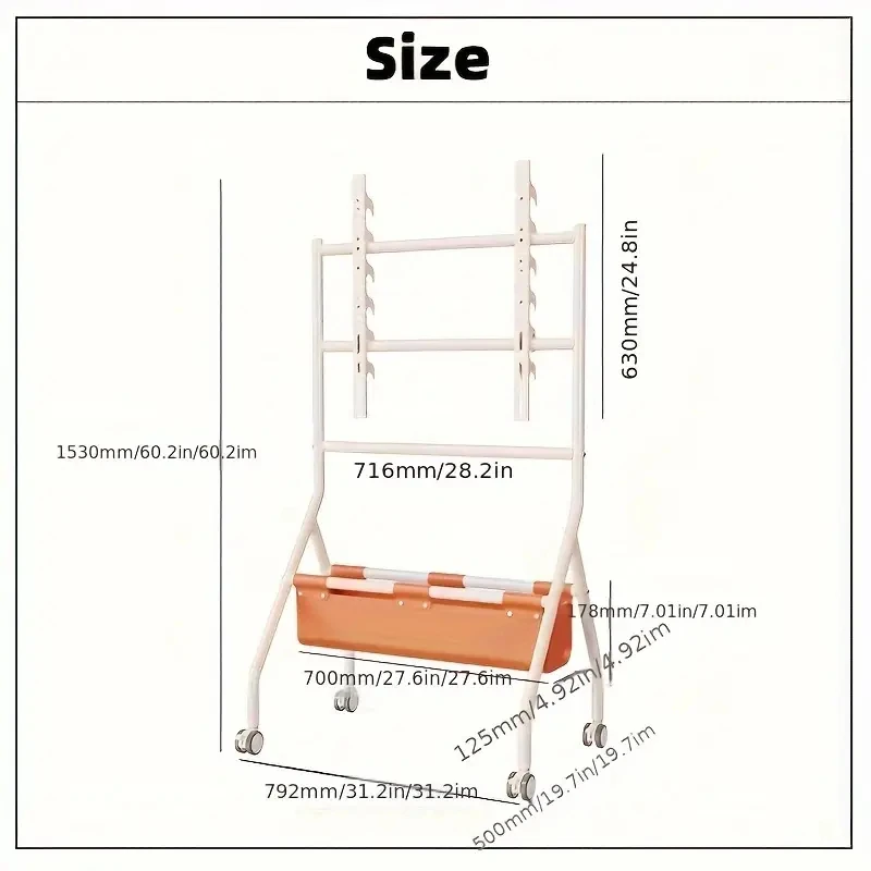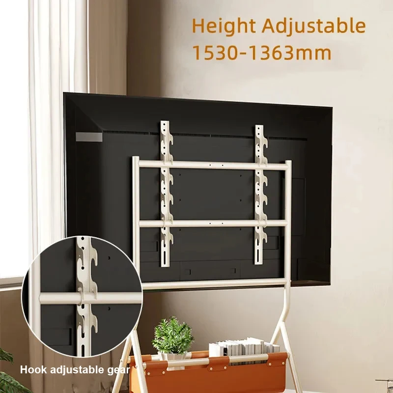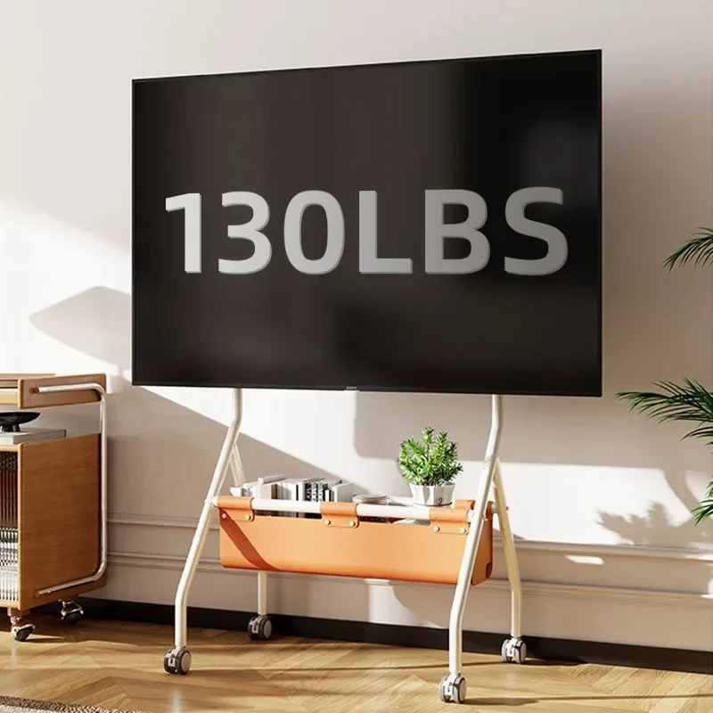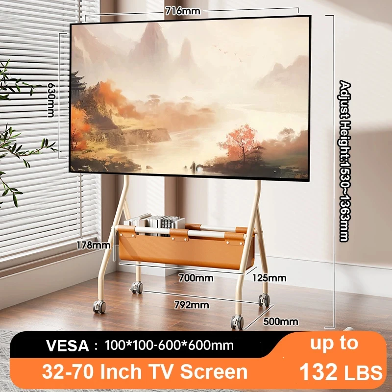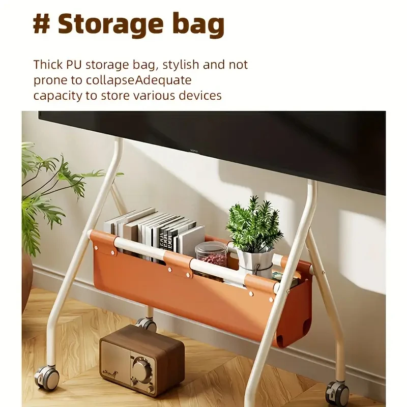 Carro de TV móvil para TV de 32-70 pulgadas, soporte de TV móvil portátil de piso resistente ajustable en altura sobre ruedas con bolsa de almacenamiento de PU
