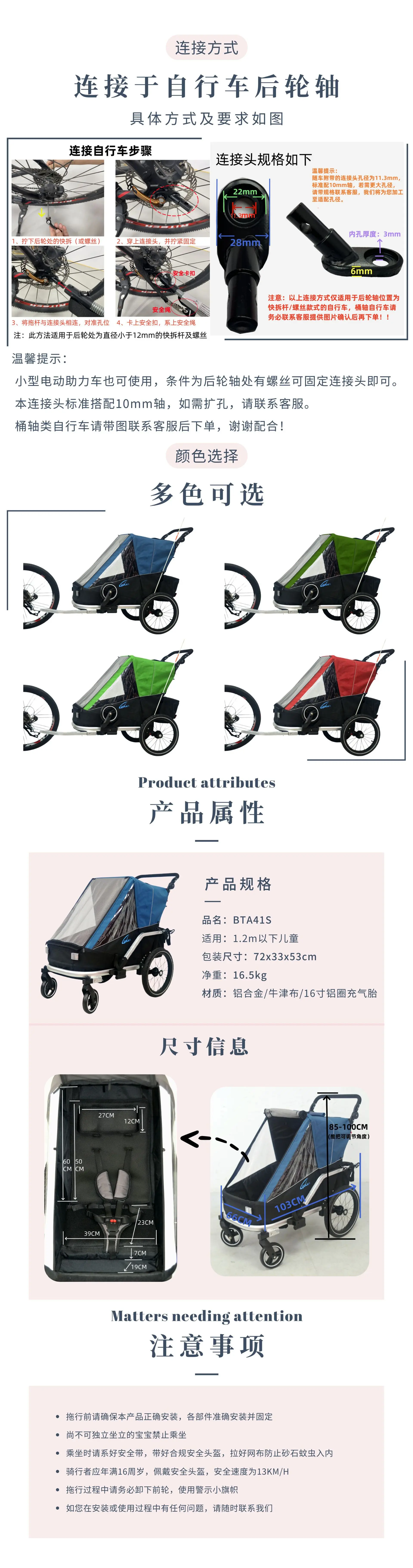 Carro de viaje para mascotas, artefacto de viaje para un solo niño, remolque de bicicleta, vehículo utilitario absorbente de golpes de aleación de aluminio