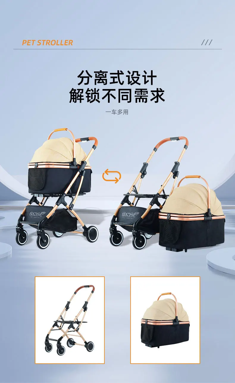 Carros para mascotas de tamaño pequeño y mediano, carritos para perros, bolsas para perros separadas, amortiguadores y gatos plegables de aleación de aluminio