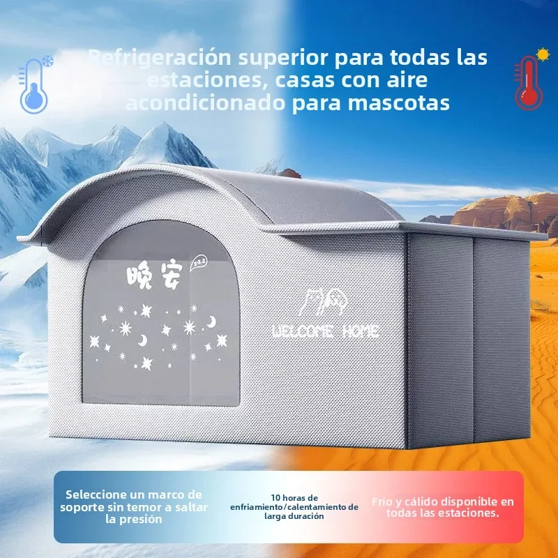 Presentamos la casa acondicionada para perros y gatos pequeños para todas las estaciones, la cama definitiva para mascotas diseñada para mantener a sus amigos peludos cómodos durante todo el año. Esta innovadora cama refrescante para gatos y cama para perros cuenta con tecnología avanzada de regulación de temperatura para brindar un refugio fresco en verano y calidez acogedora durante el invierno. El tejido de malla transpirable combinado con espuma de alta densidad garantiza un flujo de aire óptimo mientras sostiene las articulaciones de su mascota. Características clave: 1. **Comodidad para las cuatro estaciones** – La casa para gatos con aire acondicionado perfecta y la casa para perros que se adapta a los cambios estacionales, manteniendo a las mascotas frescas en verano (hasta 5 ° C más frío que la temperatura ambiente) y cálido en invierno con su diseño aislado. 2. **Almohadilla de gel refrescante premium**: la alfombra refrescante incluida para perros y gatos absorbe el calor corporal, brindando alivio instantáneo en los días calurosos sin electricidad ni refrigeración. 3. **Durable y fácil de limpiar**: hecha de tela Oxford con costuras reforzadas, esta cama refrescante para mascotas resiste rayones y se puede lavar a máquina para un mantenimiento sin complicaciones. 4. **Diseño ergonómico** – Los bordes elevados crean una sensación de seguridad, mientras que el espacioso interior tiene capacidad para mascotas pequeñas y medianas de hasta 15 kg. 5. **Uso versátil**: funciona como cama para mascotas con aire acondicionado interior y casa para perros con refrigeración exterior con su base impermeable. Ideal para dueños de mascotas que desean brindar la máxima comodidad, este nido refrescante para mascotas evita el sobrecalentamiento y reduce la ansiedad. La construcción liviana pero resistente lo hace perfecto para hogares, patios o viajes. Regale a su amado gato o perro un control perfecto de la temperatura con esta innovadora casa para mascotas con aire acondicionado. ¡Haz tu pedido ahora y asegúrate de que tu mascota disfrute de la comodidad en cada temporada! (Nota: la almohadilla de gel refrescante requiere 2 horas de enfriamiento inicial antes de su uso. Para obtener mejores resultados, colóquelo en áreas sombreadas durante el verano). Especificaciones del producto: Material: tela Oxford 600D + espuma de alta densidad Mejora la experiencia de sueño de tu mascota con esta cama refrescante para gatos y cama para perros científicamente diseñadas, ¡porque merecen lo mejor en cada temporada!