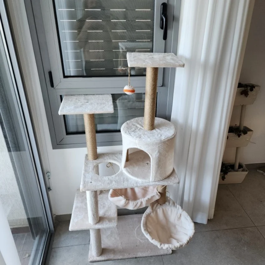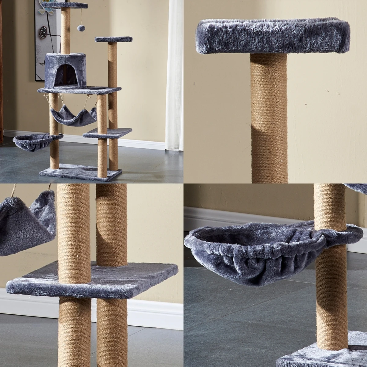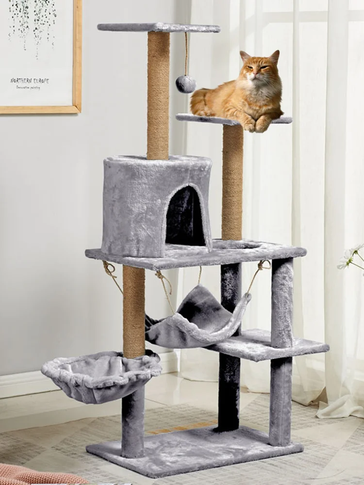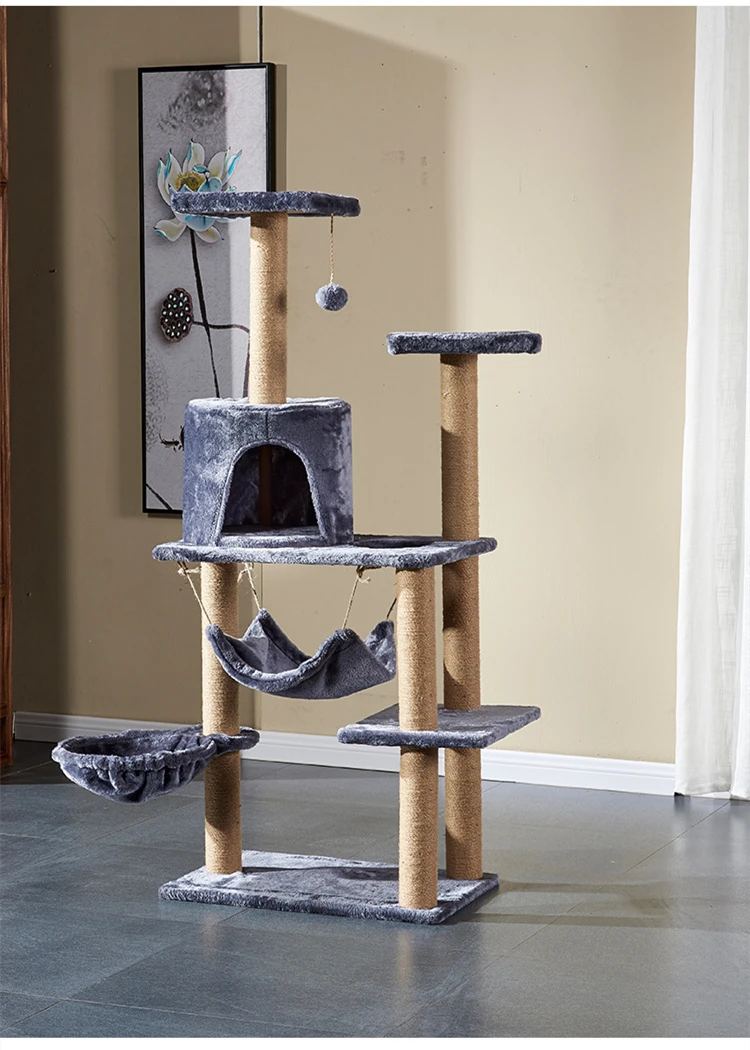 Casa de árbol para gatos multicapa con hamaca columpio, torre de escalada para gatos, cuerda de Sisal, postes rascadores para gatos, cubierta de tela de felpa, condominios para gatos