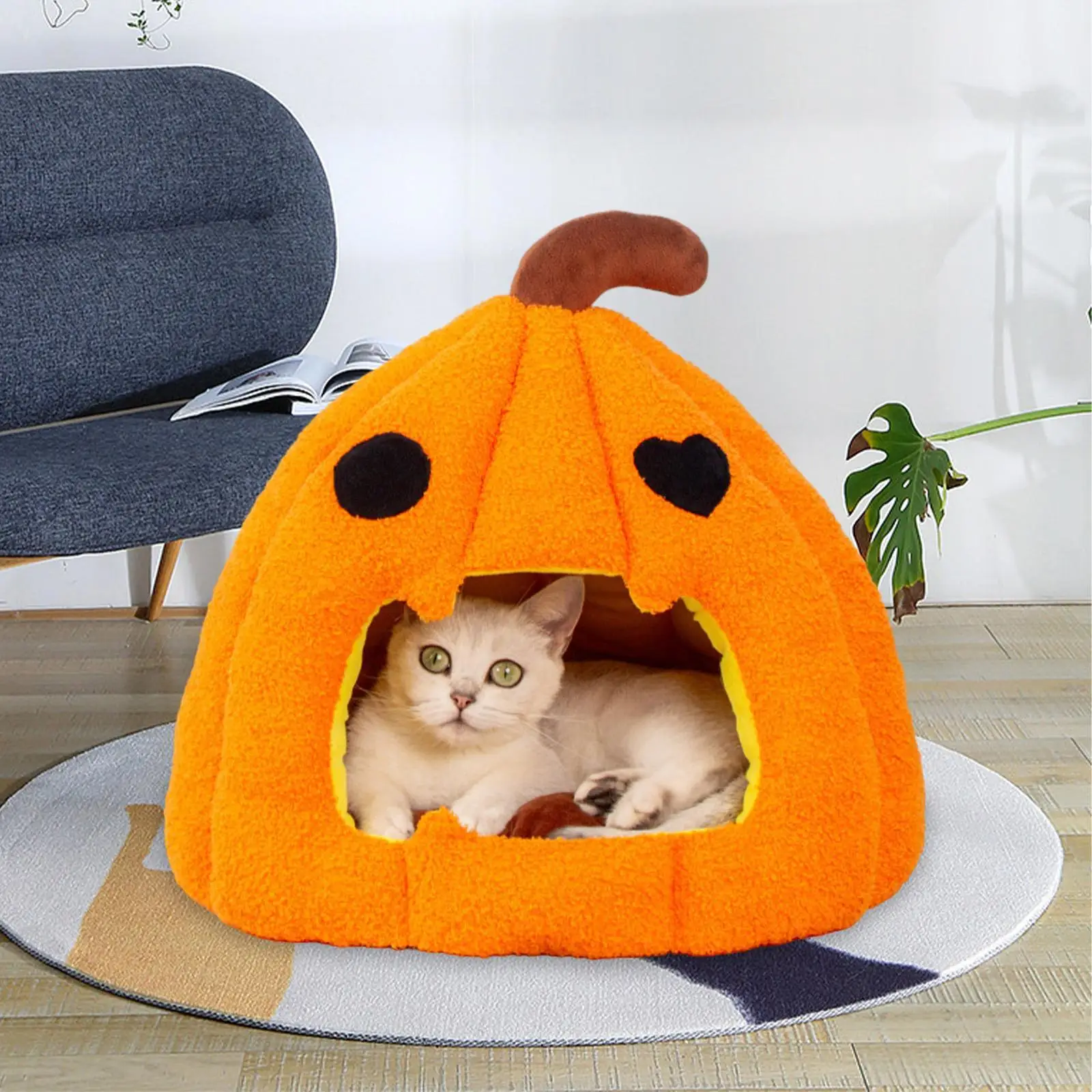【Decorativo】: la Cueva de la cama del gato es interesante, la forma de calabaza puede despertar el interés de las mascotas y también puede ser un hermoso paisaje en el hogar.