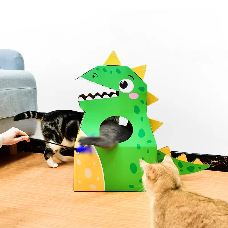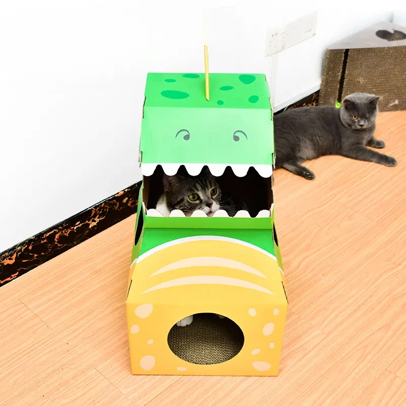 ** 1. Material ecológico: ** Hecho de cartón resistente y reciclado, nuestra casa para gatos es respetuosa con el medio ambiente y sostenible, por lo que es una opción libre de culpa para los dueños de mascotas.