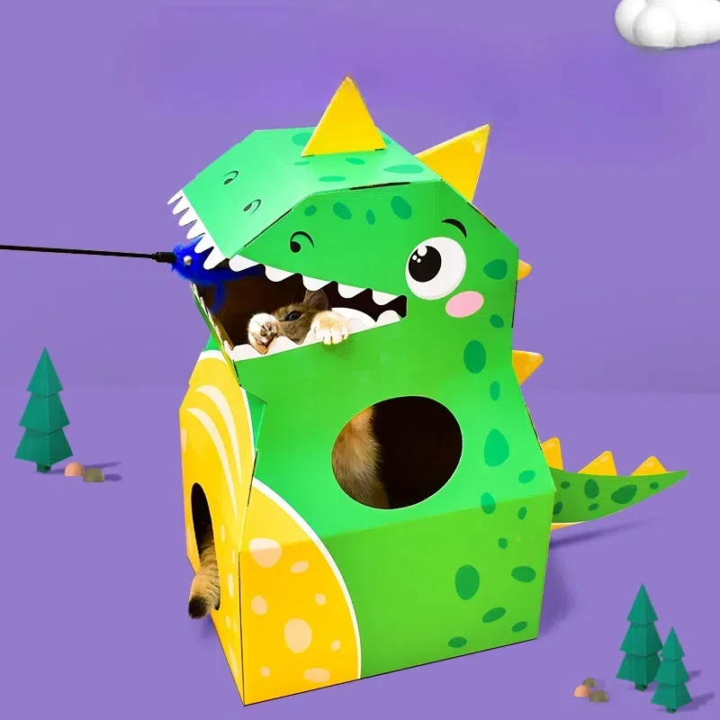 ** 1. Material ecológico: ** Hecho de cartón resistente y reciclado, nuestra casa para gatos es respetuosa con el medio ambiente y sostenible, por lo que es una opción libre de culpa para los dueños de mascotas.