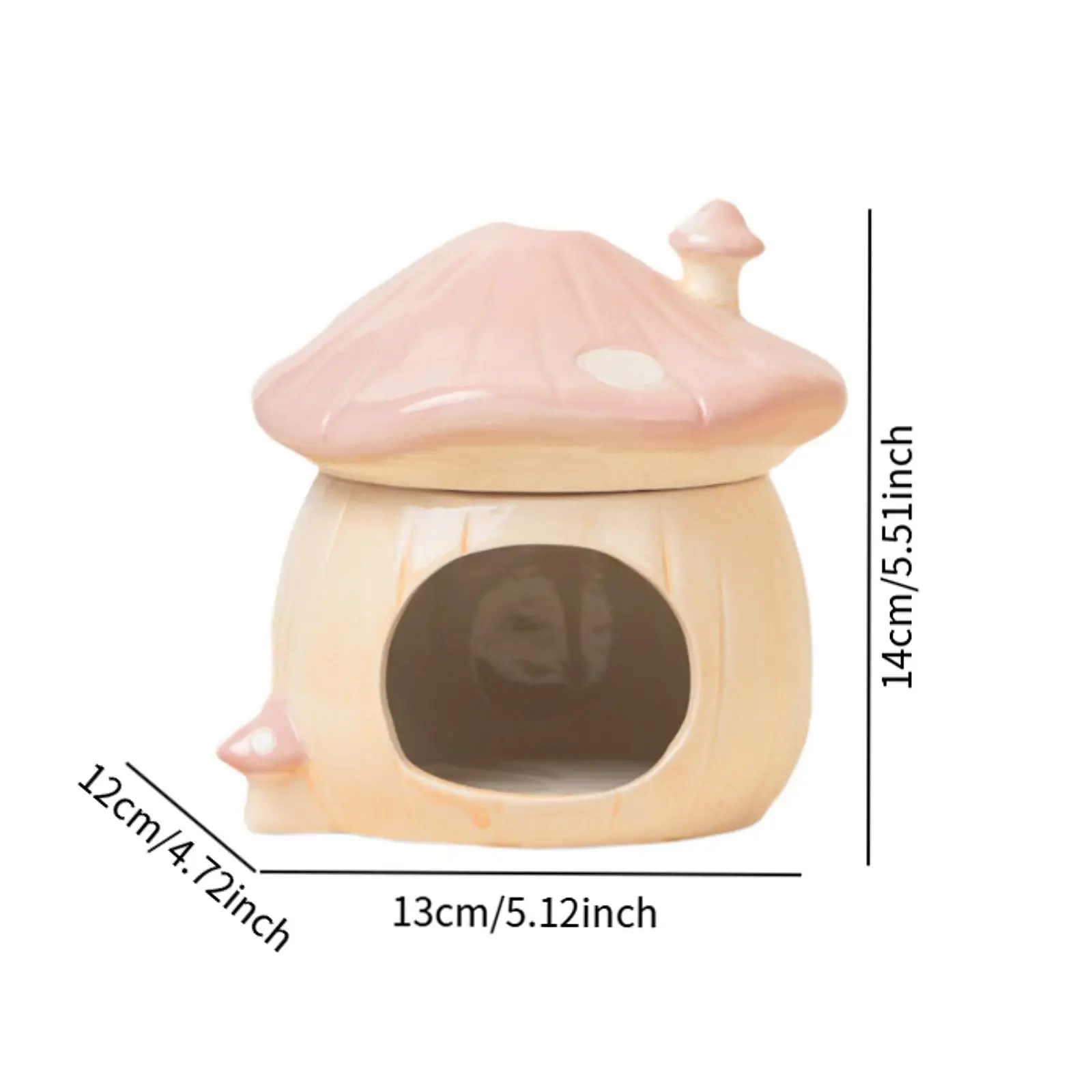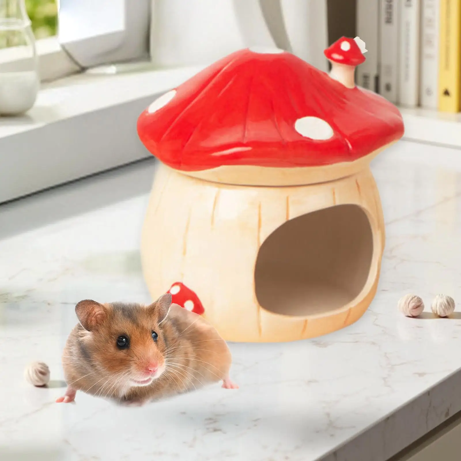 【Material】La casa para hámster con forma de hongo está hecha de material cerámico de calidad, que es resistente y se puede utilizar durante mucho tiempo.