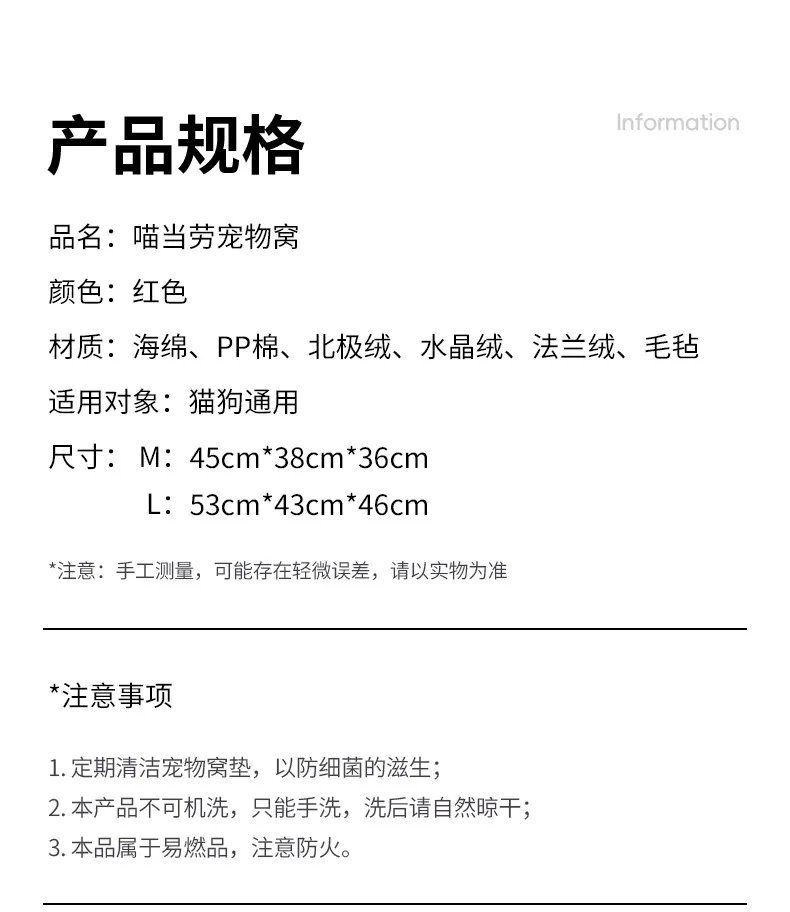 Description:Cat nest universal cat house cat house closed security winter warm can be dismantled and washed