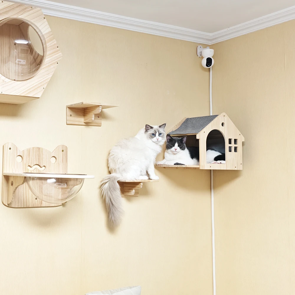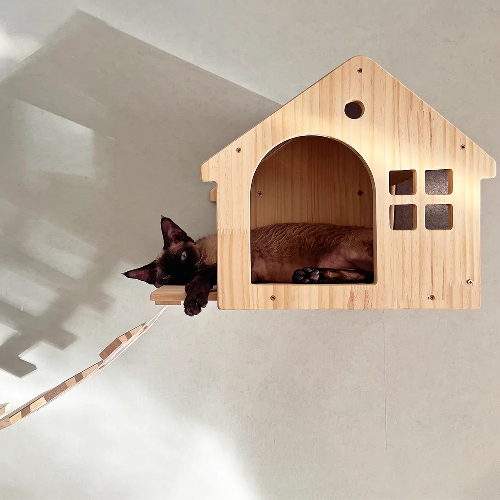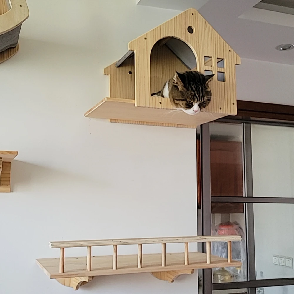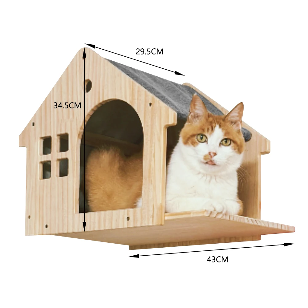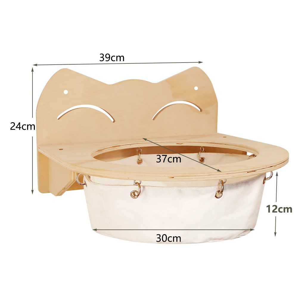 Los estantes para gatos están hechos de madera de pino natural, duradera y no tóxica, inofensiva para gatos y otras mascotas. La tela suave no tiene olores ni decoloración, se puede lavar a máquina. Puede responder a la forma del cuerpo de los gatos, dándoles un abrazo cómodo.