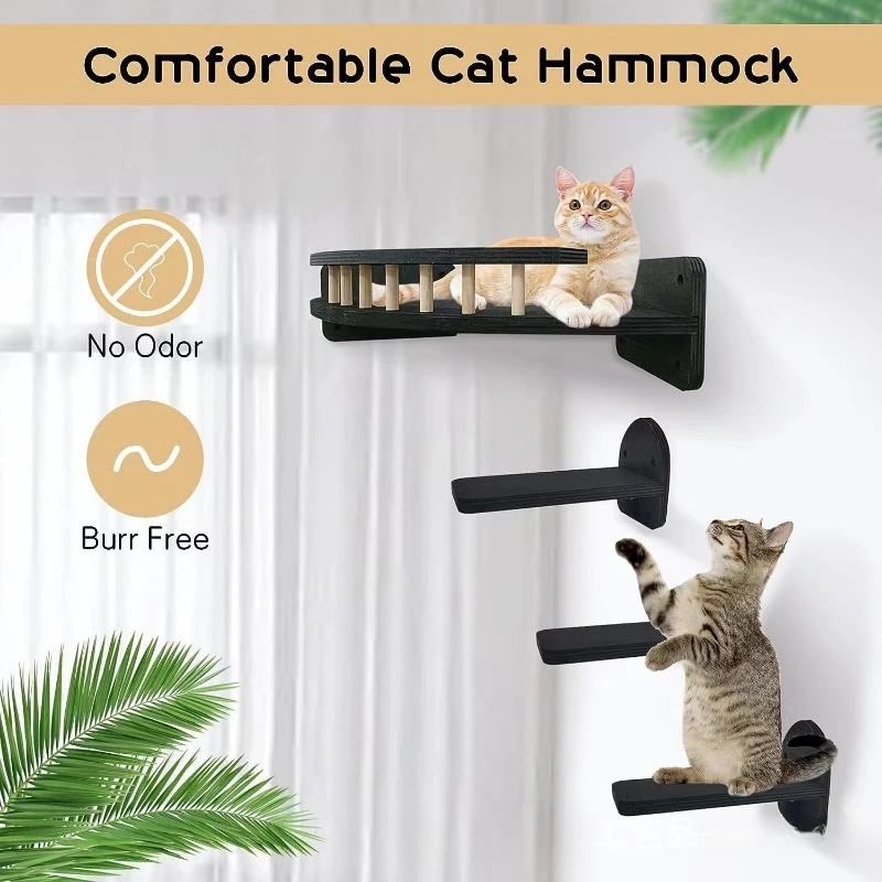 Marco de escalada de madera para gatos, marco transfronterizo para perca de nido de gato, cama para gatitos de pared, plataforma de salto de juguete para gatos, cama para gatos colgante de pared de madera maciza