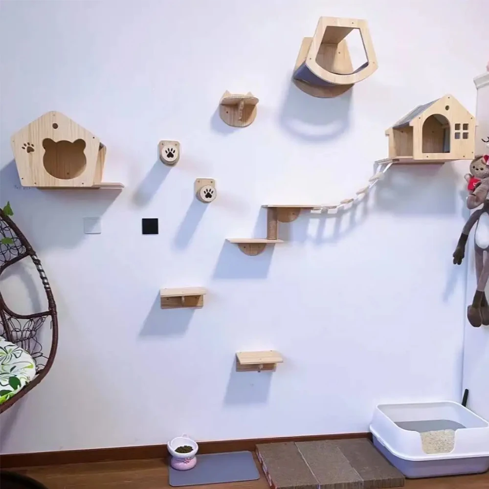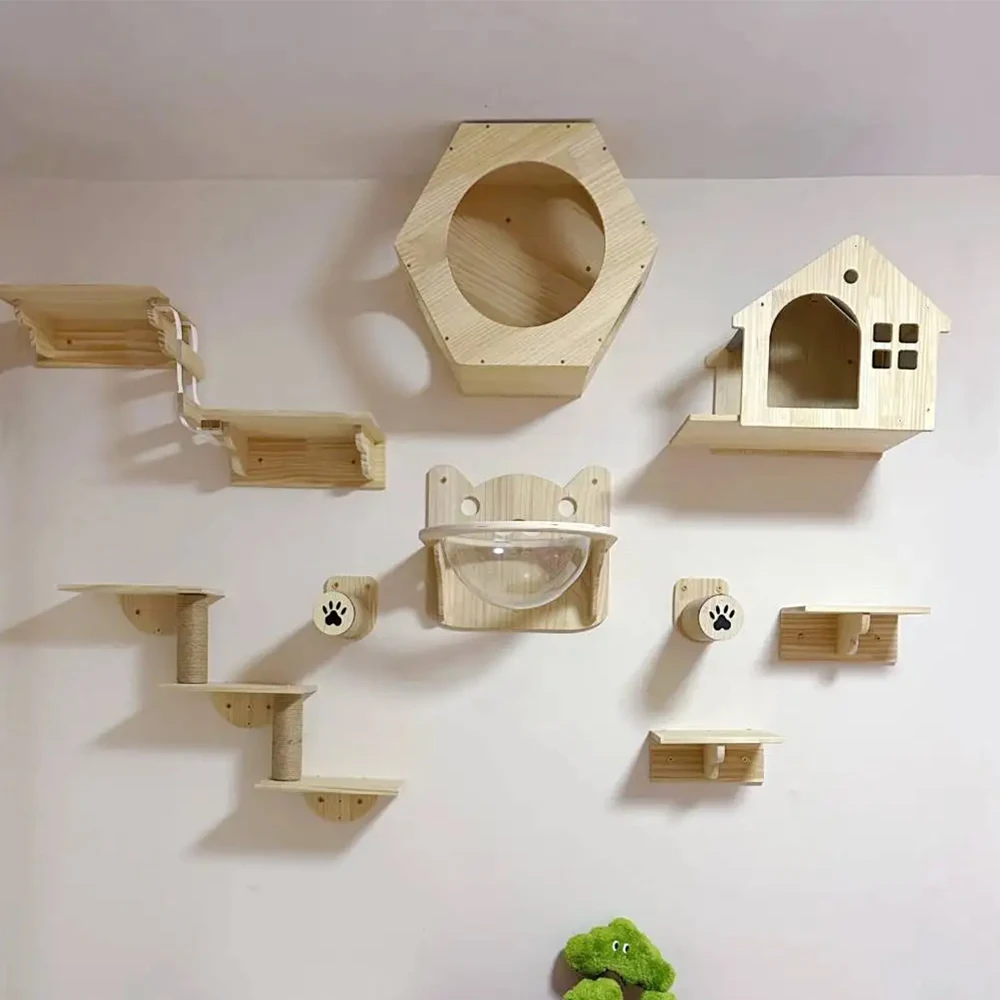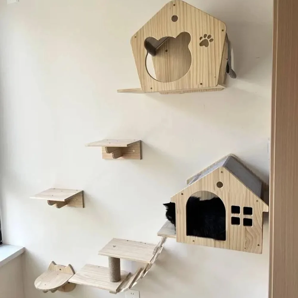 Los estantes de pared para gatos se adaptan al hábito de los gatos de escalar, aumentan el ejercicio y reduciendo la posibilidad de obesidad, lo que es bueno para la salud.Además, le da a los gatos espacio para escalar y evitar estropear la casa.