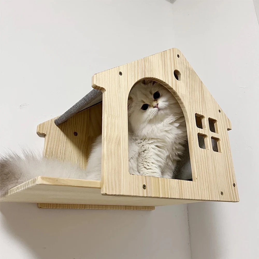 Los muebles de pared para gatos tienen un tamaño ideal para que la mayoría de los gatos duerman o tomen una siesta, su diseño montado en la pared utiliza completamente el espacio vertical.En el espacio limitado del hogar, dejando espacio para que los gatos descansen y jueguen.