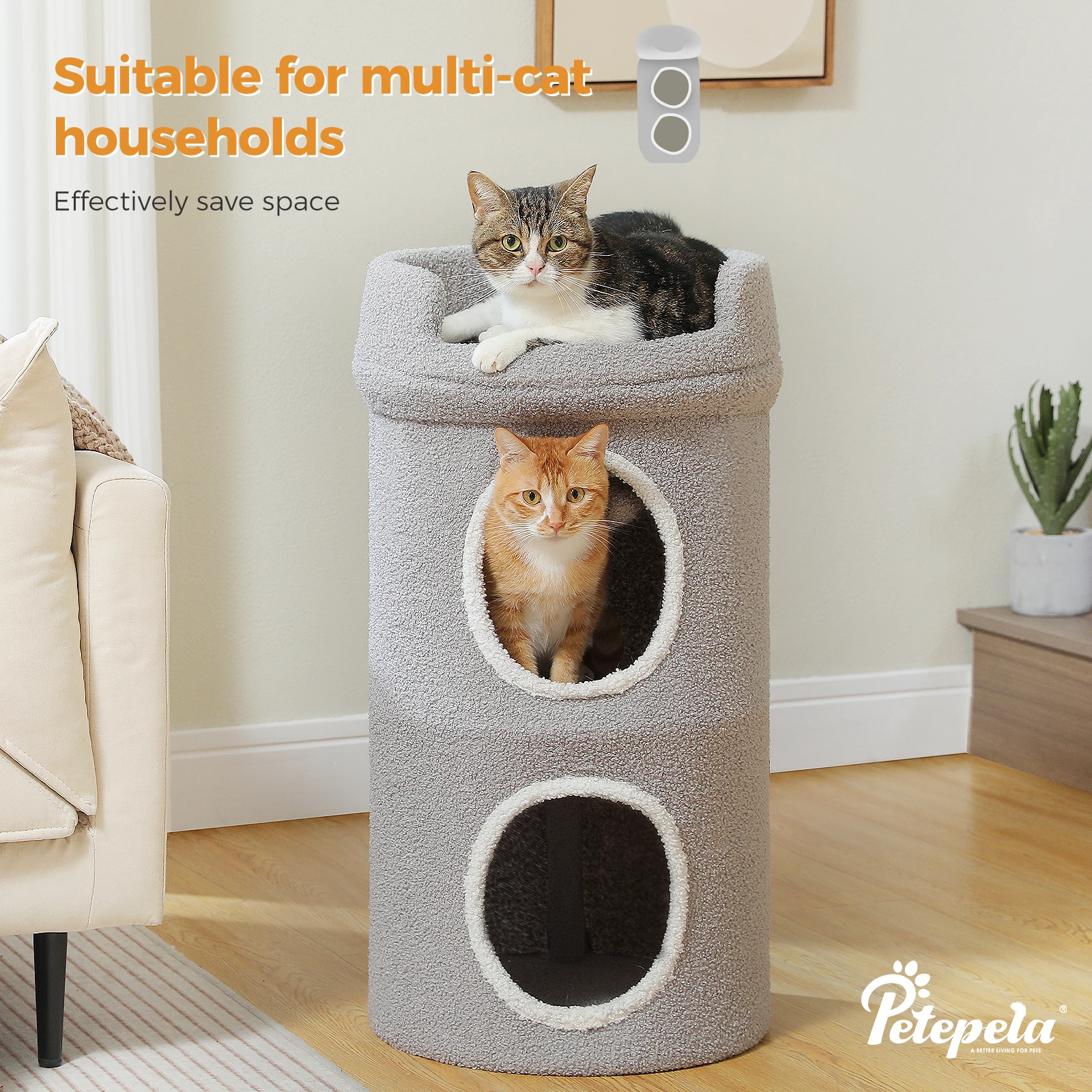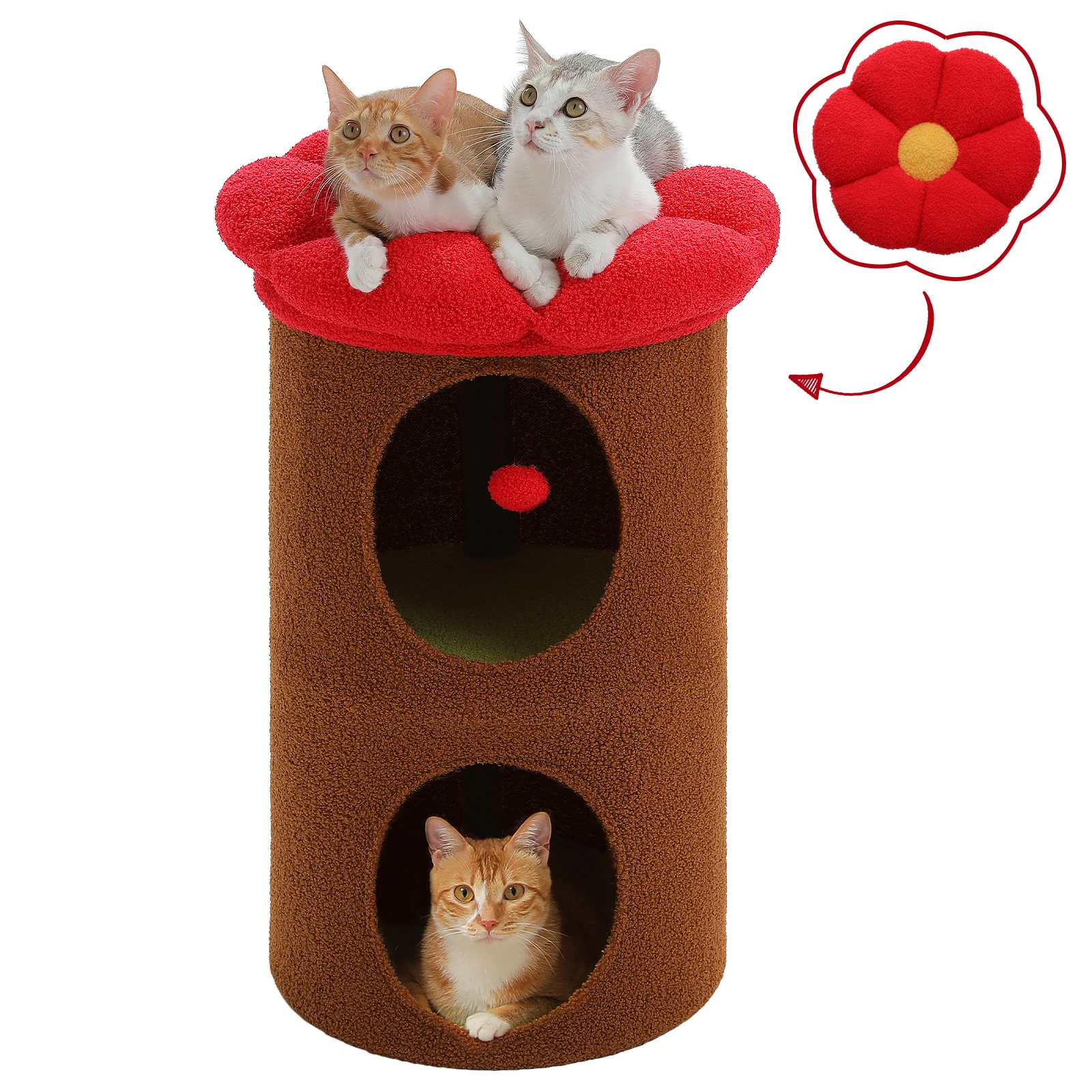 • Estructura espaciosa y estable:Las camas para gatos con 1 o 2 cuevas para gatos y 1 plataforma para gatos son bastante grandes y definitivamente serían un gran espacio para los gatos.Tus gatos pueden esconderse en la casa para gatos cerrada o saltar a la percha de flores para ver afuera de la ventana.