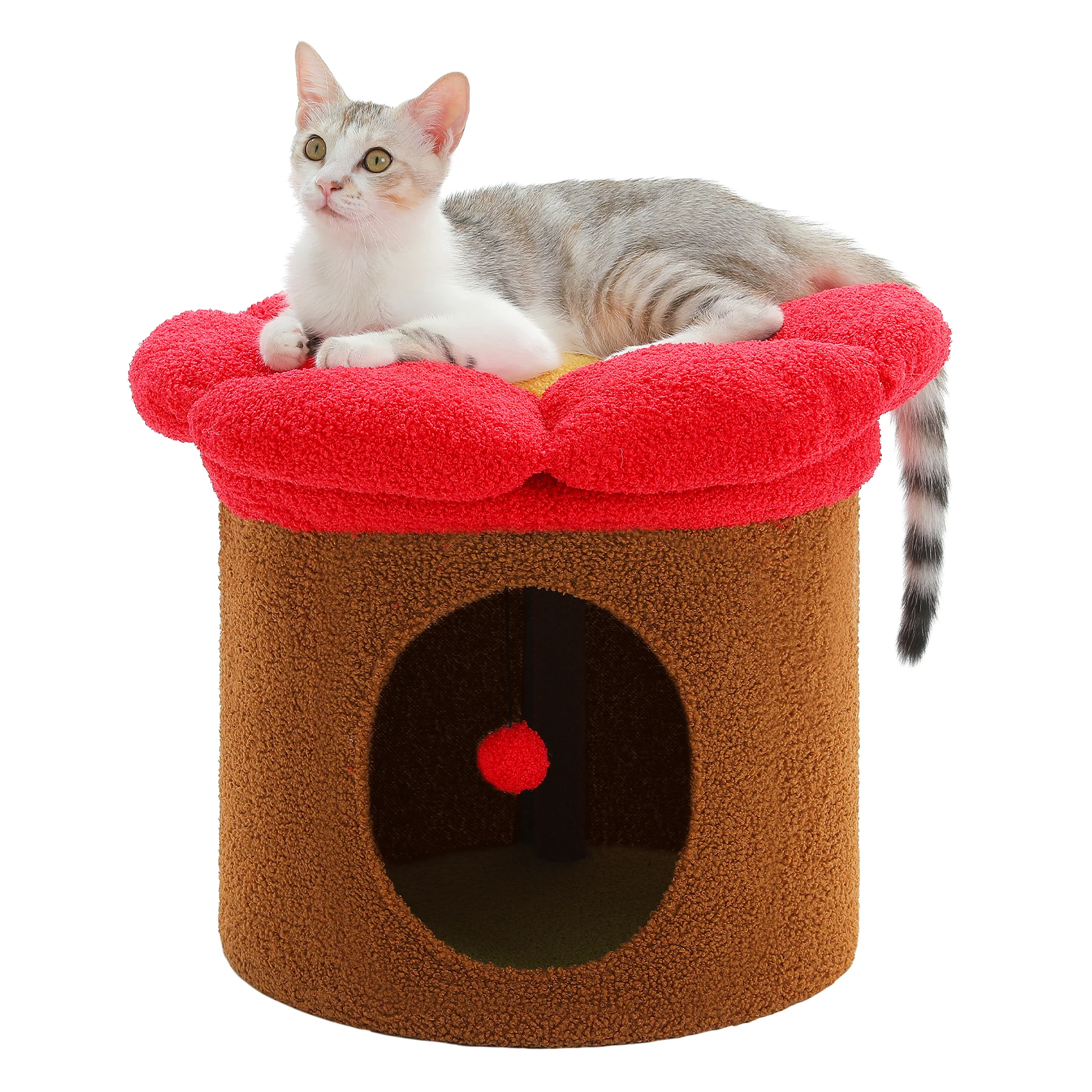 Nombre: Casa para gatos de flores estable con bola colgante interactiva