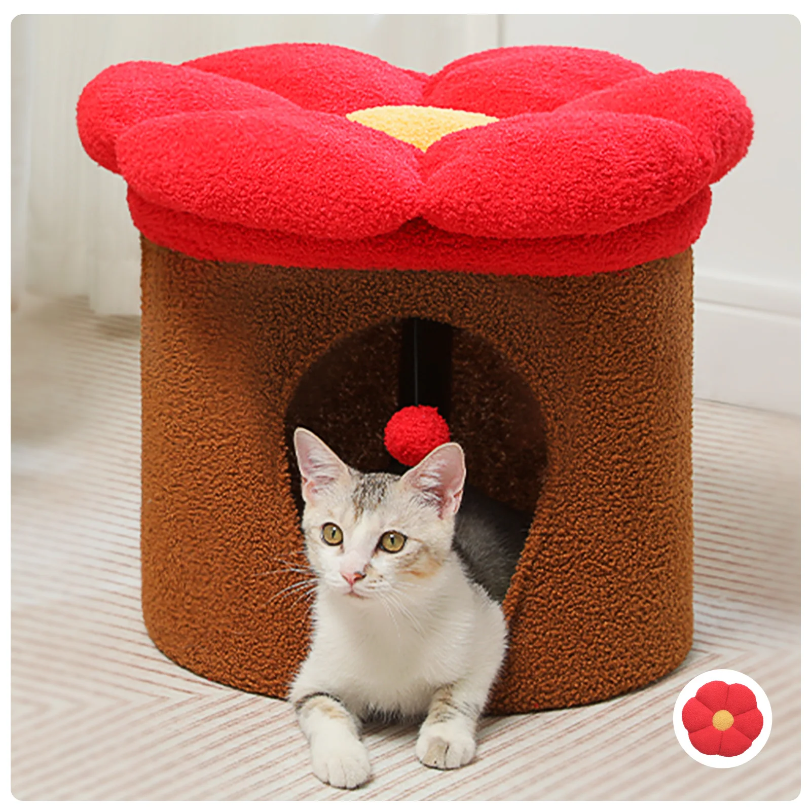 • Alta calidad y multifuncional:La cama para gatos con flores superiores está cubierta con una alfombra ultrasuave, soporta hasta 67,5 kg garantiza que incluso un gato gordo pueda relajarse cómodamente sobre ella sin tambalearse.¡Incluso puede servir como una linda y pequeña silla!Este cómodo escondite para gatos también es adecuado para mascotas pequeñas como cachorros y conejitos.