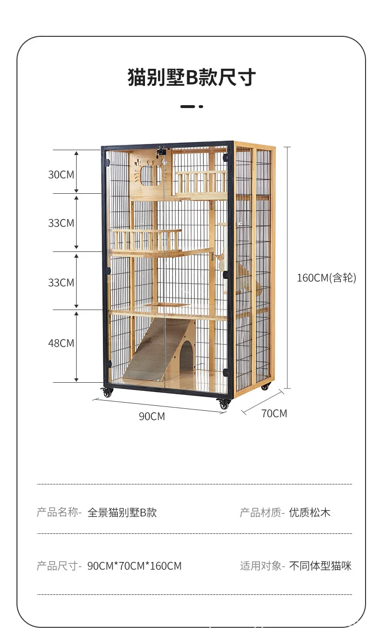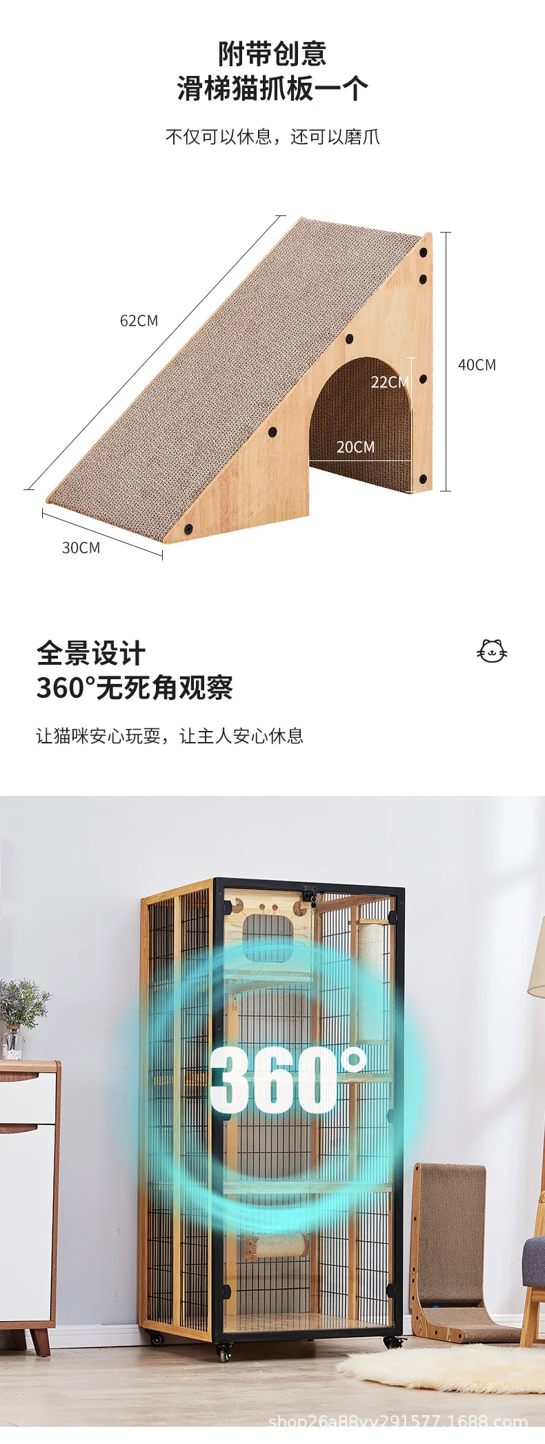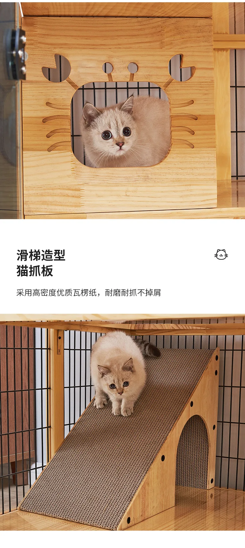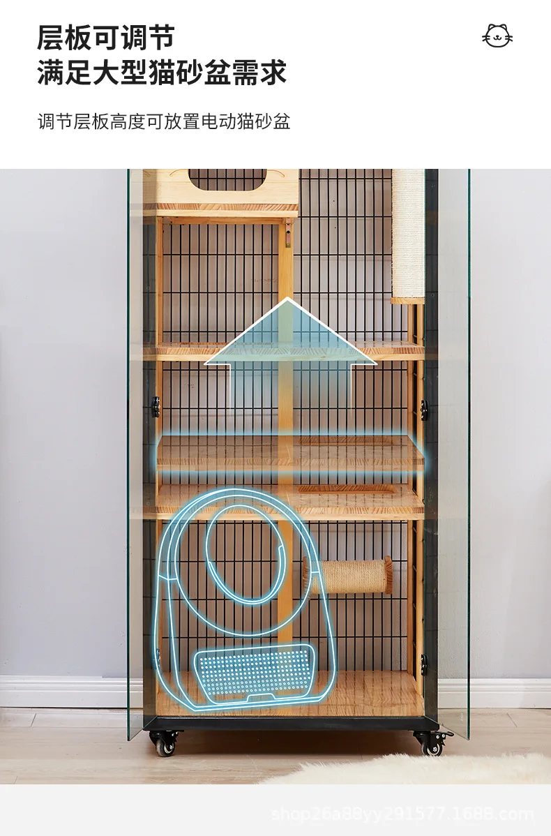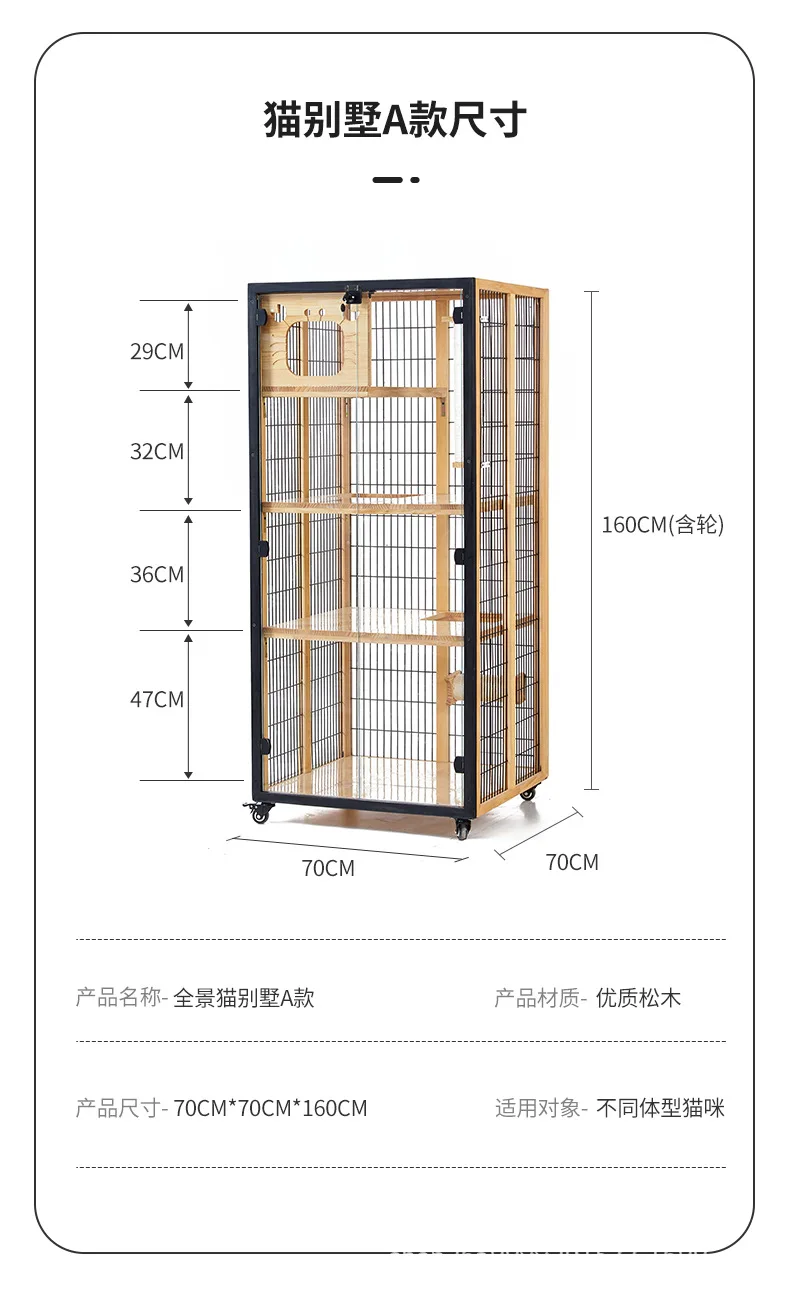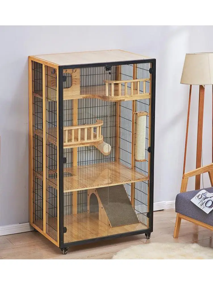 Casa de gato panorámica de cristal, armario de tres capas de madera maciza, jaula de lujo