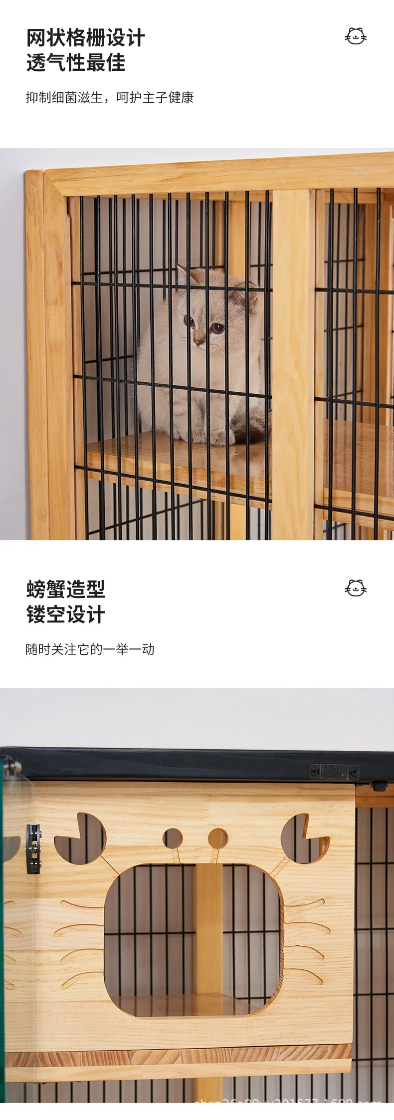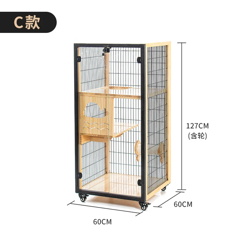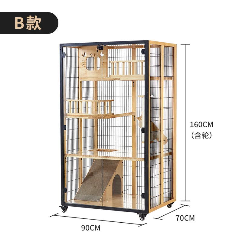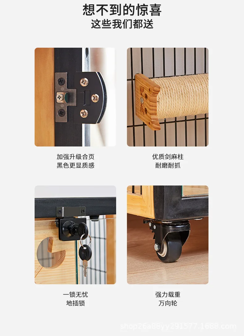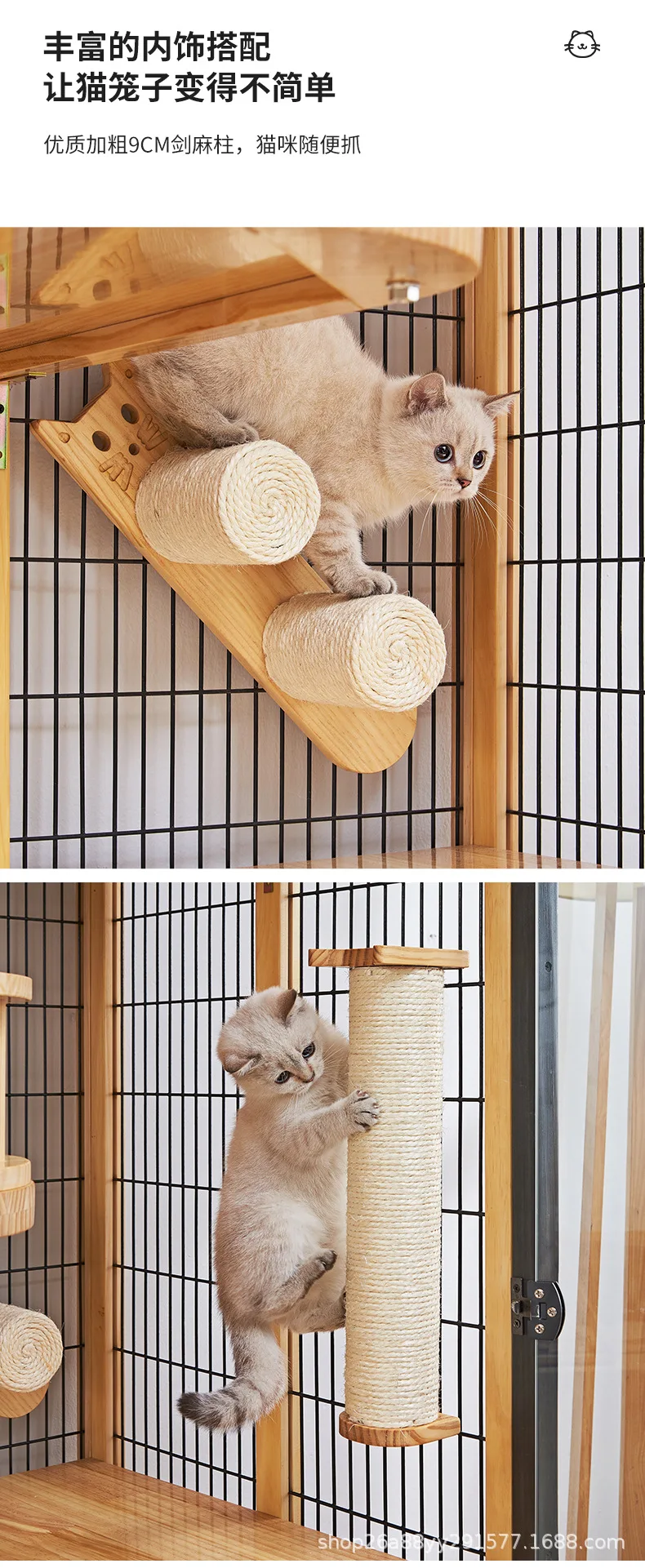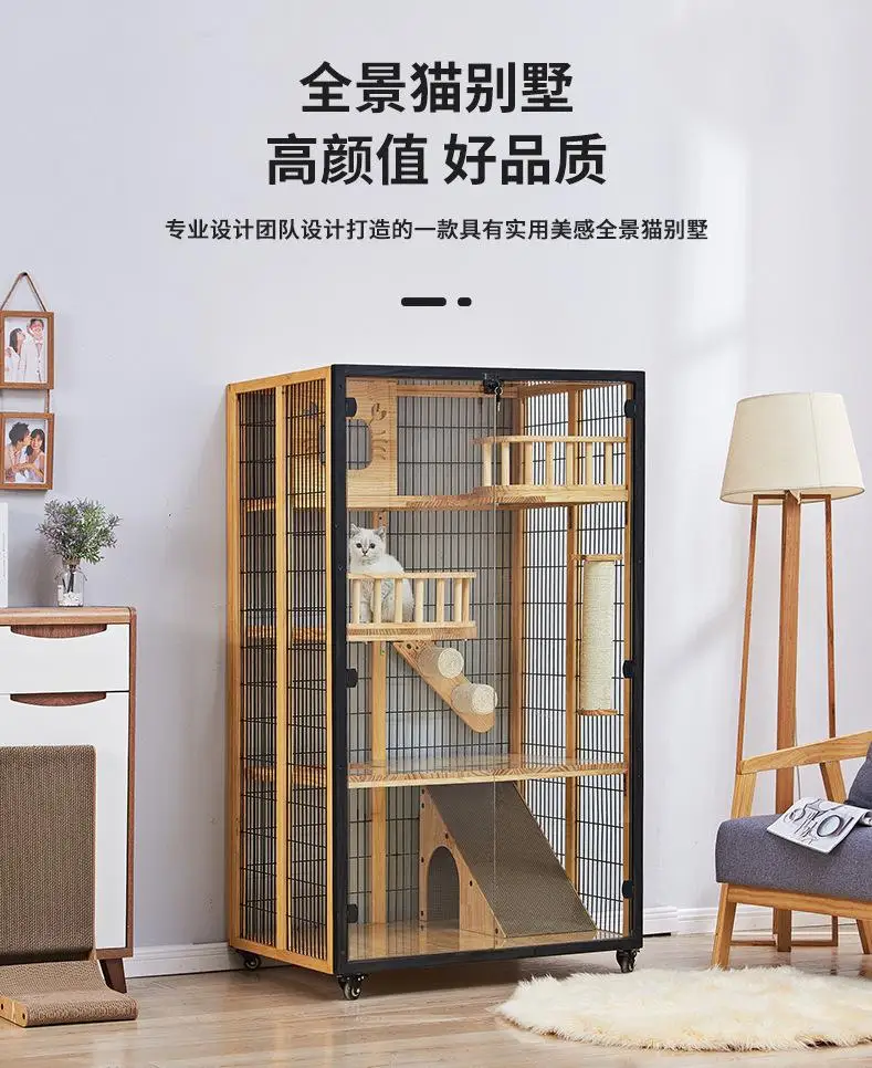 Casa de gato panorámica de cristal, armario de tres capas de madera maciza, jaula de lujo