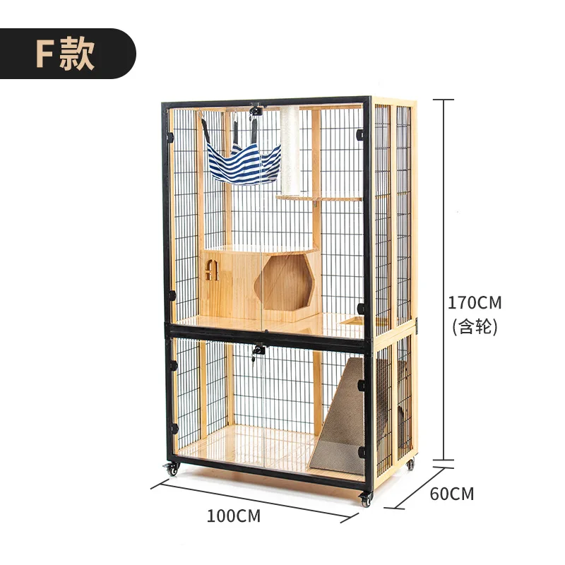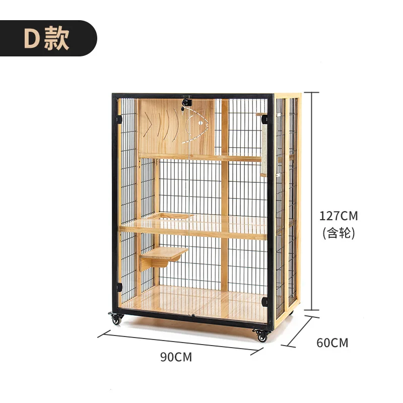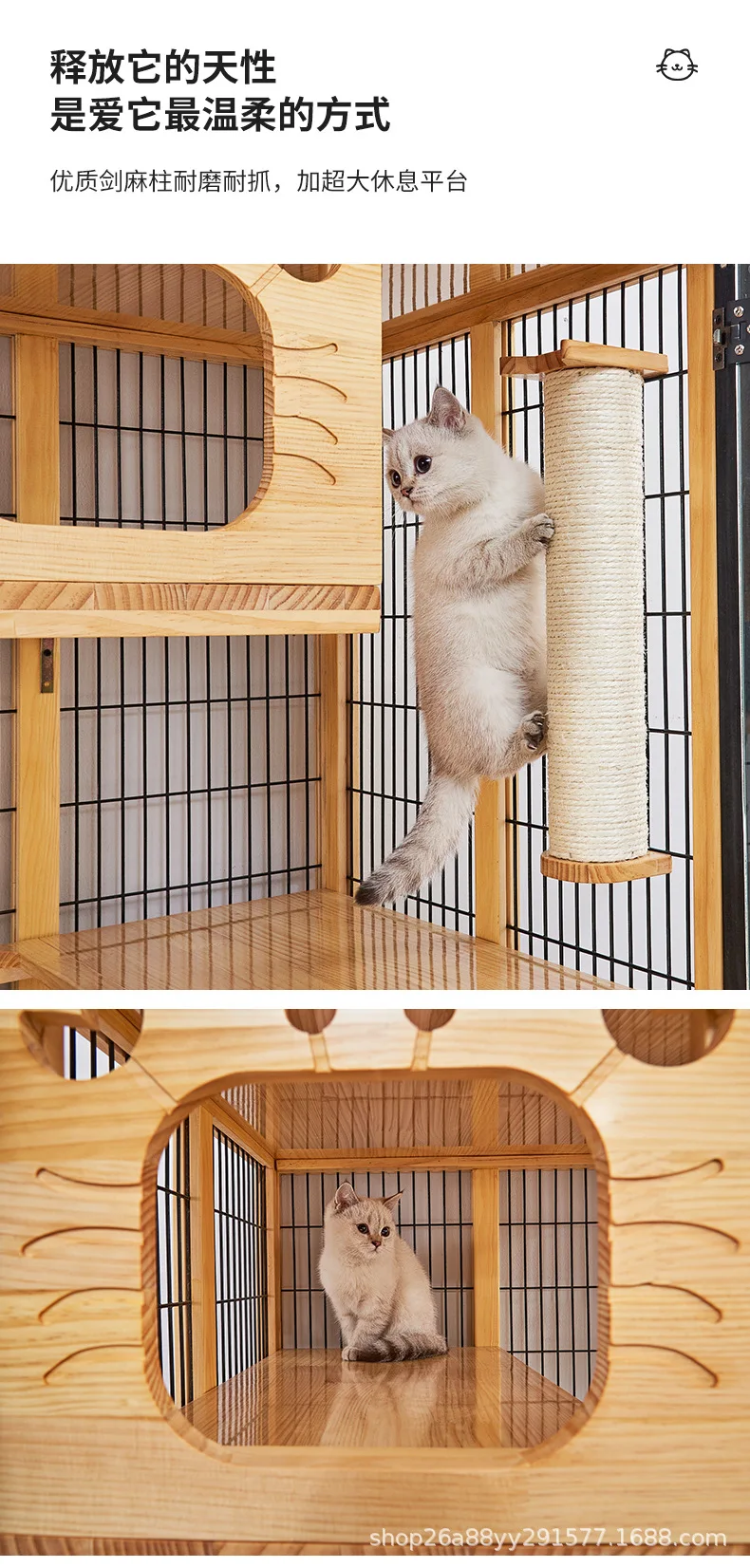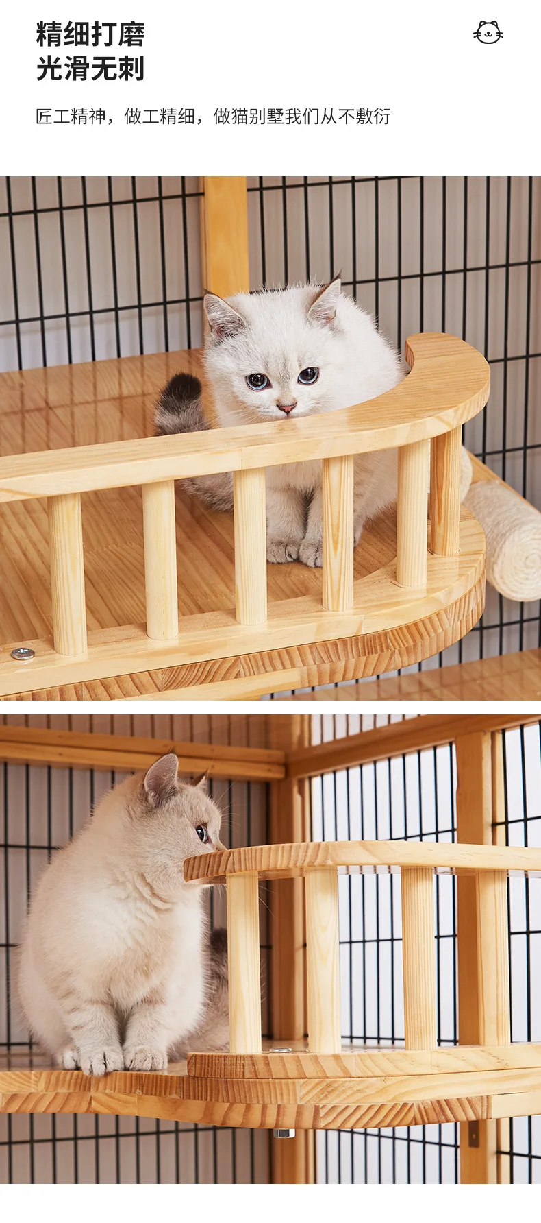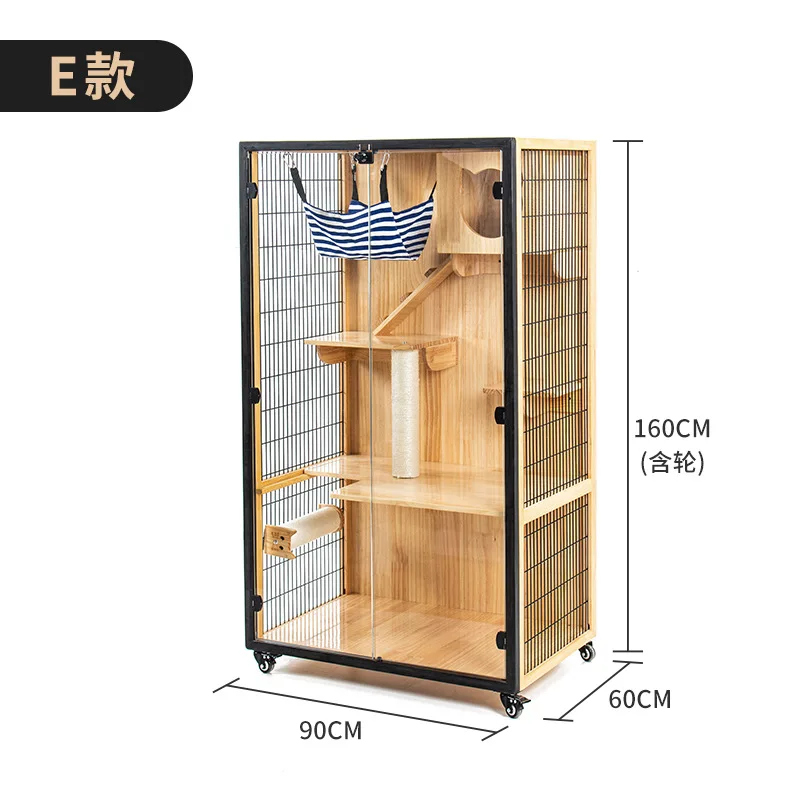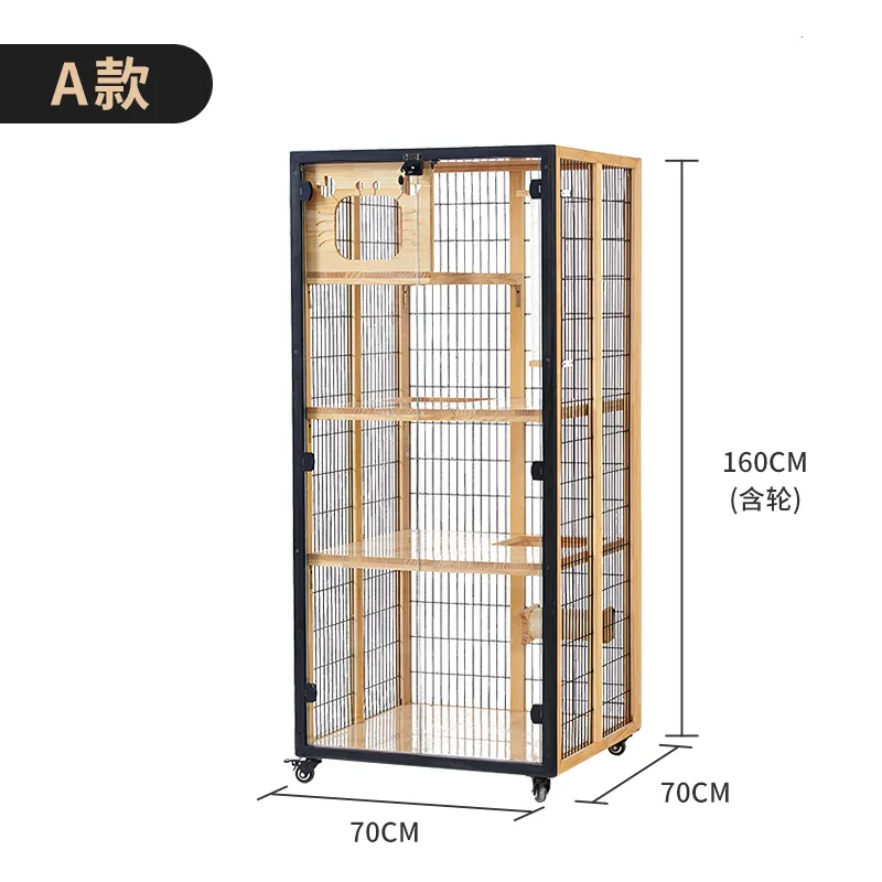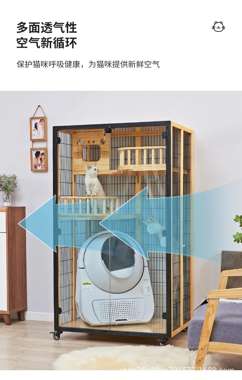 Casa de gato panorámica de cristal, armario de tres capas de madera maciza, jaula de lujo